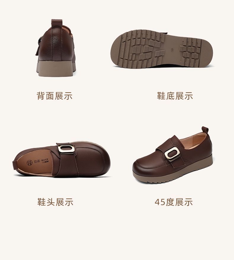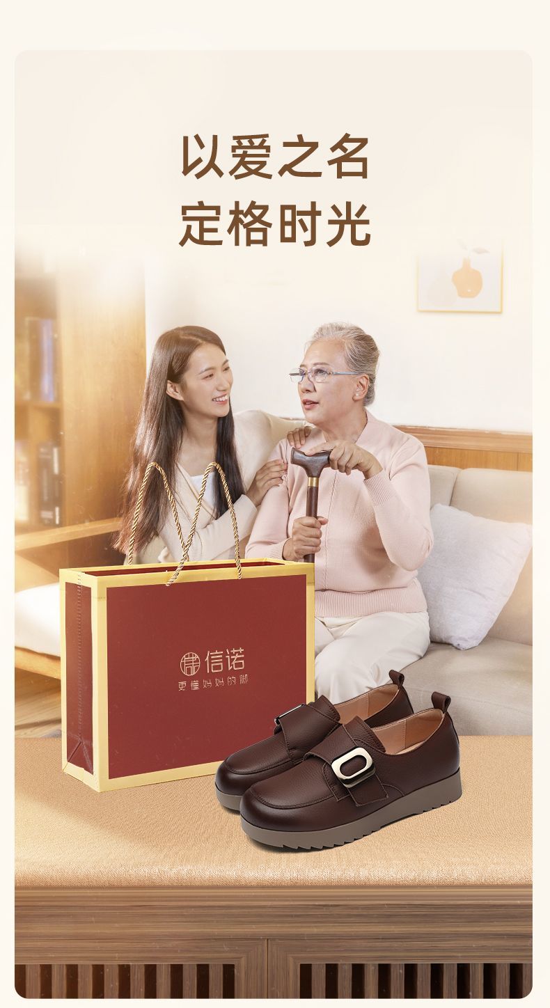 信诺真皮妈妈鞋子中老年软底单鞋女士休闲鞋平底皮鞋2025新款秋季5Q1033-6