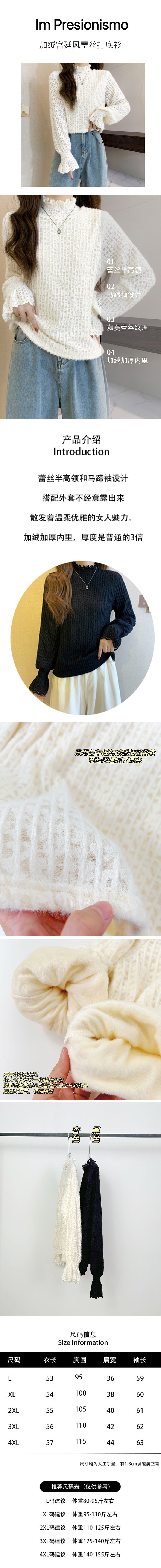 Im Presionismo加绒宫廷风蕾丝打底衫