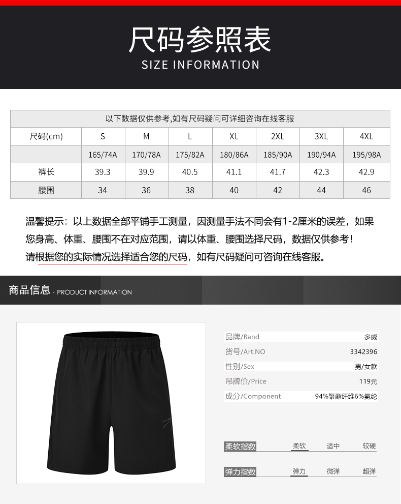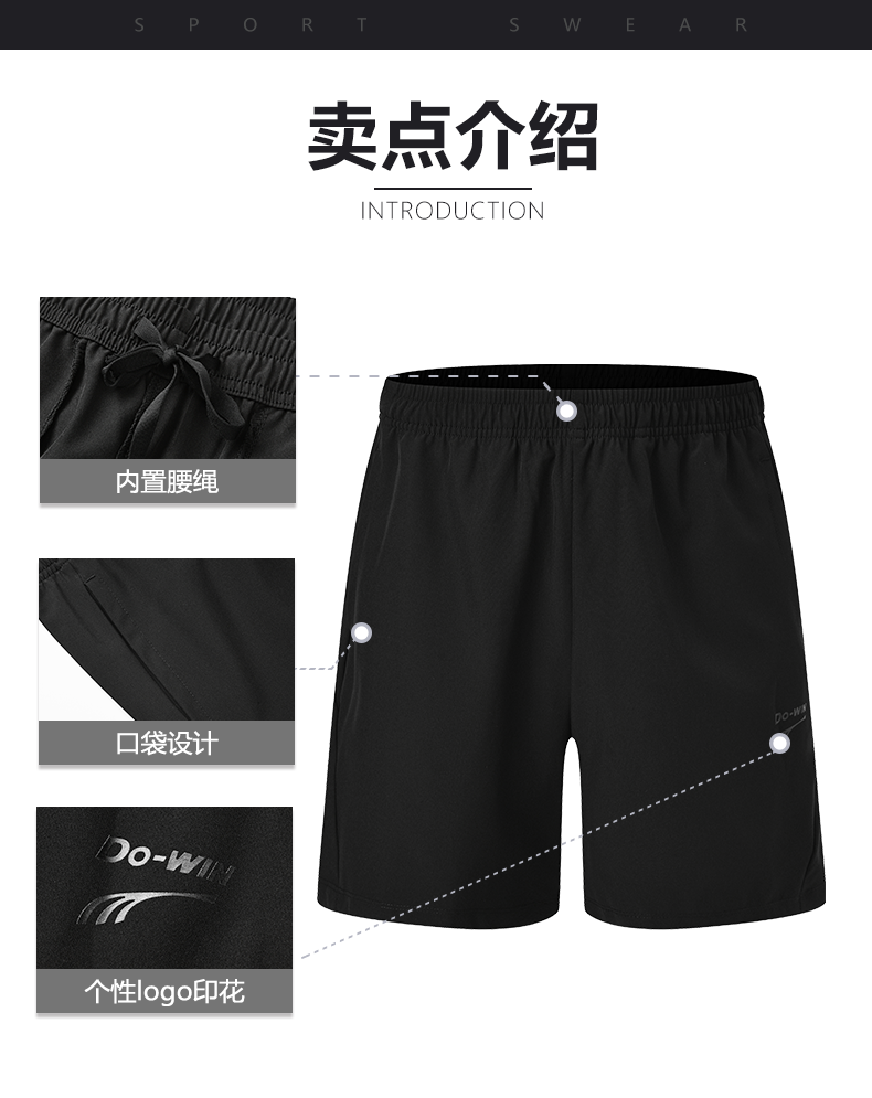 多威五分裤夏季速干高弹跑步短裤男女款运动裤3342396
