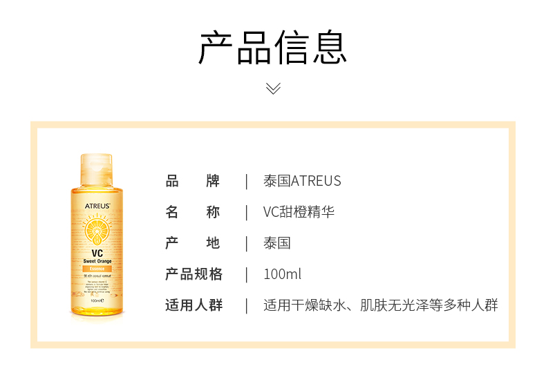 【中欧班列精选】泰国ATREUS VC甜橙精华100ml/ATREUS VC甜橙爽肤水MMT