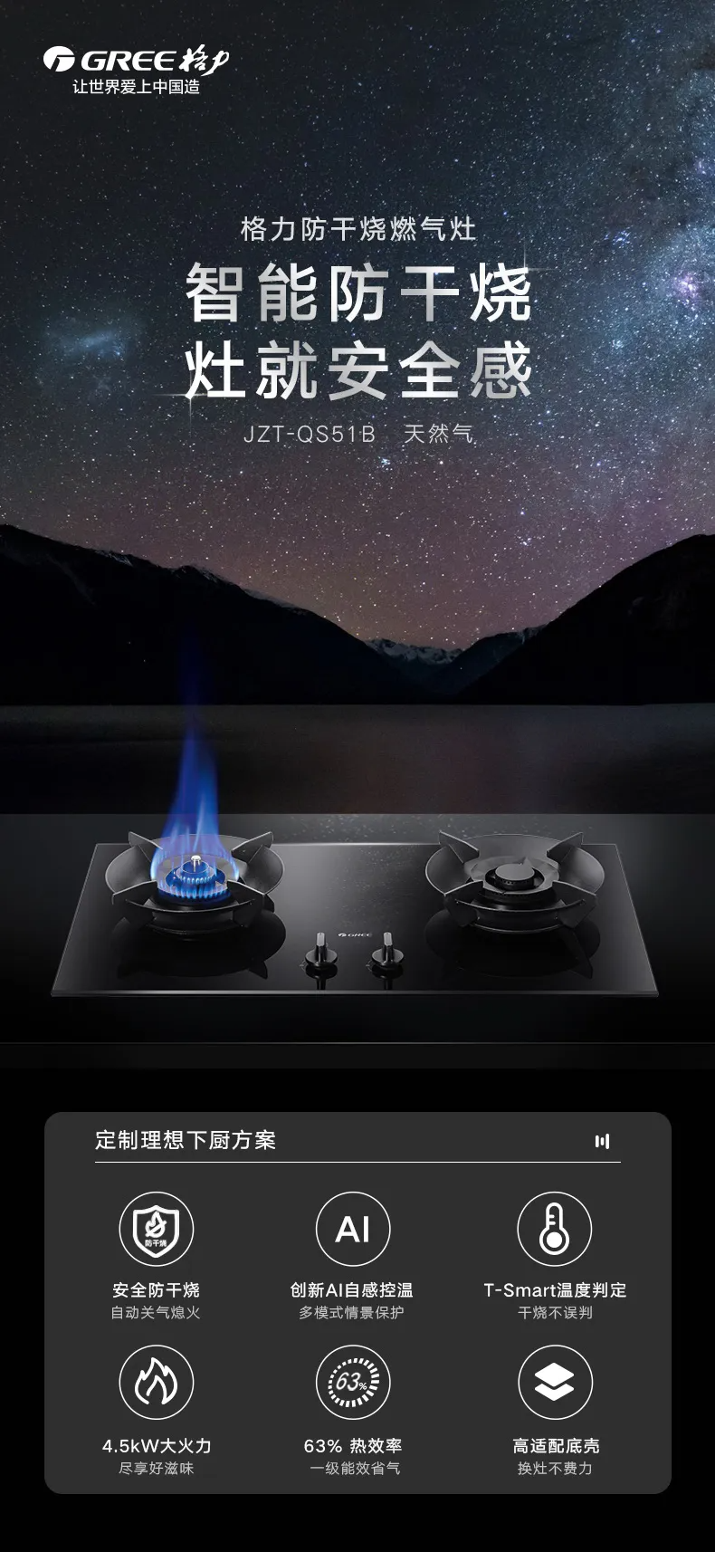 【预售】格力·天然气燃气灶 JZT-QS51B 黑色