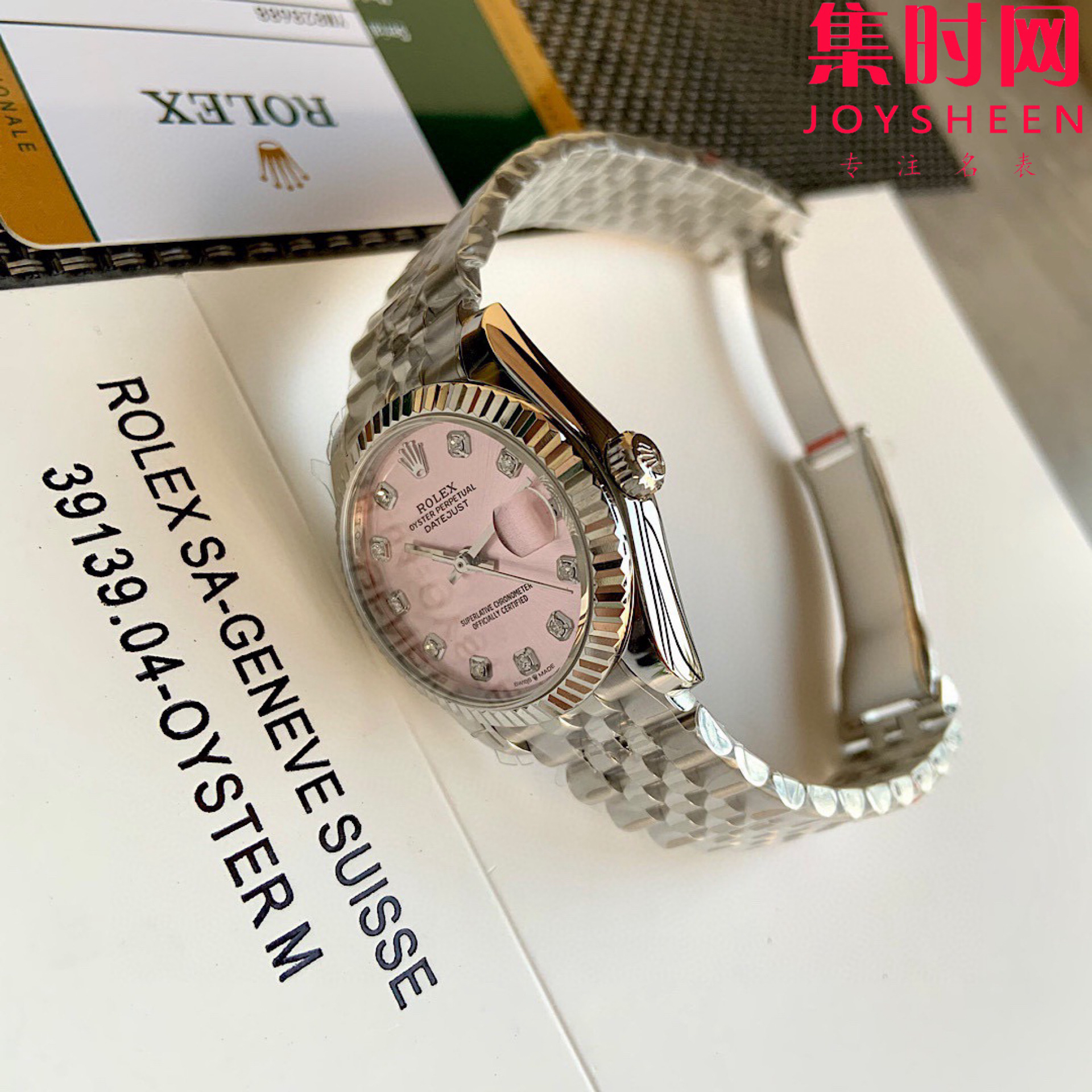 劳力士GS日志型系列 女款31mm 日志31系列 粉盘钻面 霉粉 女士腕表 搭载改Cal.2236全自动机械机芯 日志型的蚝式表壳是坚固优雅的典范。采用904L不锈钢来锻造表壳表带,具备高抗腐蚀性。搭载改Cal.2236自动机械机芯 性能稳定,其抗震力、几何结构使机芯在任何位置都可保持规律运行。三角坑纹底盖以专用工具的旋紧,使表壳完全密封,上链表冠采用双扣锁双重防水系统,牢固旋紧于表壳,使得更加防水。镜面则以抗刮损蓝水晶制造,3点钟位置装有小窗凸透镜,方便读取日期。女装日志型的防水蚝式表壳给予高精准机芯防护。