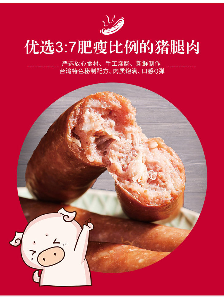 【台北士林纯肉烤肠】520克*1袋/2袋/5袋,台湾老手艺,肥瘦比例适中,展现出食材的原汁原味和扎实口感