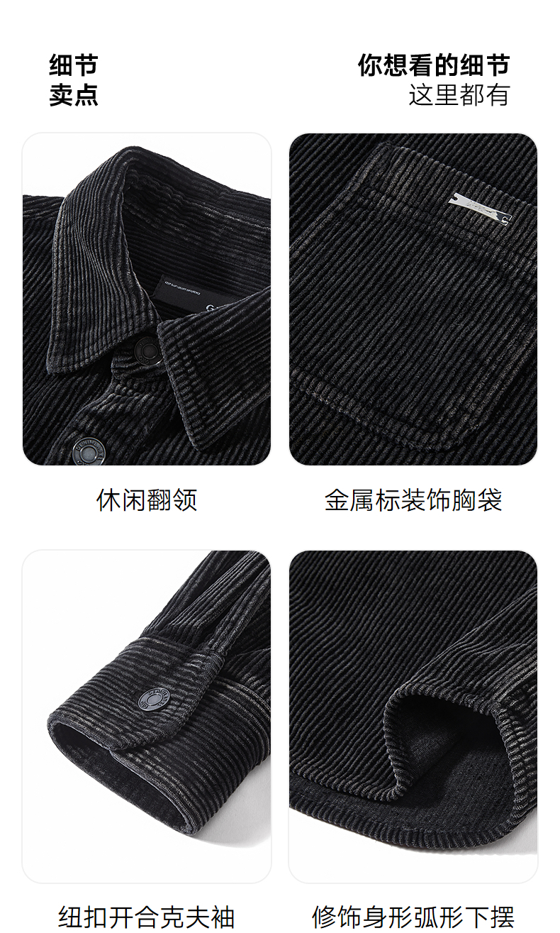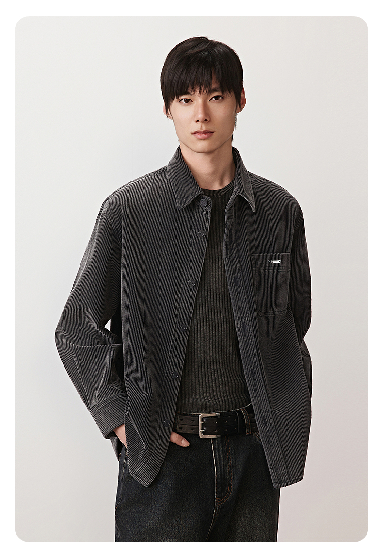 GXG男装 灯芯绒双色衬衫通勤长袖衬衣质感渐变外套 2025秋季新品