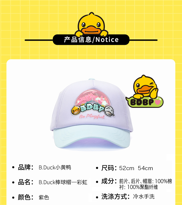 【专柜同款精品】B.Duck儿童棒球帽-彩虹 54cm