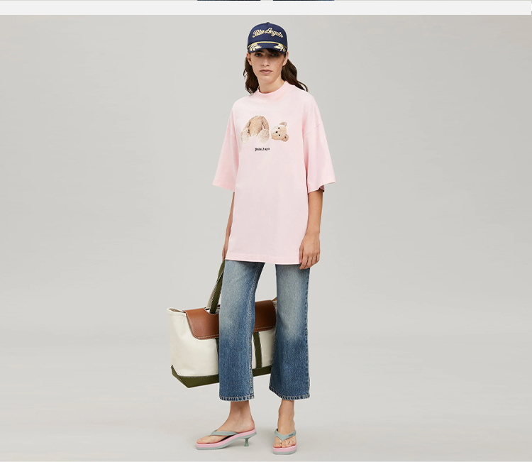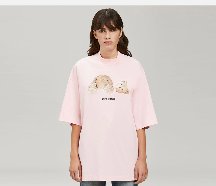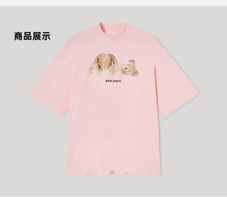 PALM ANGELS 棕榈天使 女士棉质断头熊徽标印花宽松圆领短袖T恤 粉色 PWAA017C99JER001 3460