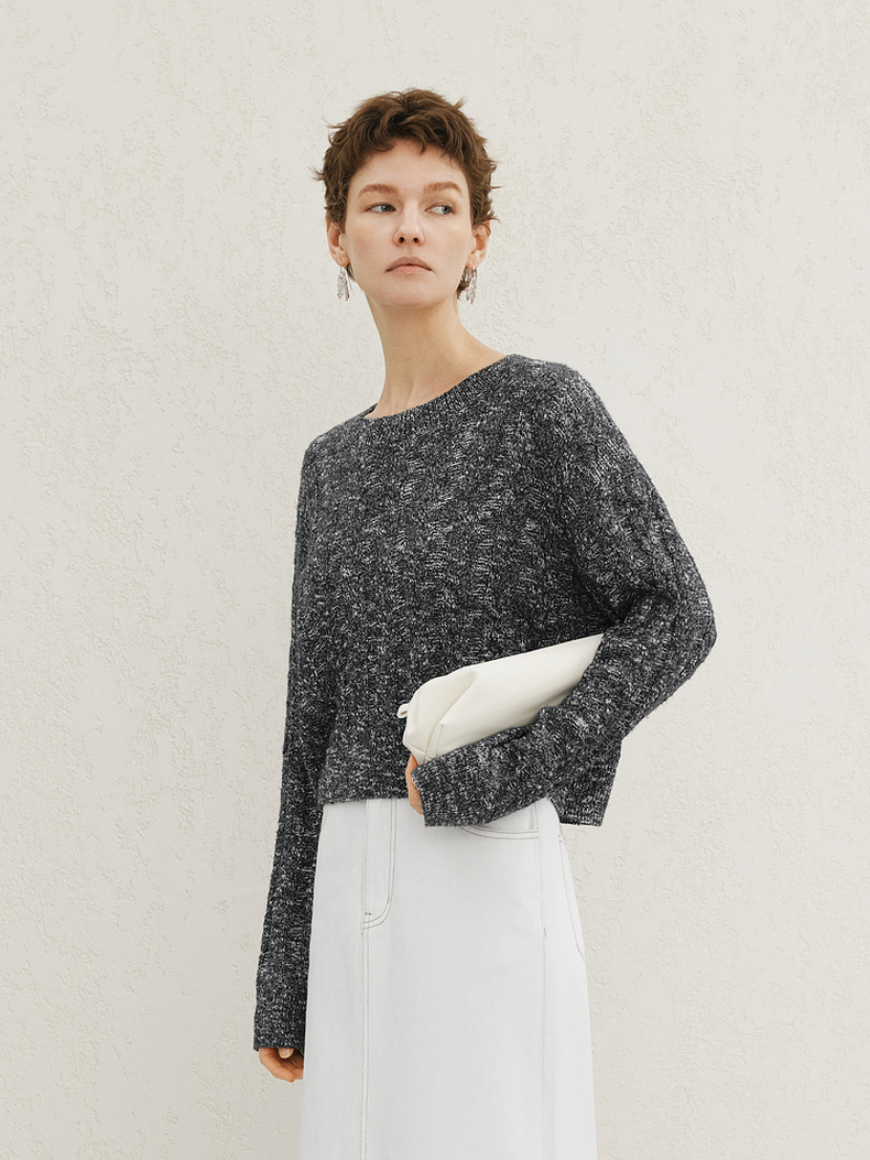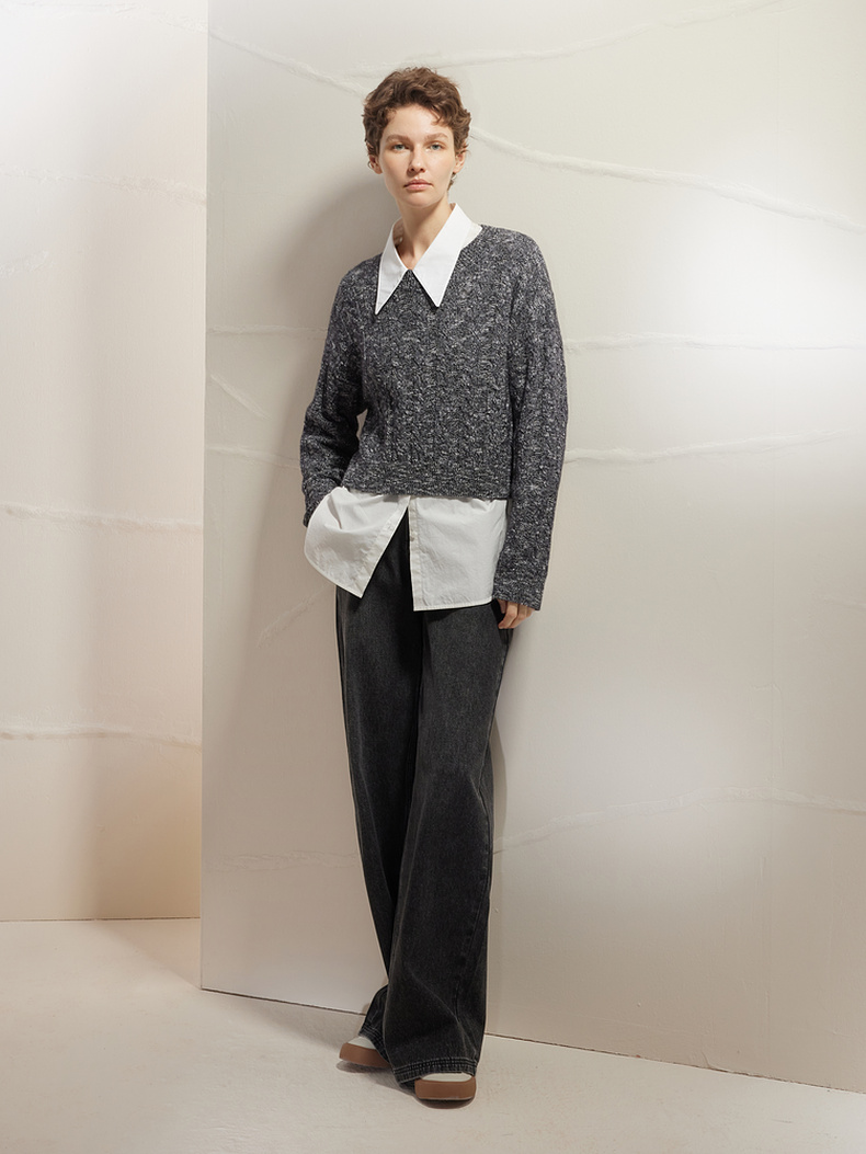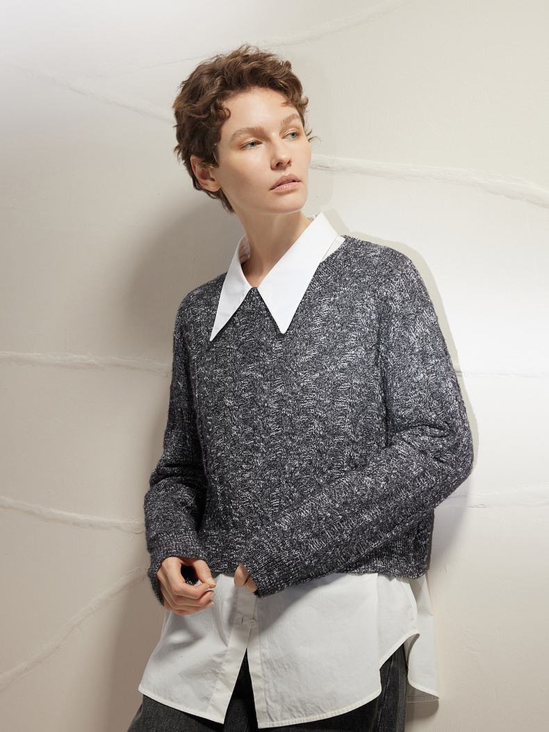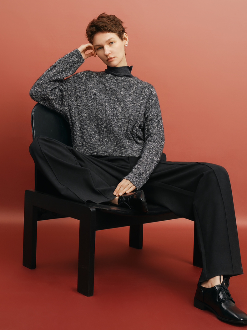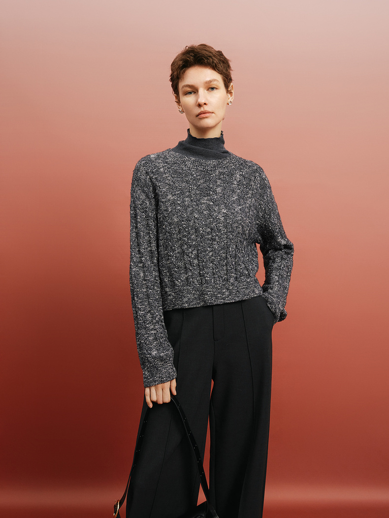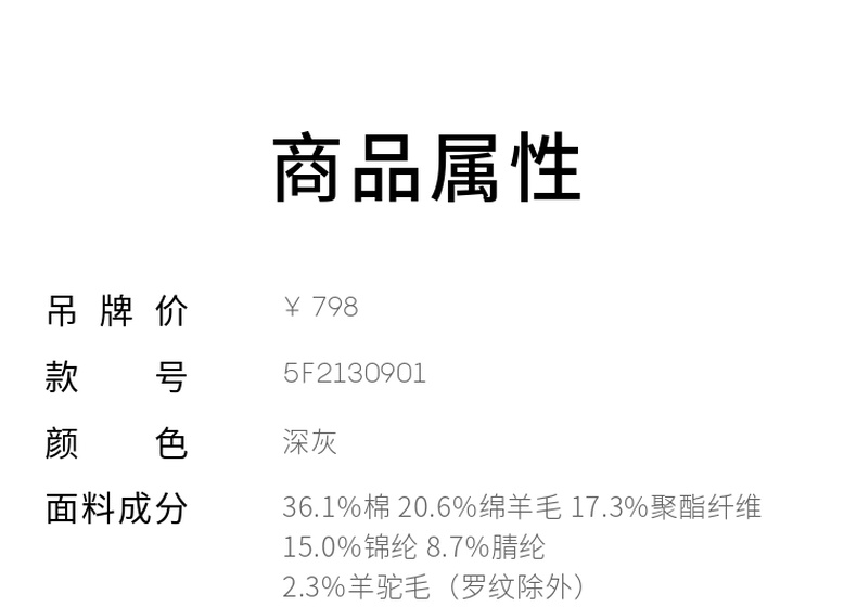 【商场同款】麦檬春秋深灰色绵羊毛套头毛衫5F2130901