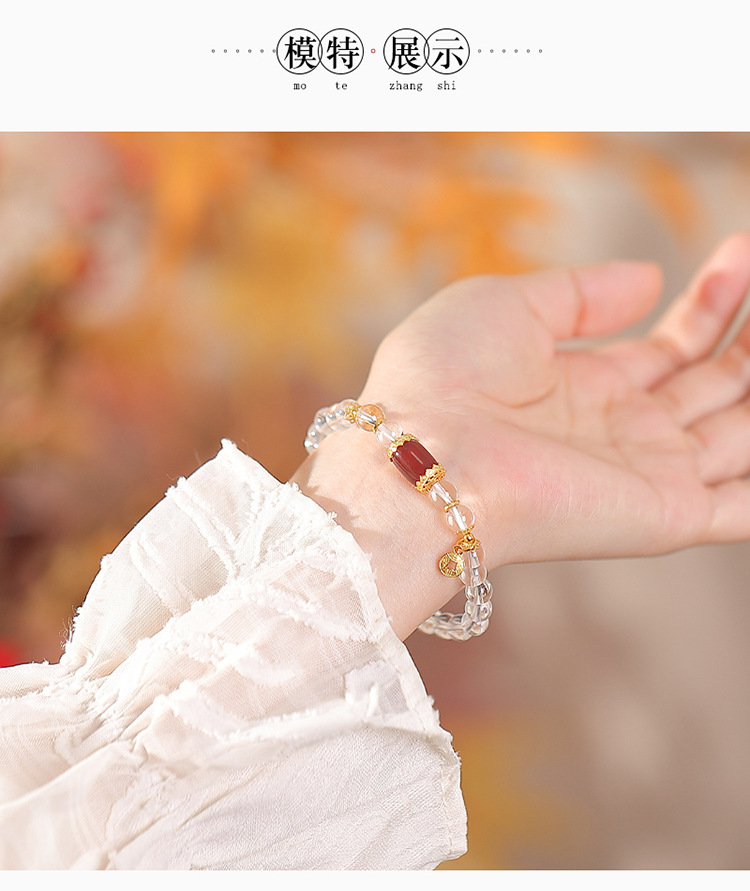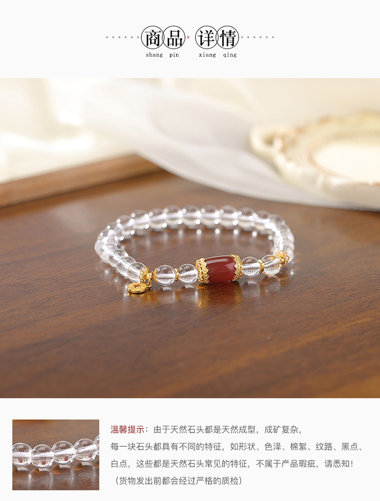 【锦绣红颜】S925纯银天然白水晶红玛瑙桶珠钱币手串【CW-SL11739-25】