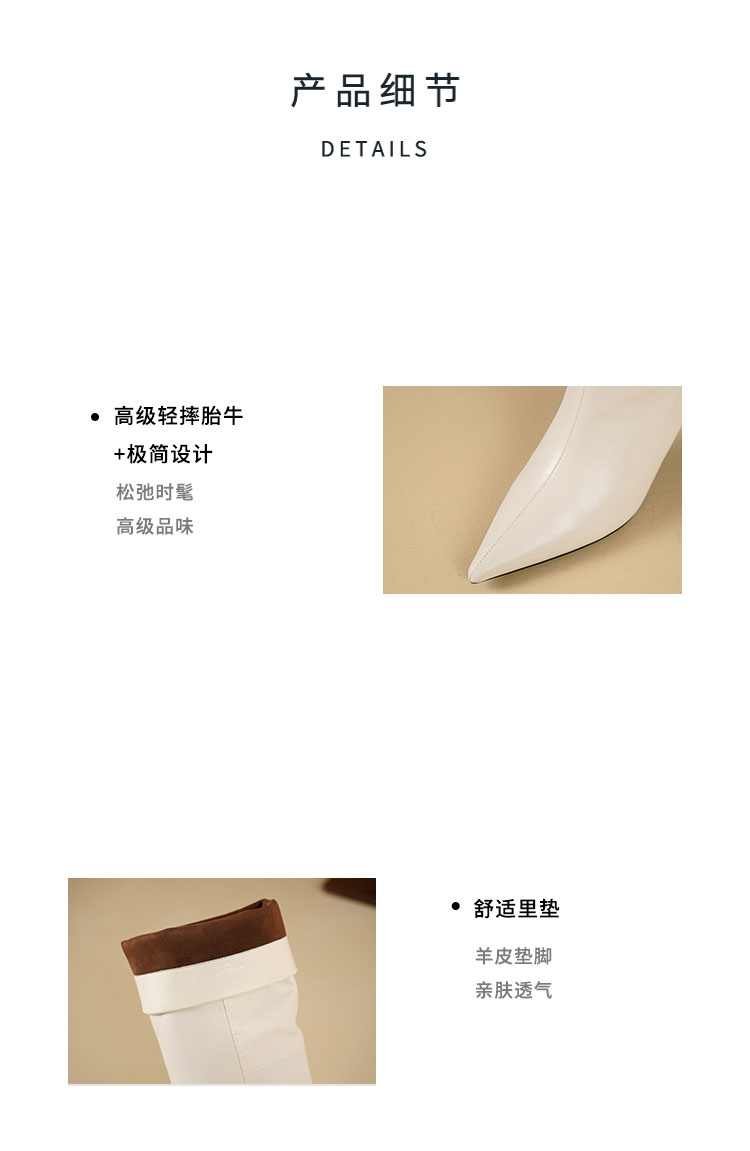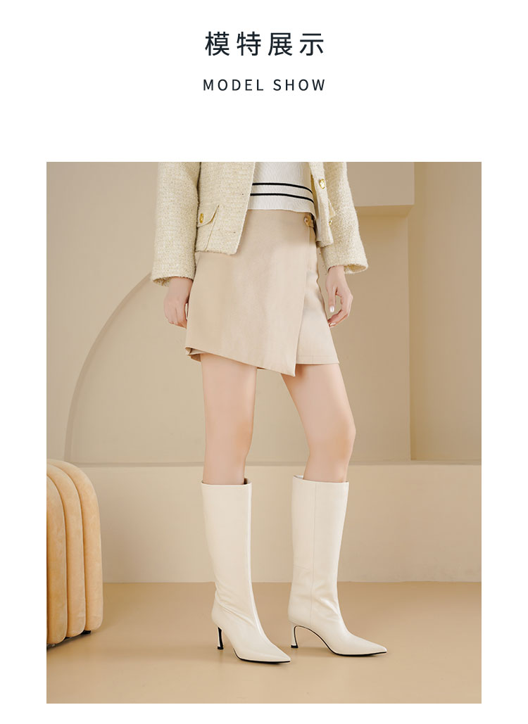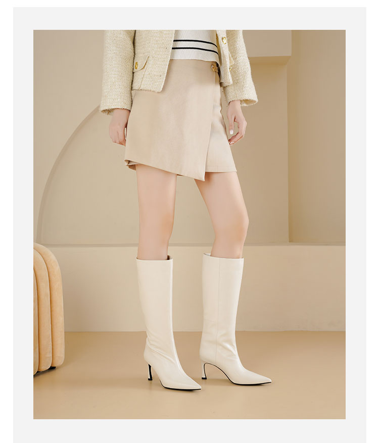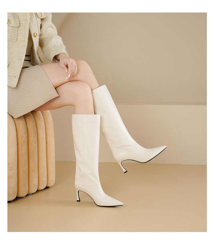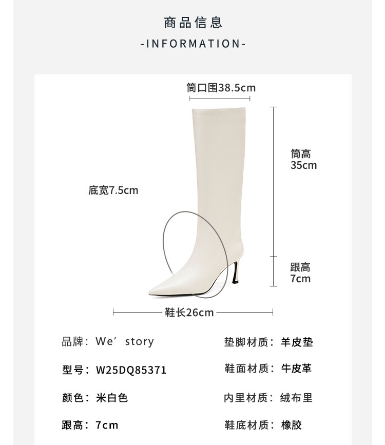 Westory2025年尖头高跟极简轻摔柔软胎牛皮百搭高靴W25DQ85371