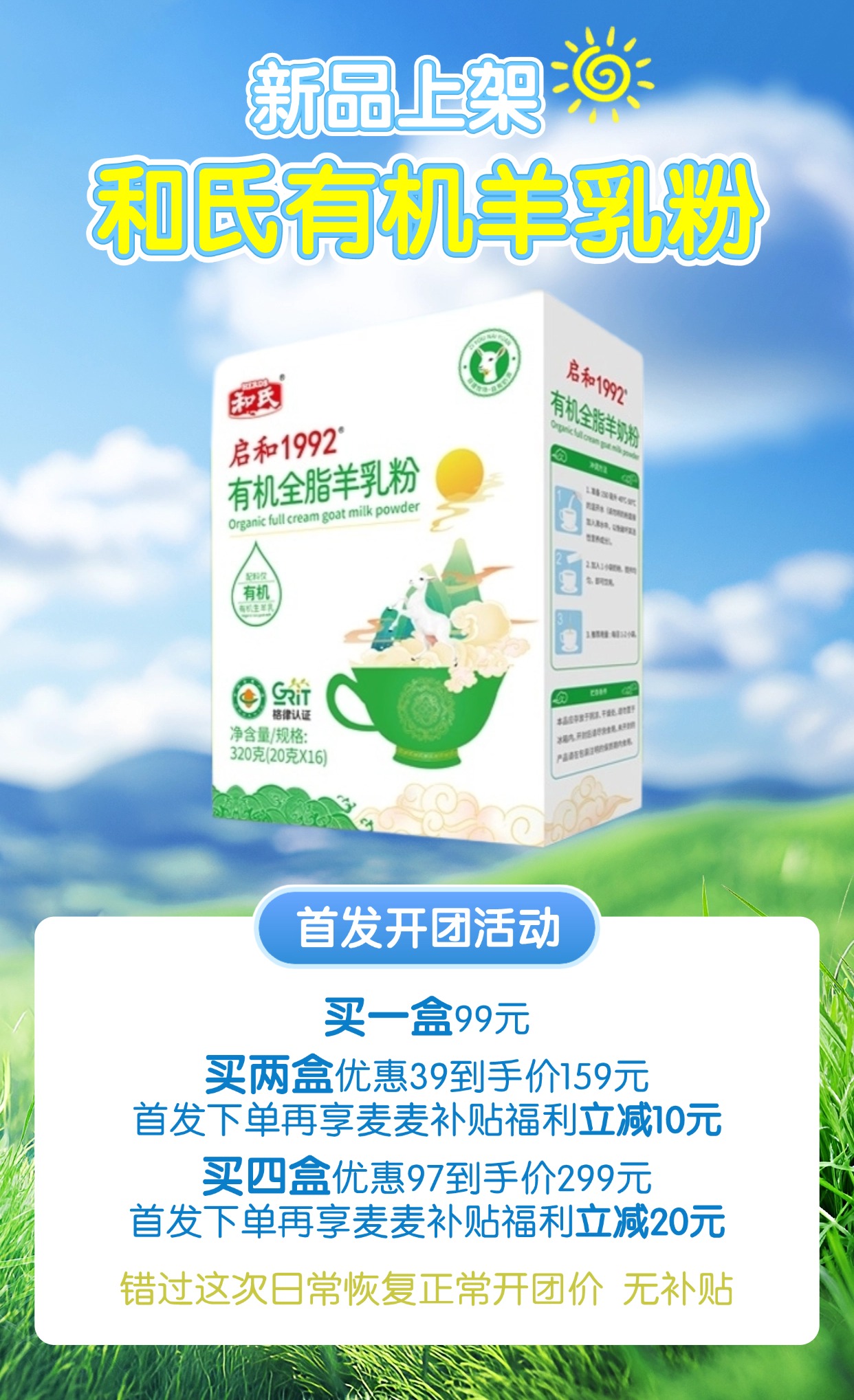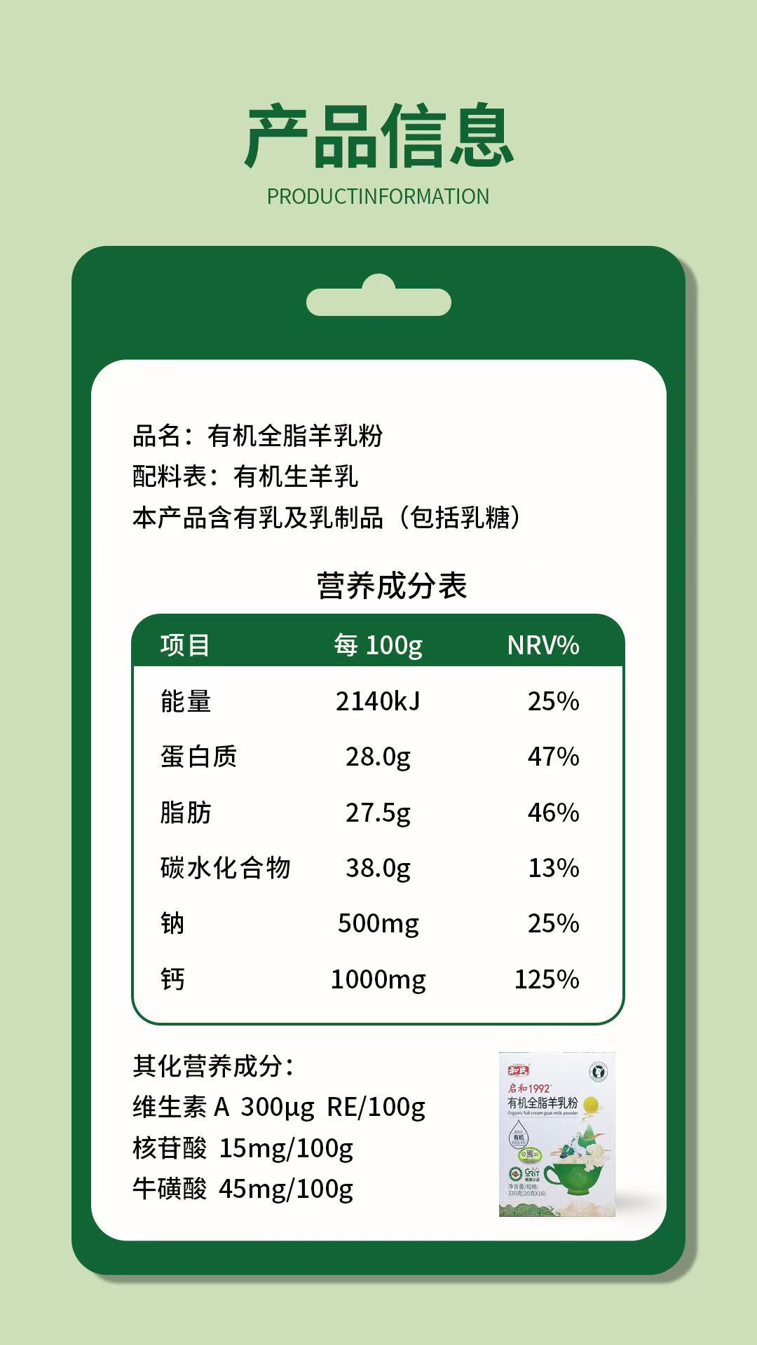 【和氏有机纯羊乳粉】100%纯生羊乳!每100g含高达28g蛋白质!奶香浓郁,口感顺滑醇厚!强健骨骼,不会产生乳糖不耐,老少皆宜!