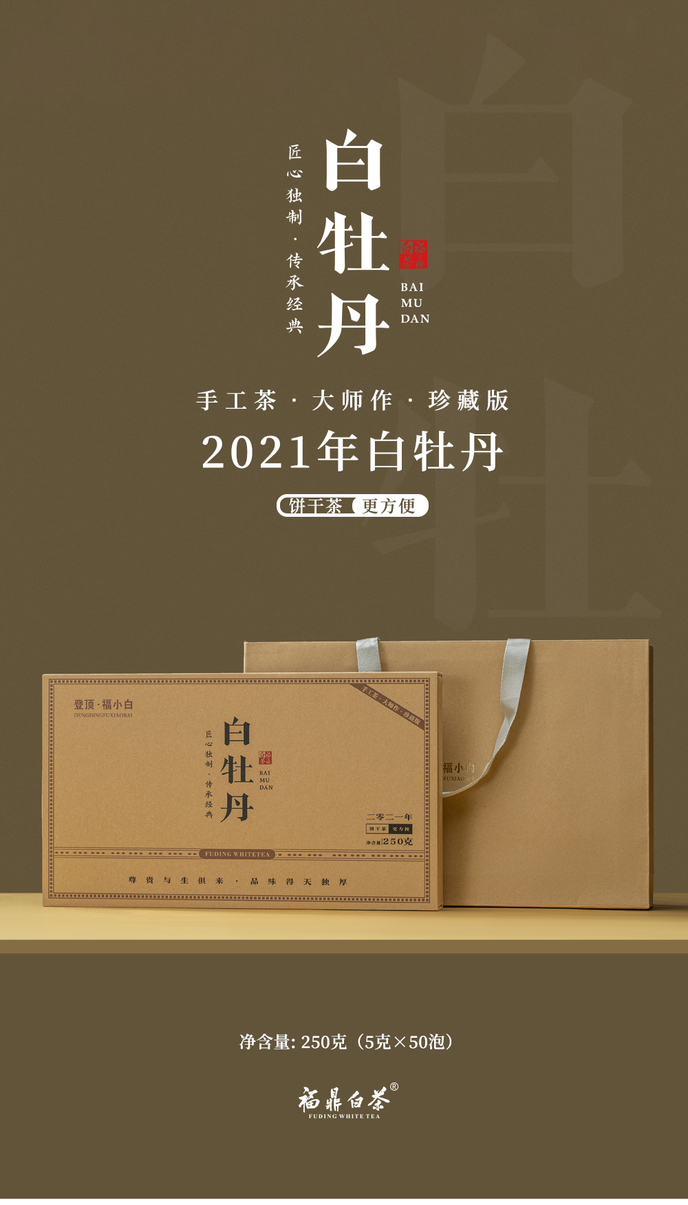 登顶·福小白 福鼎白茶2021牡丹饼干 5g*50泡 250g