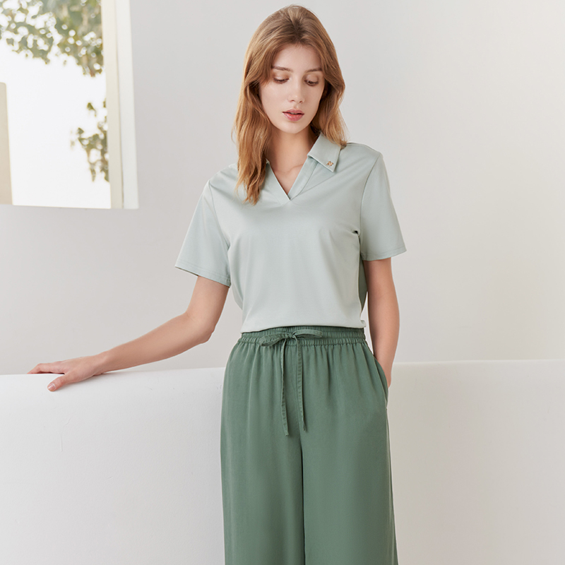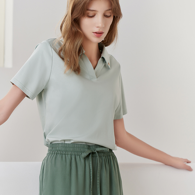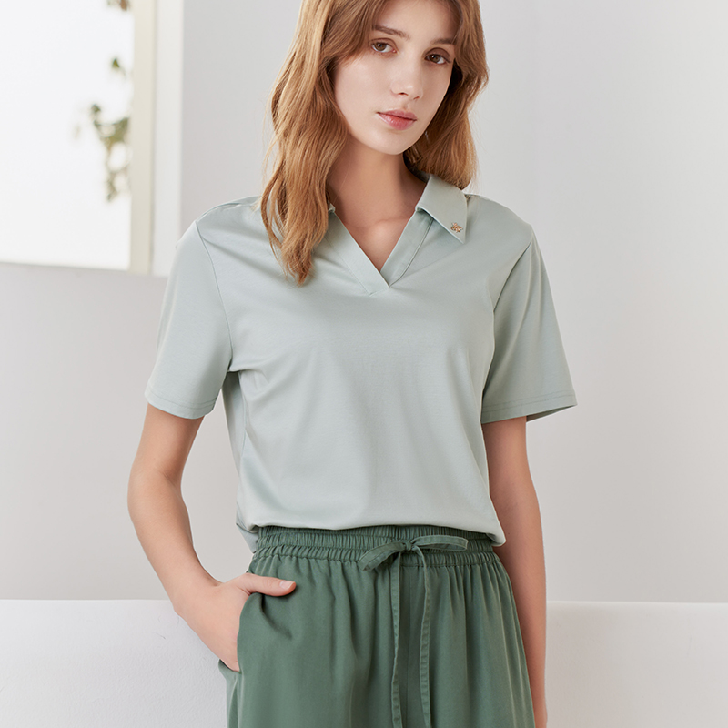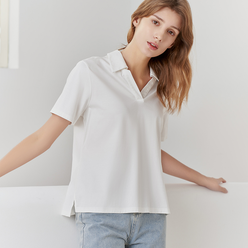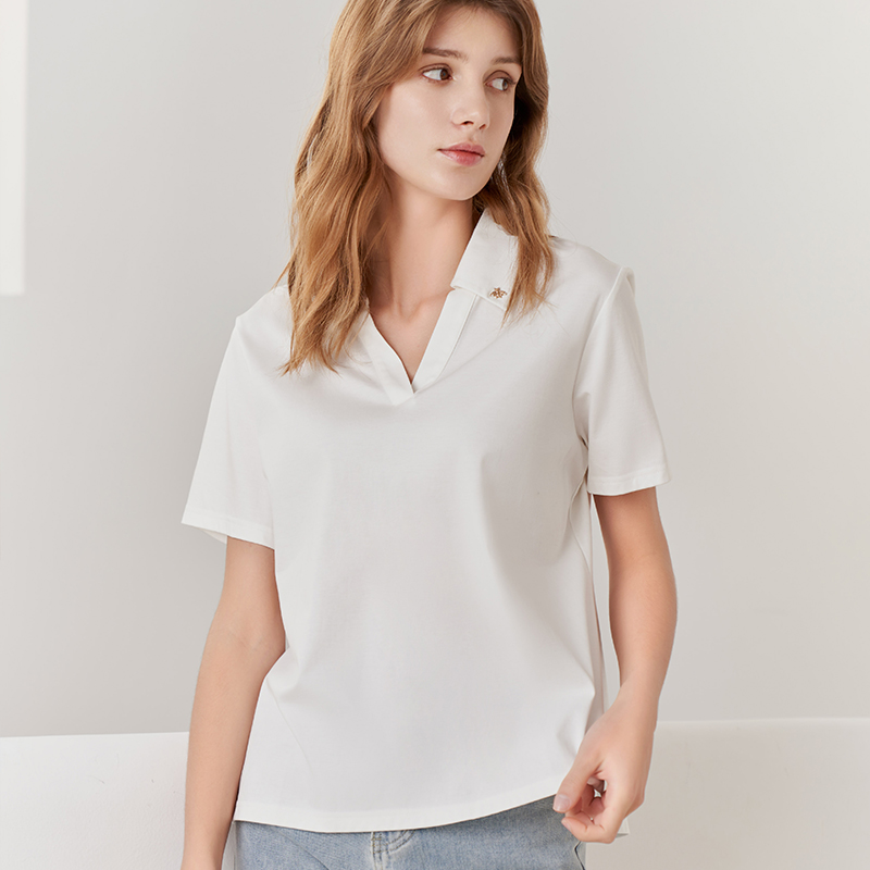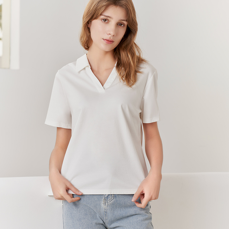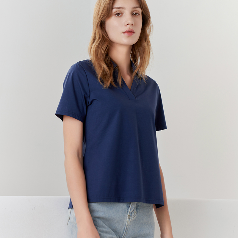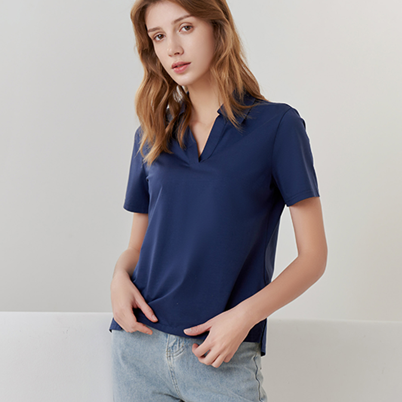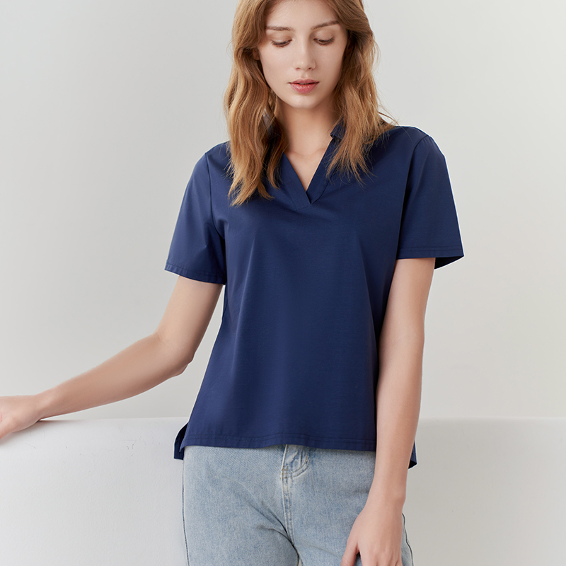【V领短袖T恤】23年春夏新品女士上衣纯色不对称薄款短袖上衣