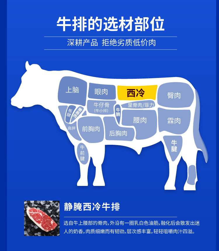 犇西诗原切静腌眼肉西冷牛排牛肉套餐1040g