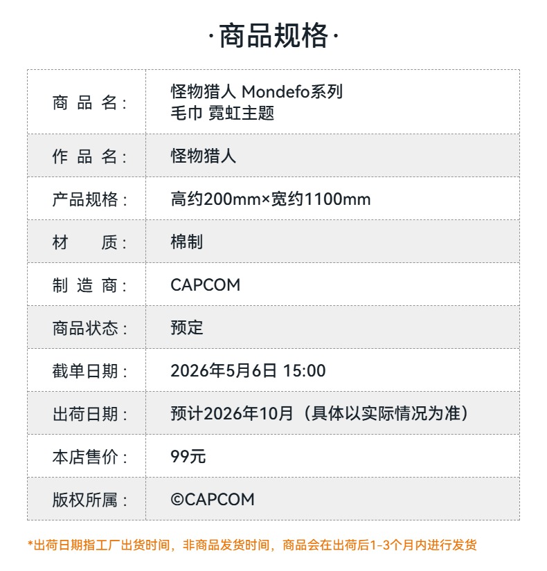 【GSC预售定金】怪物猎人 Mondefo系列 毛巾 霓虹主题