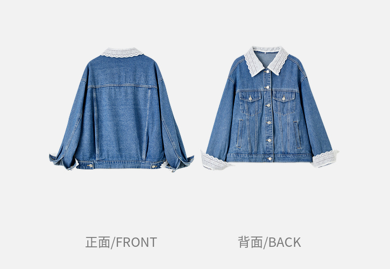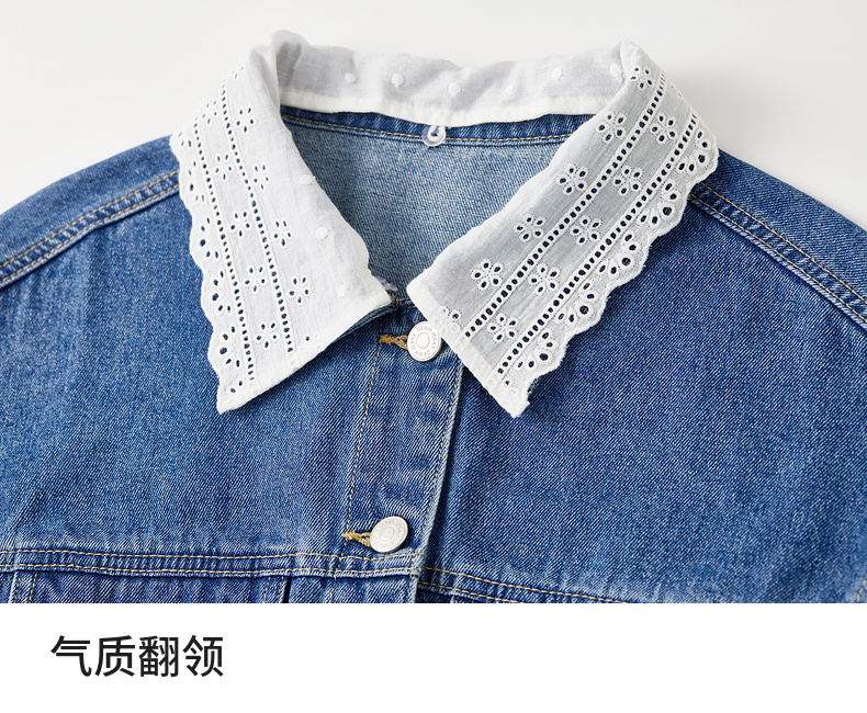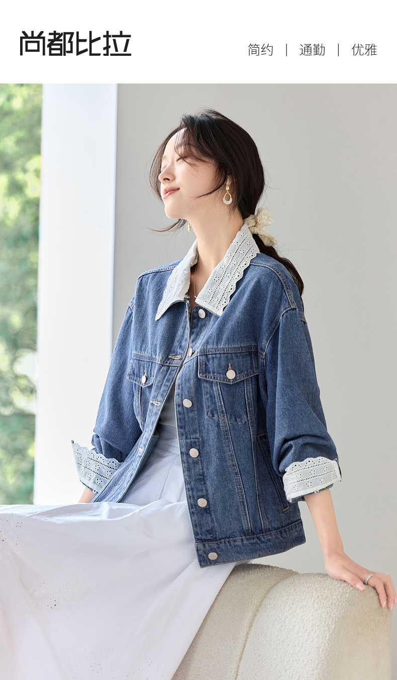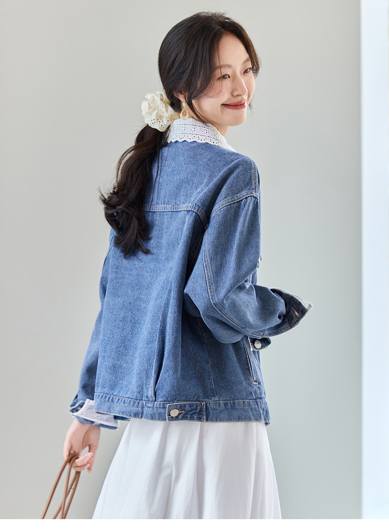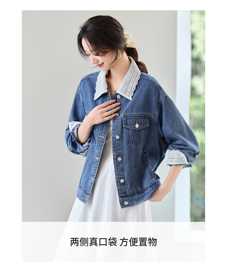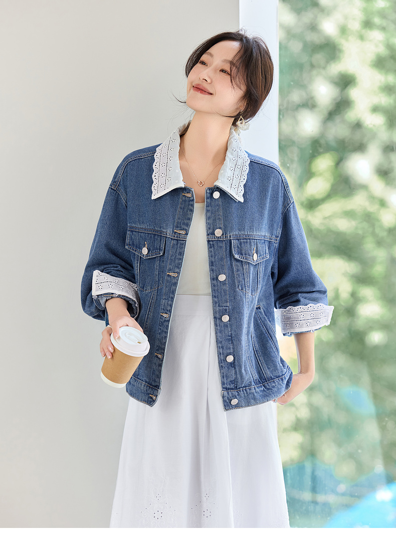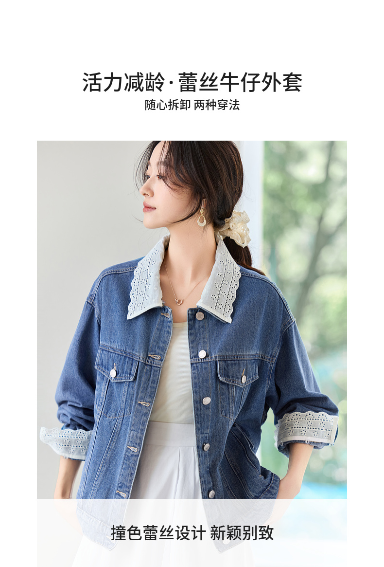 【内购】【拼接蕾丝】简约通勤翻领长袖含再生纤维素&亲肤棉两穿牛仔外套-W51W80410