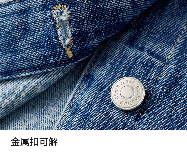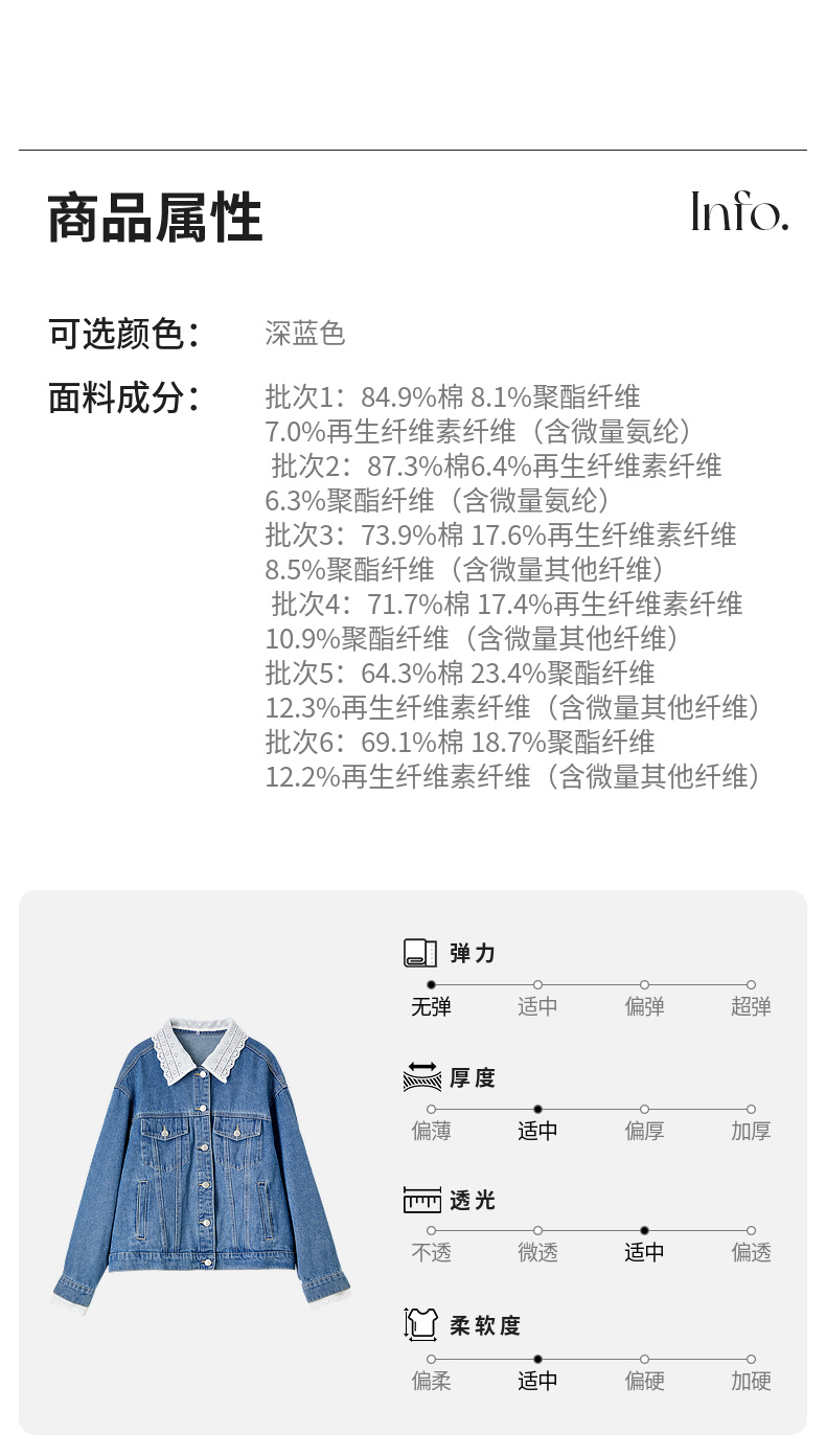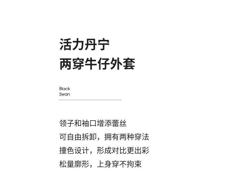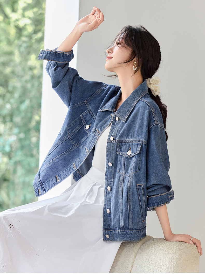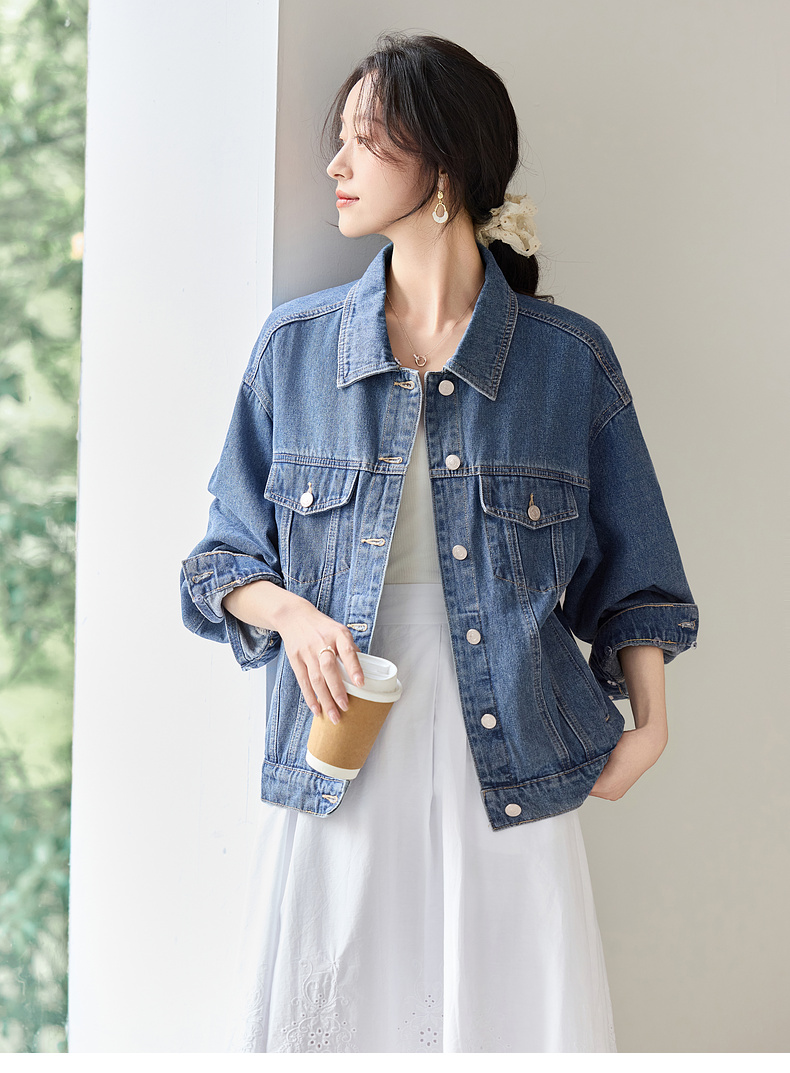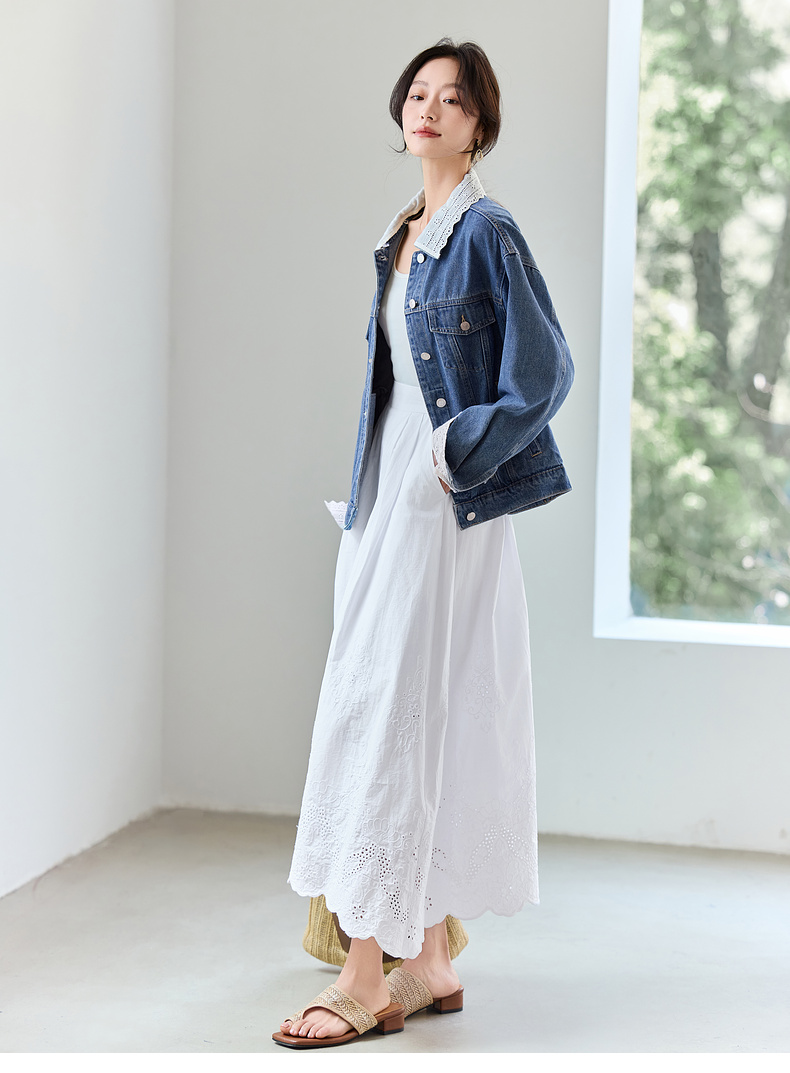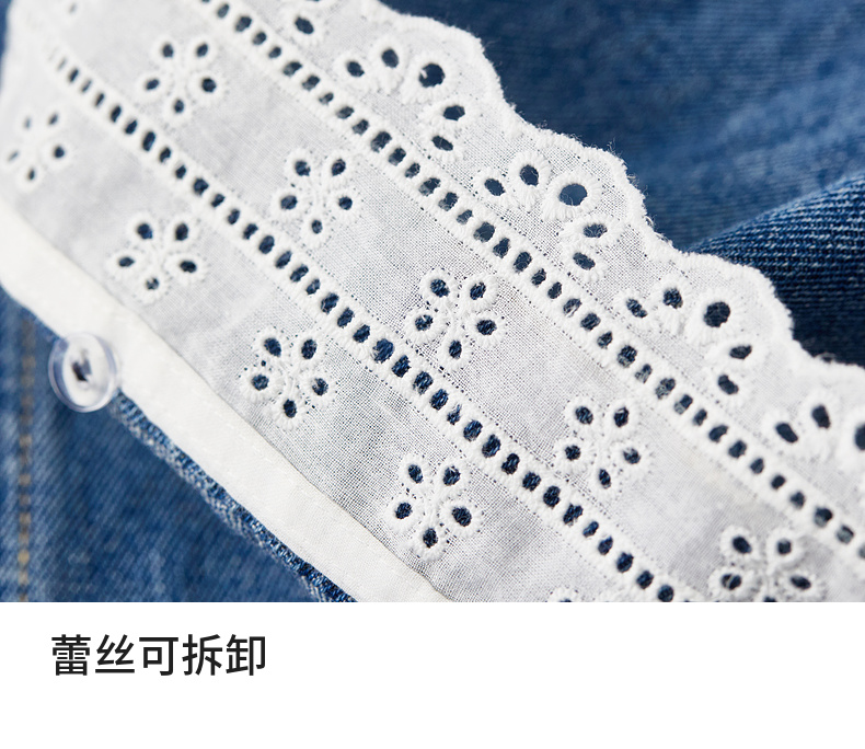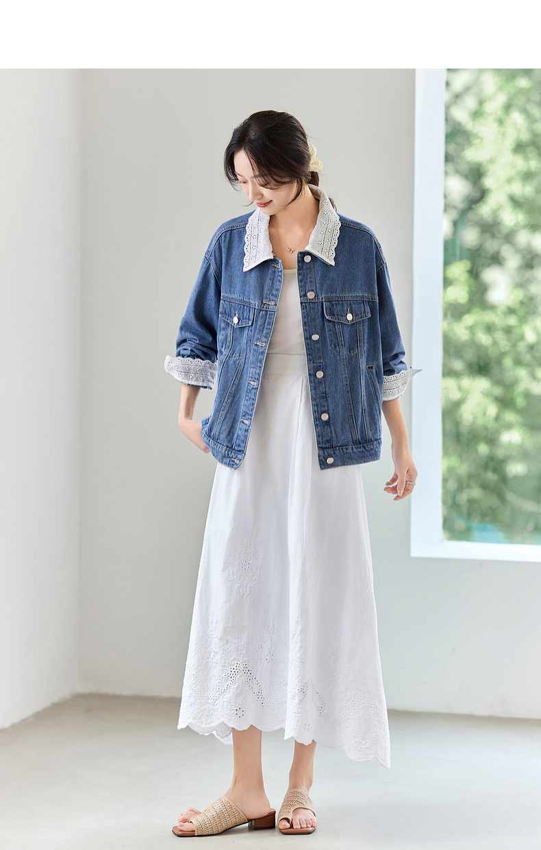 【内购】【拼接蕾丝】简约通勤翻领长袖含再生纤维素&亲肤棉两穿牛仔外套-W51W80410