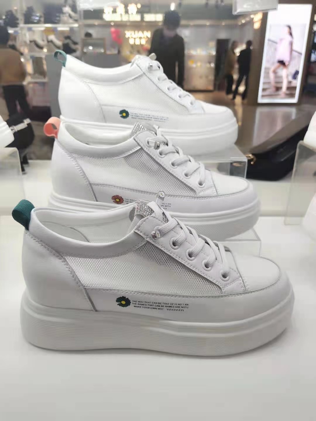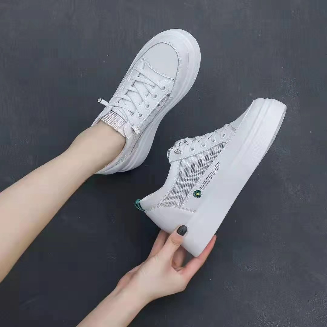 这款休闲鞋是采用皮+网设计,透气性较好,内增高,搭配裙子,休闲裤等 百搭时尚 舒适。
