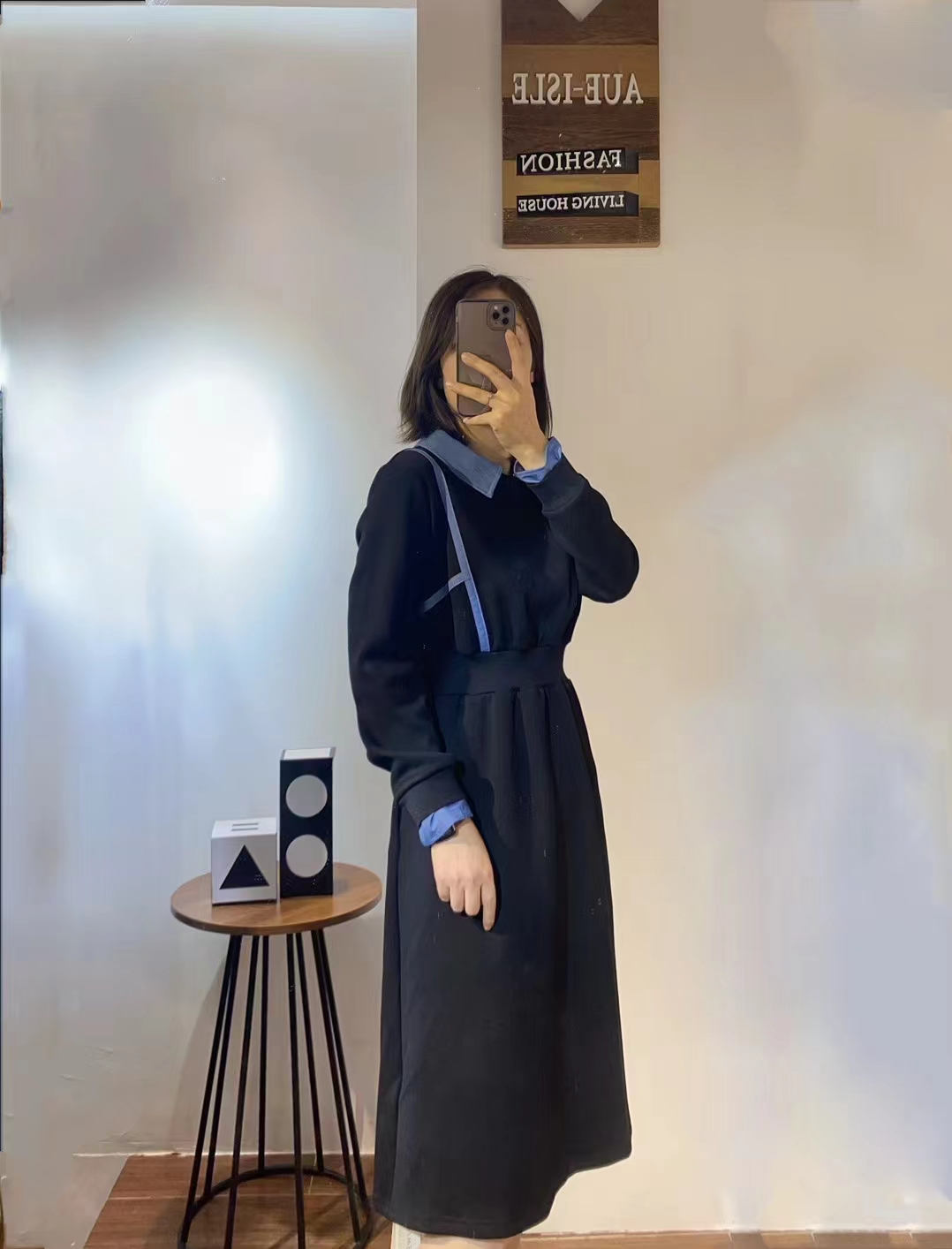 XC3L186 # 黑 M-L 几何线条的立体剪裁 色彩的拼接 让假两件衬衫卫衣裙视觉上具有空间立体感 腰部扁机弹力螺纹设计 修饰纤细的小蛮腰 整体时尚又减龄 在舒适中放飞自我