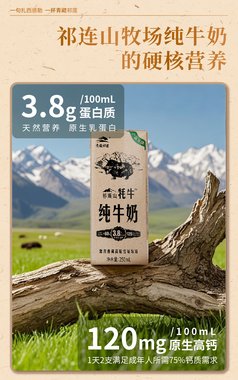 青藏祁莲祁连山牧场 牦牛奶含量≥60% 250ml*12盒*2箱
