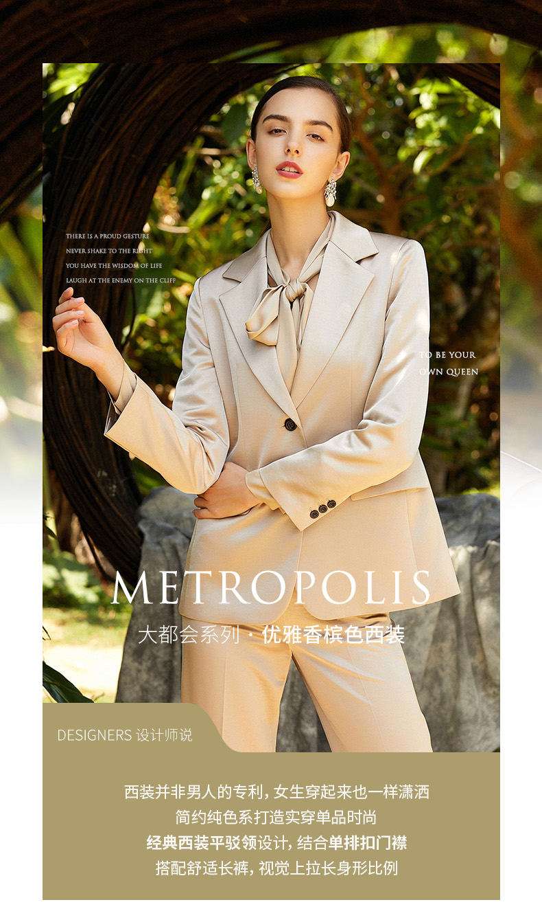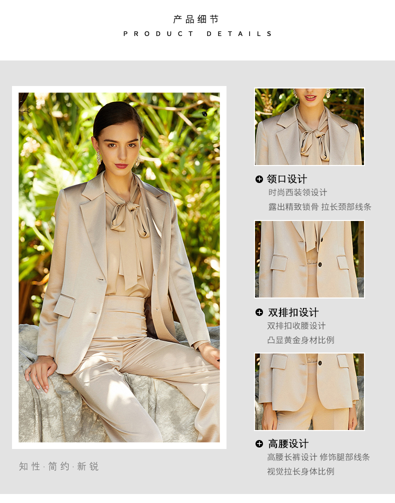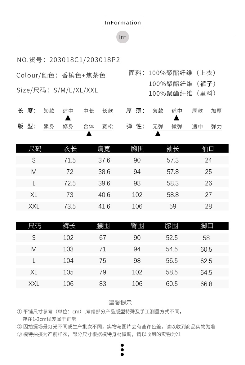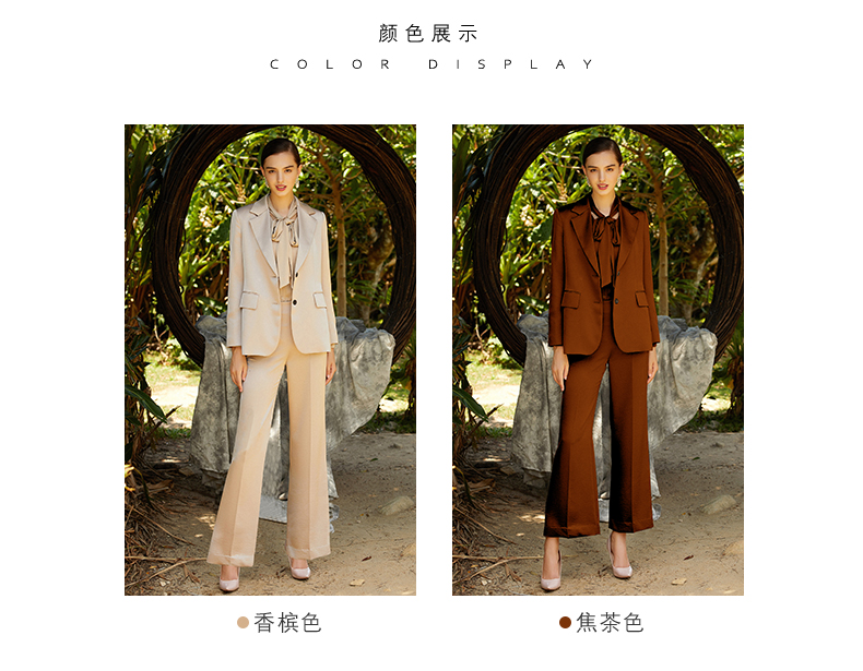 IWY/香槟色焦茶色长袖西装阔腿长裤套装203018C1+P2