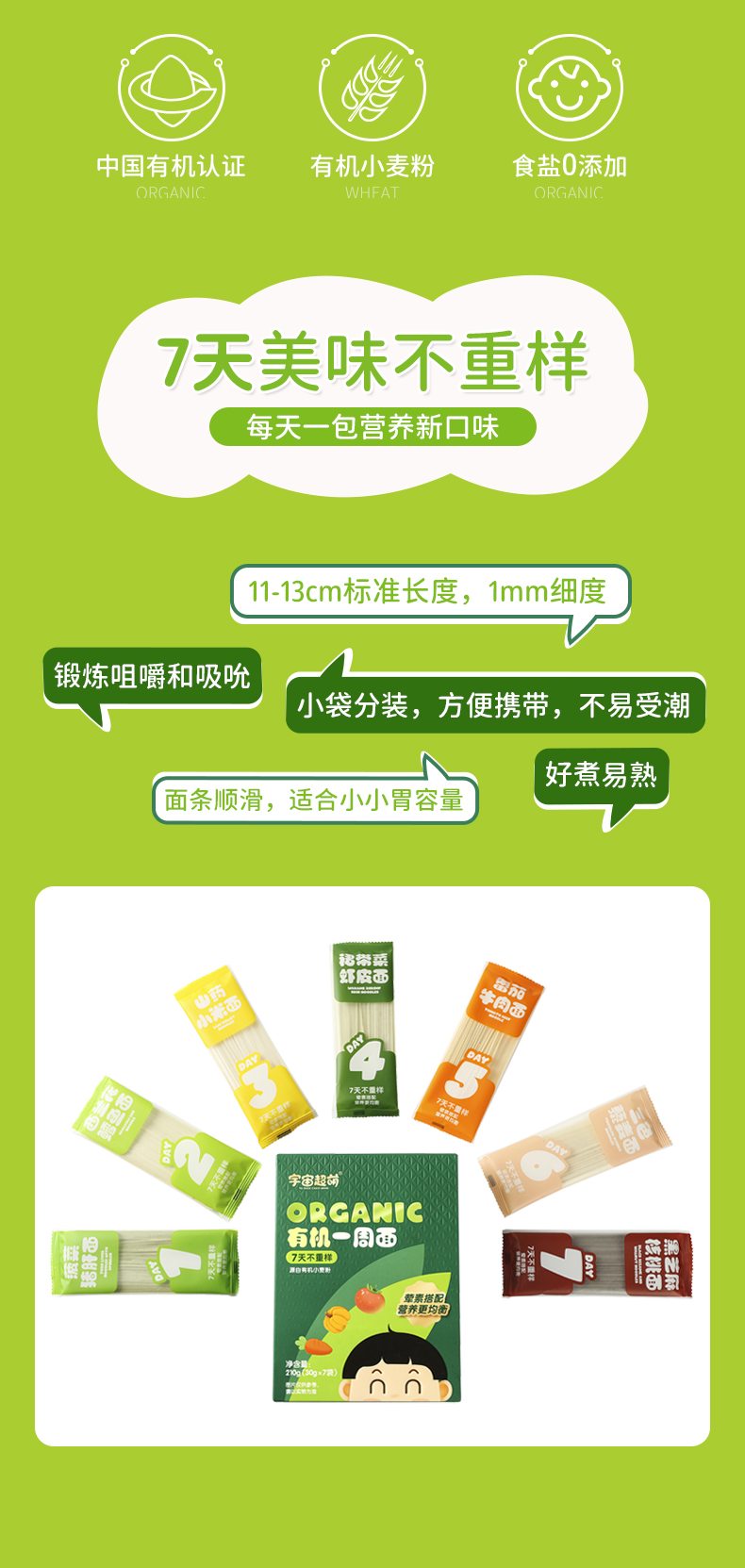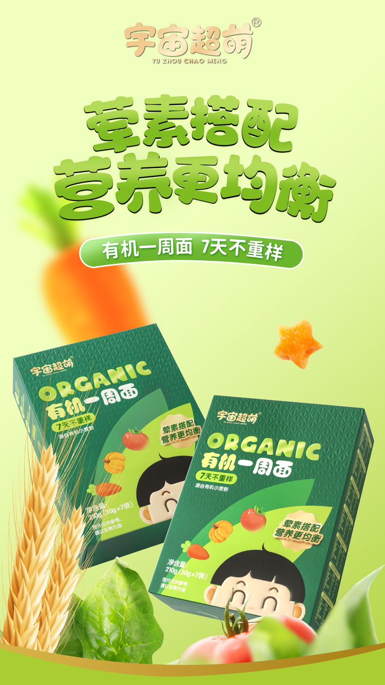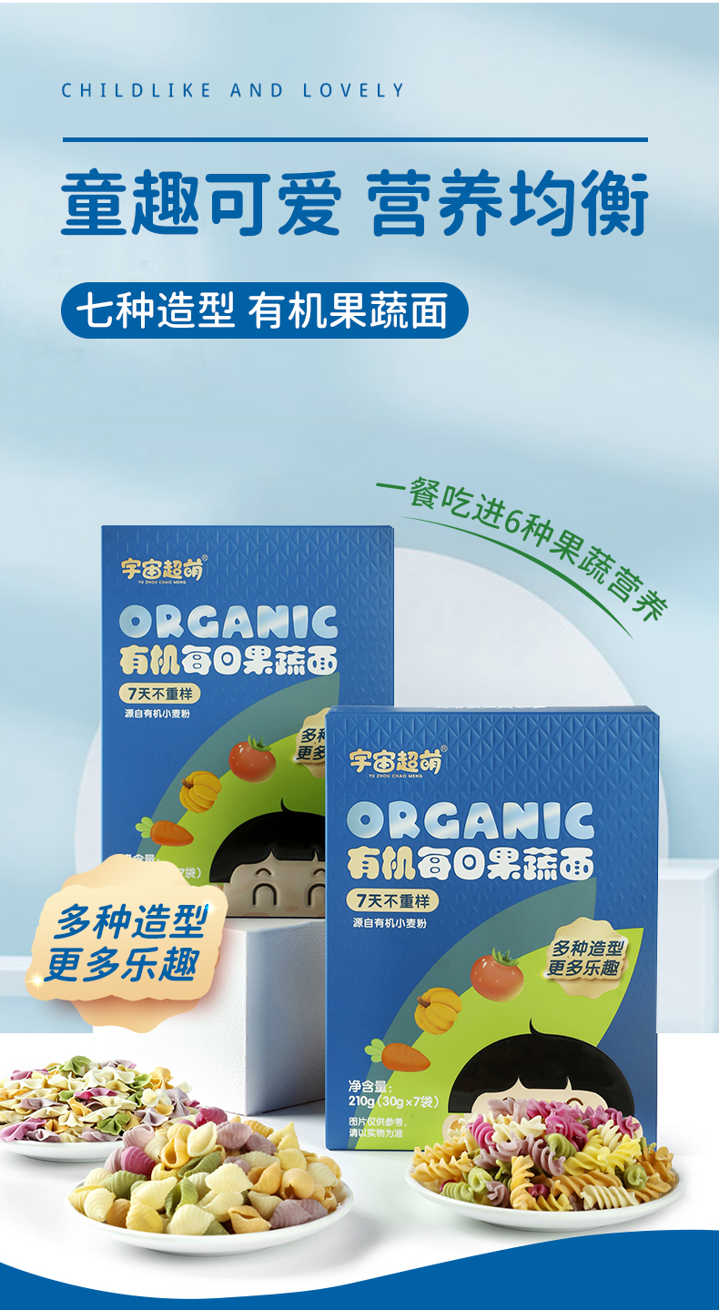 宇宙超萌 有机一周面宝宝辅食 7天不重样 源自有机小麦粉 30g*7袋