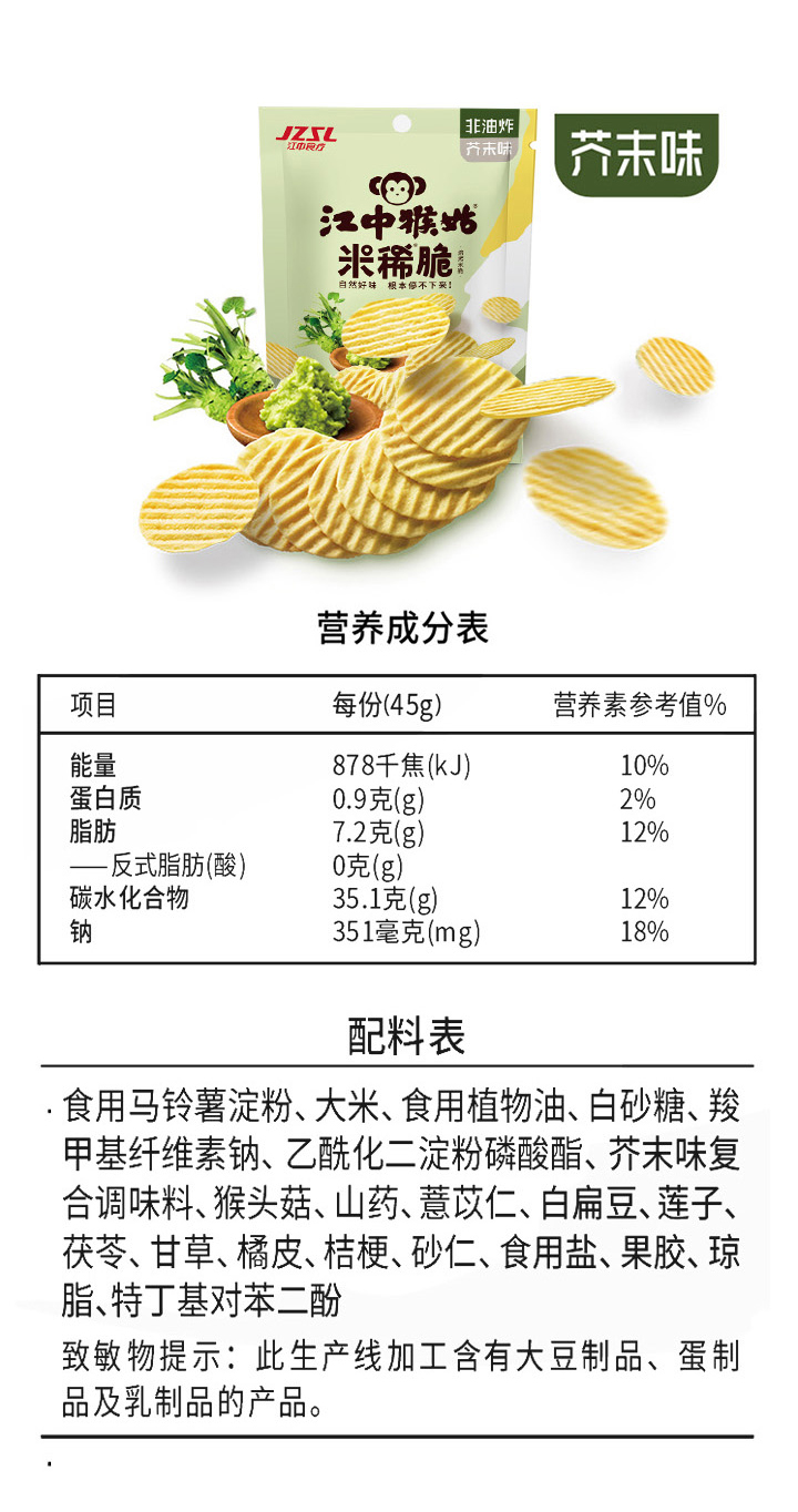 【3.8折起】江中猴姑·米稀脆 45克/袋 焙烤米脆 保质期到2026年2月