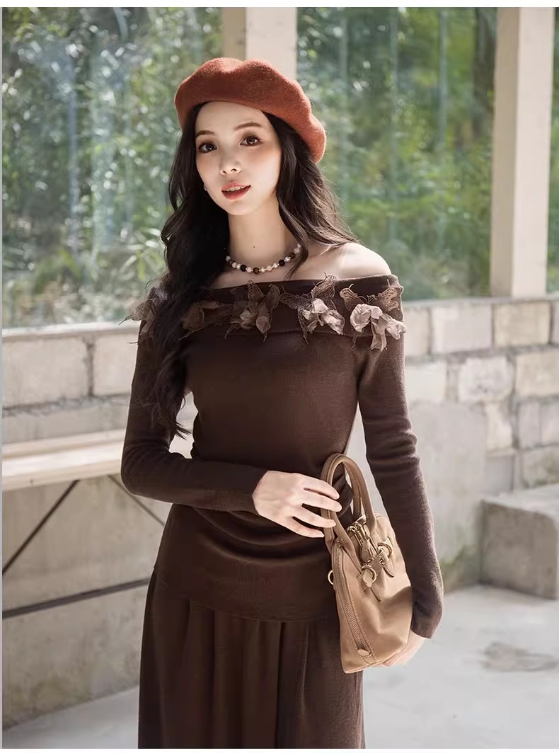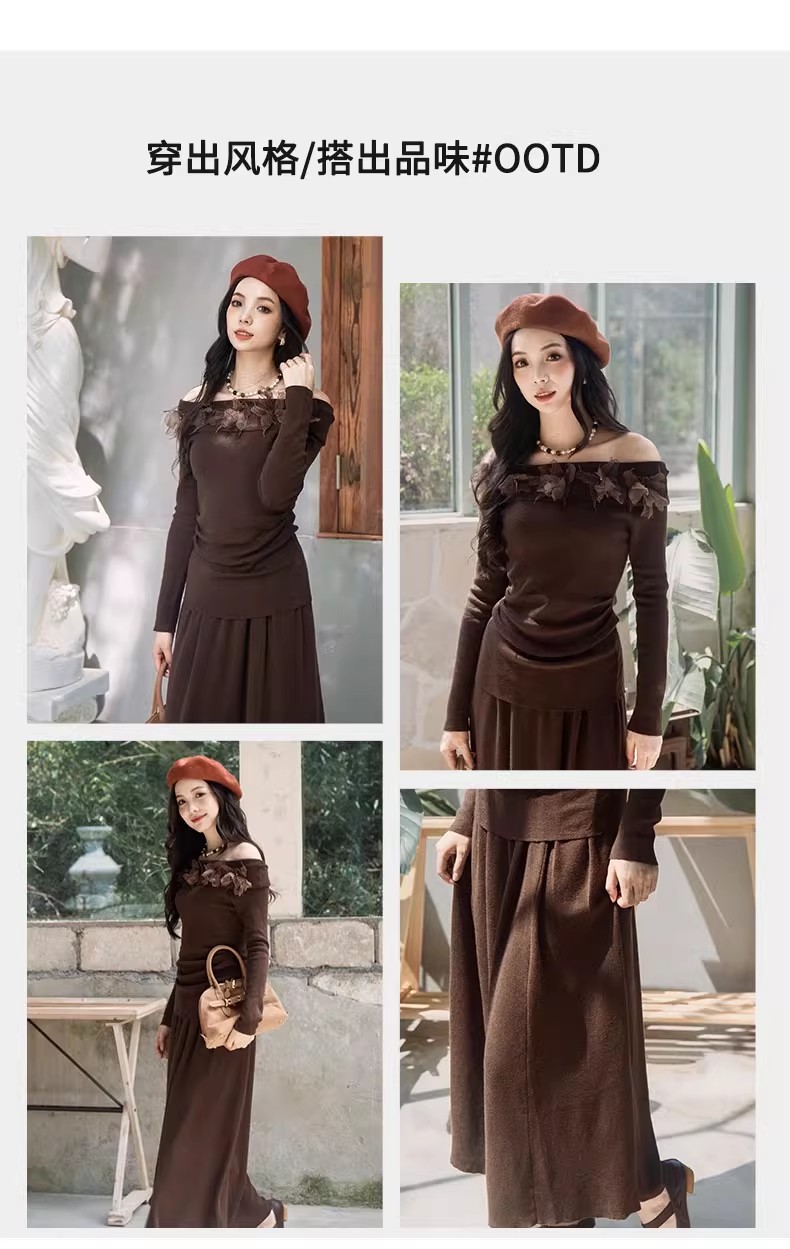 【门店同款】ENJOY秋季“谧色花颂”一字肩花朵套装裙 165495435
