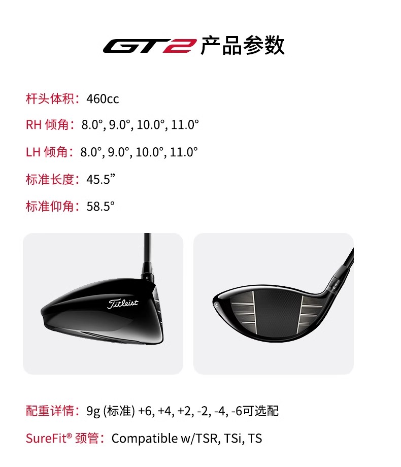Titleist泰特利斯高尔夫球杆GT2发球木杆高容错高球速一号木