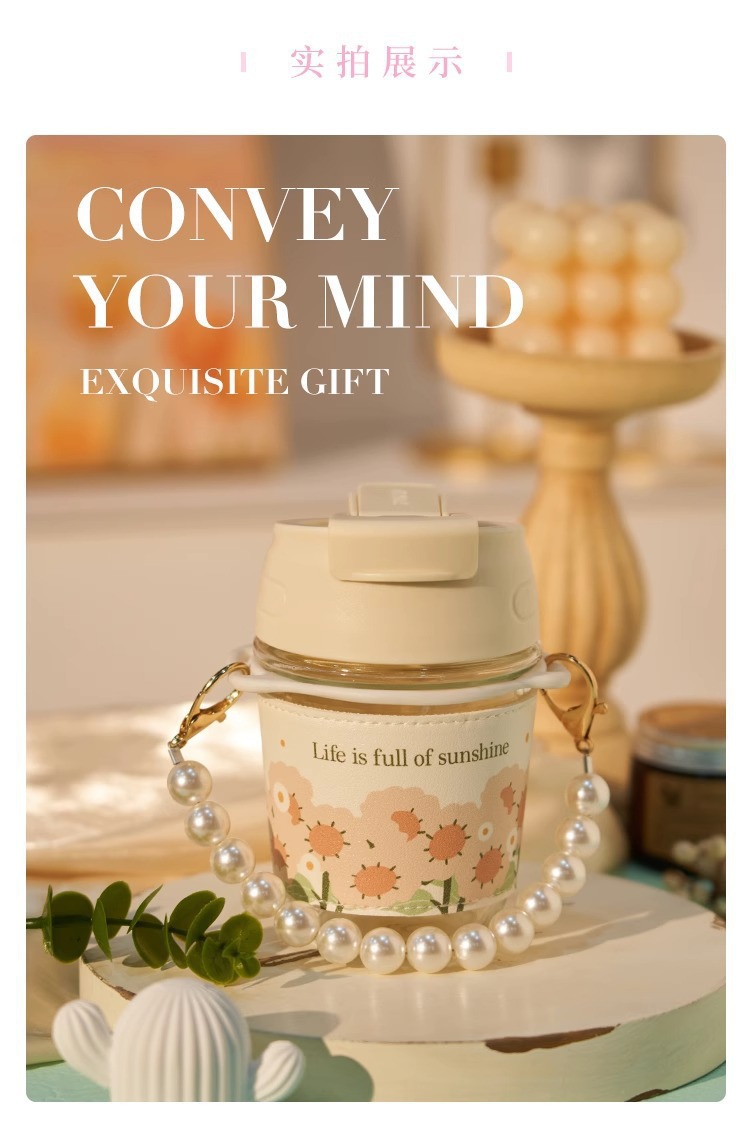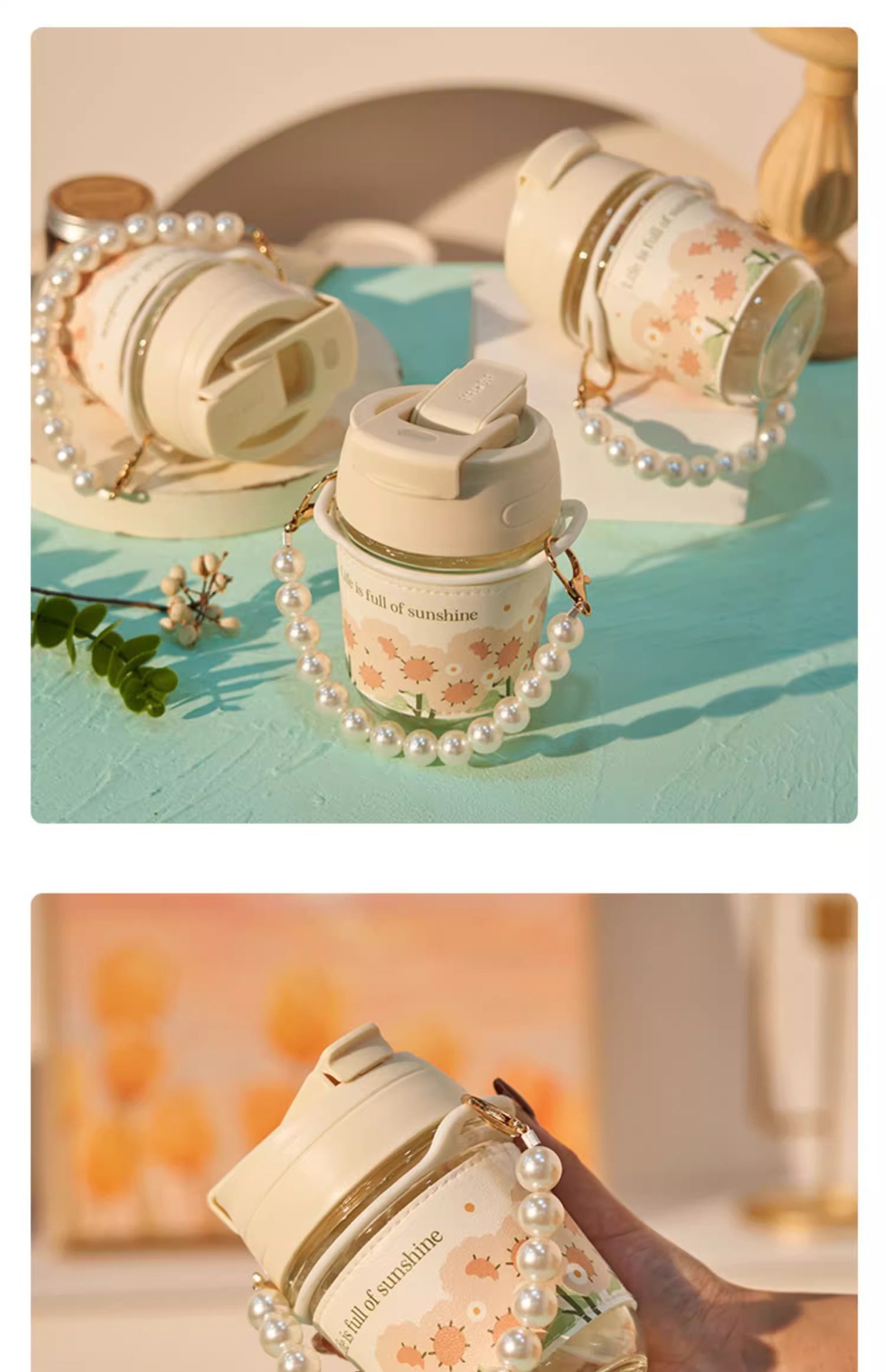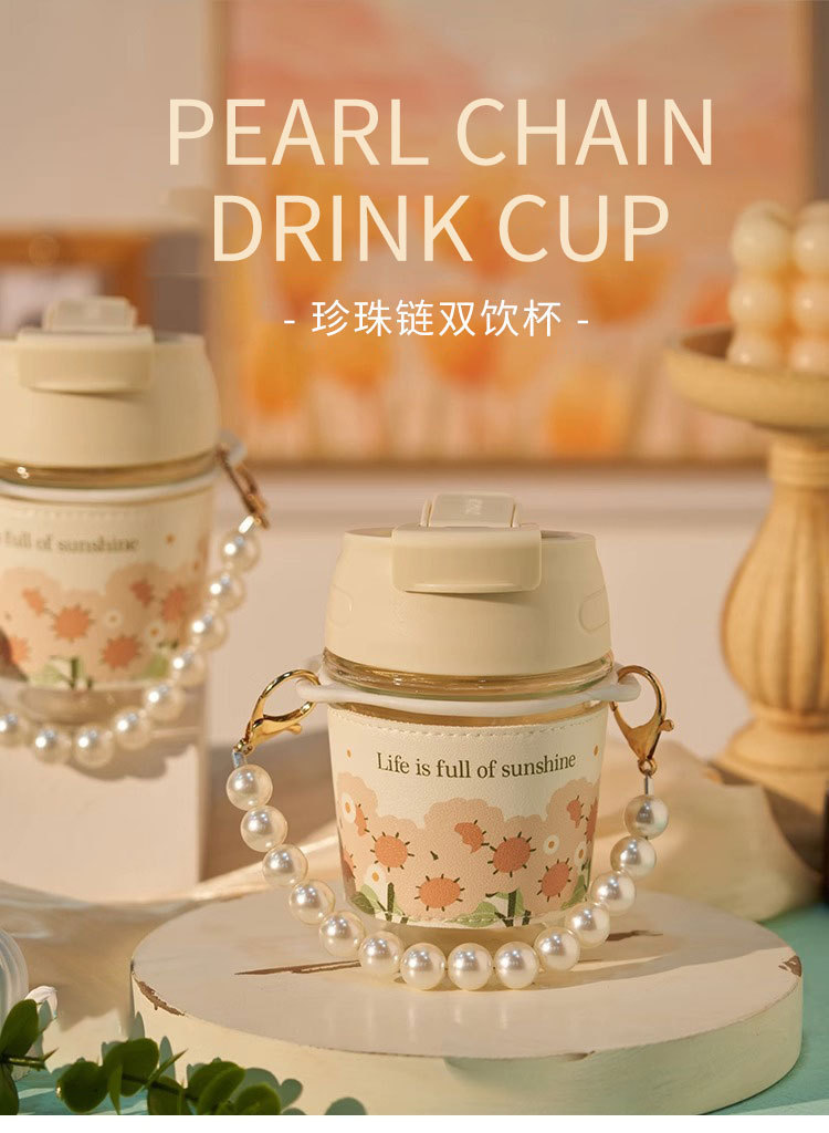【敲高颜值!珍珠链双饮杯】珍珠杯伴手礼品杯网红水杯ins风便携玻璃吸管杯手提双饮杯,可拆卸安心硅胶材质,真的太适用了。ry