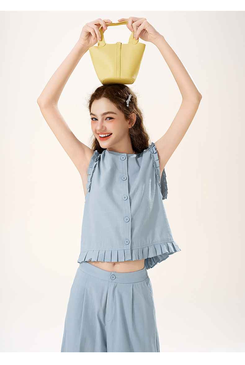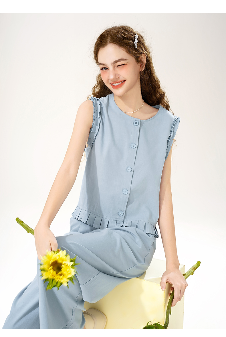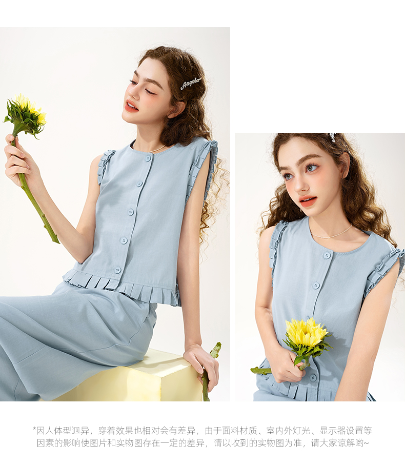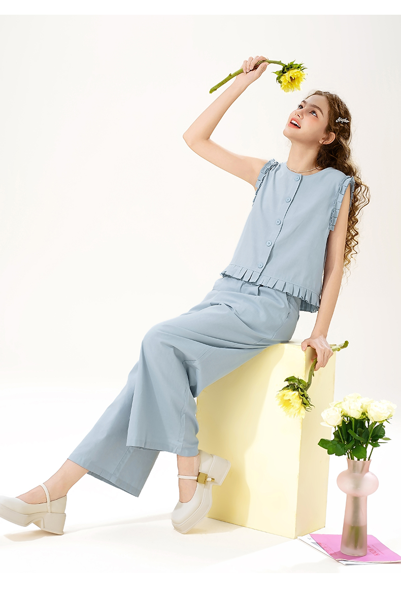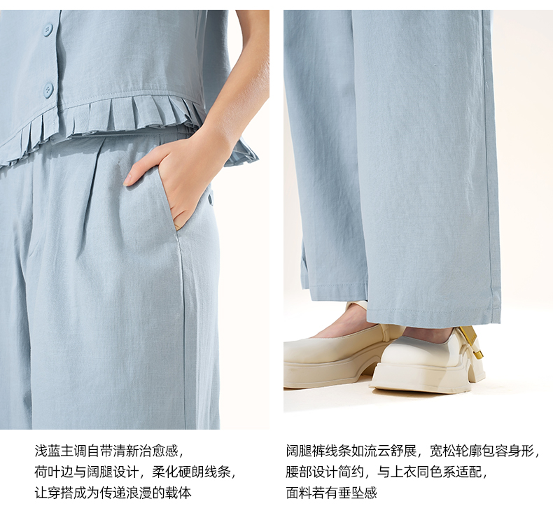 mc2花边袖上衣配阔腿套装女装夏季新款宽松休闲时尚洋气好看