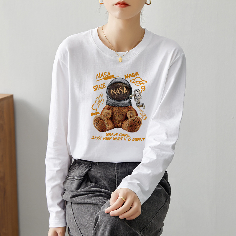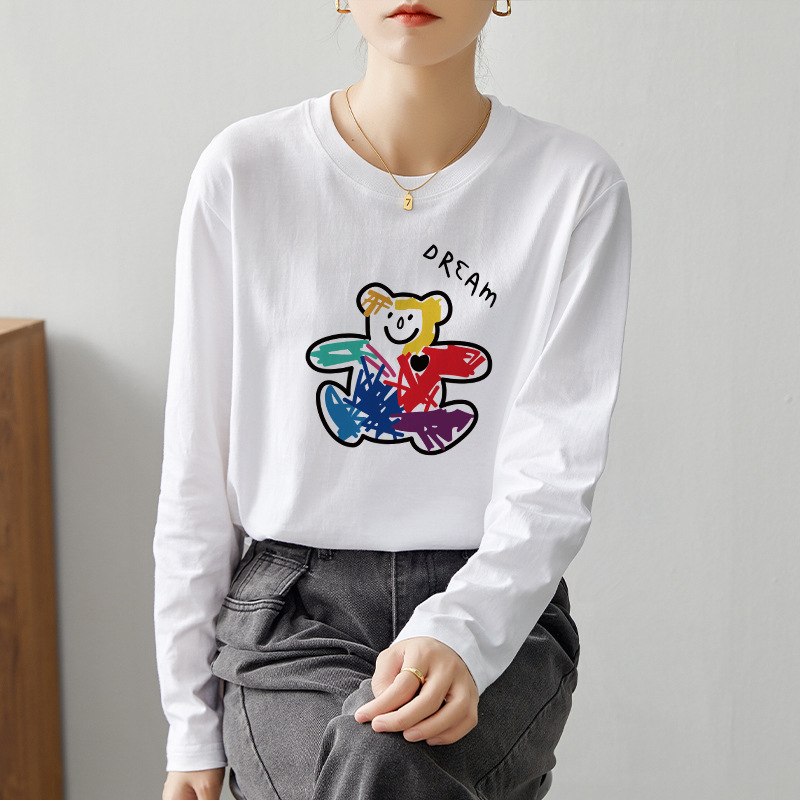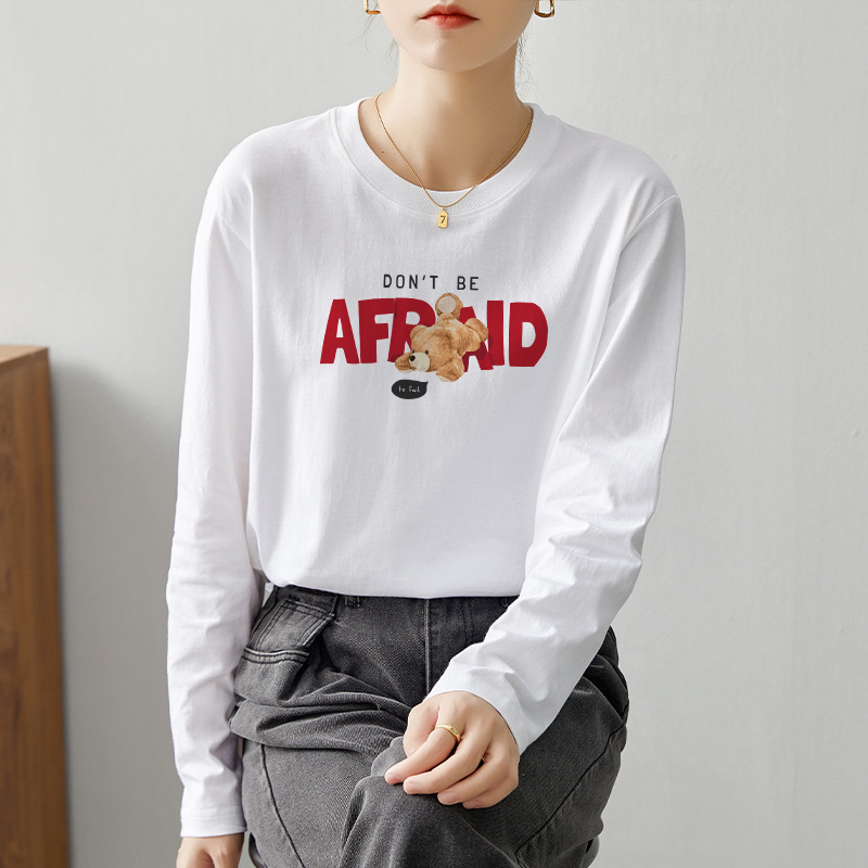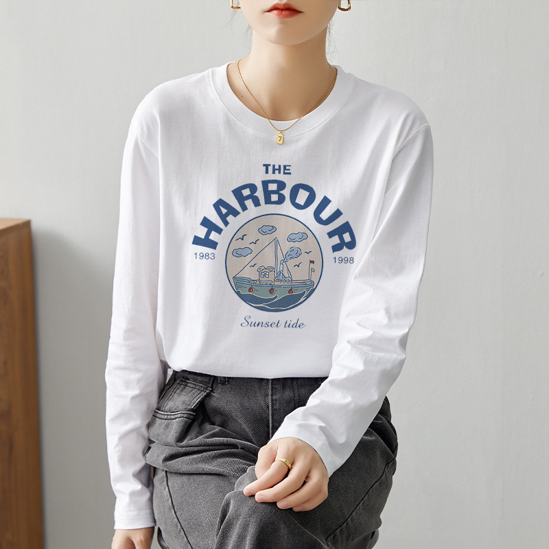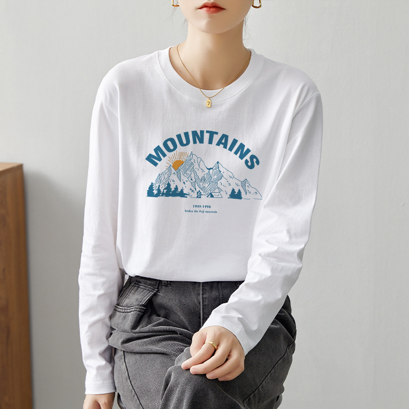 【59元/2件】全棉长袖t恤 新疆好棉休闲百搭印花T恤打底衫上衣