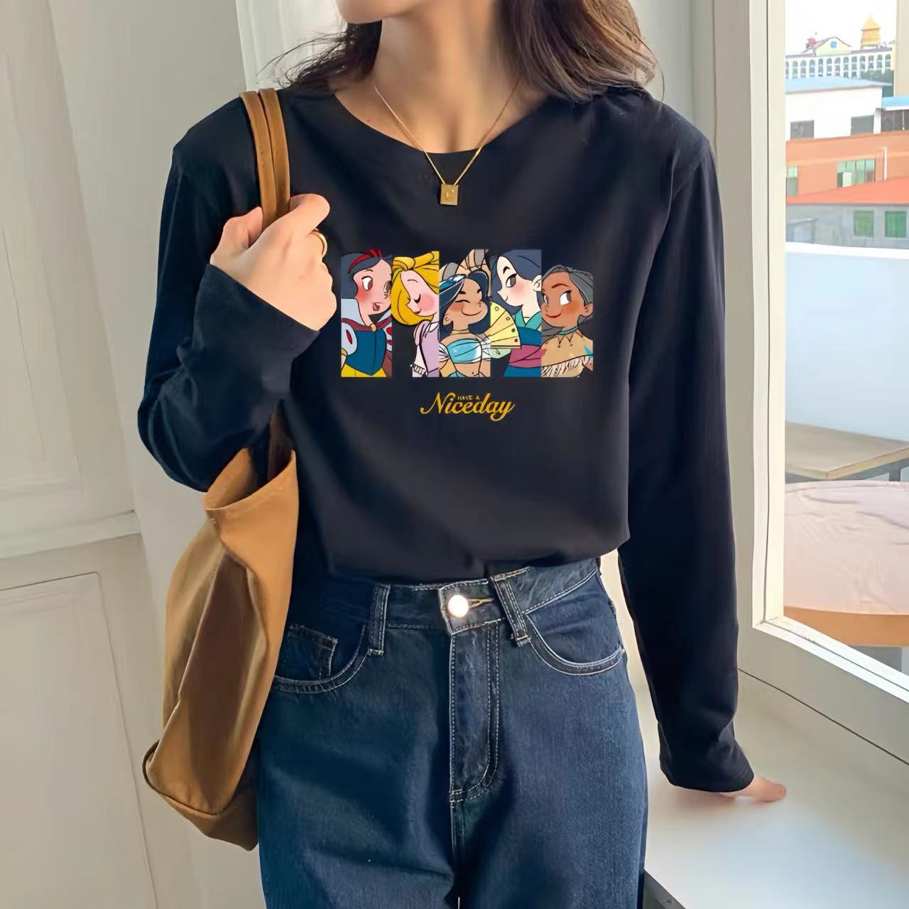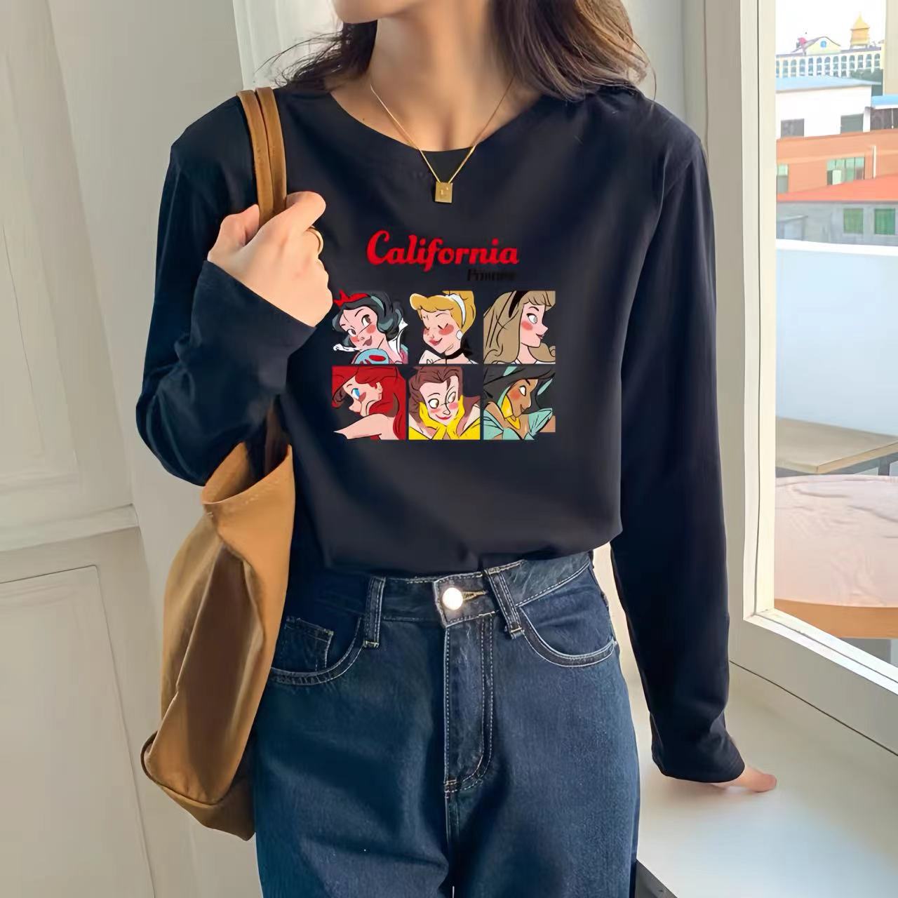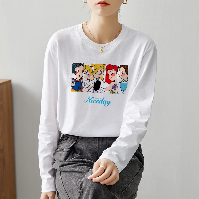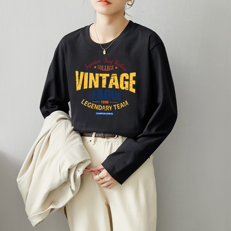 【59元/2件】全棉长袖t恤 新疆好棉休闲百搭印花T恤打底衫上衣