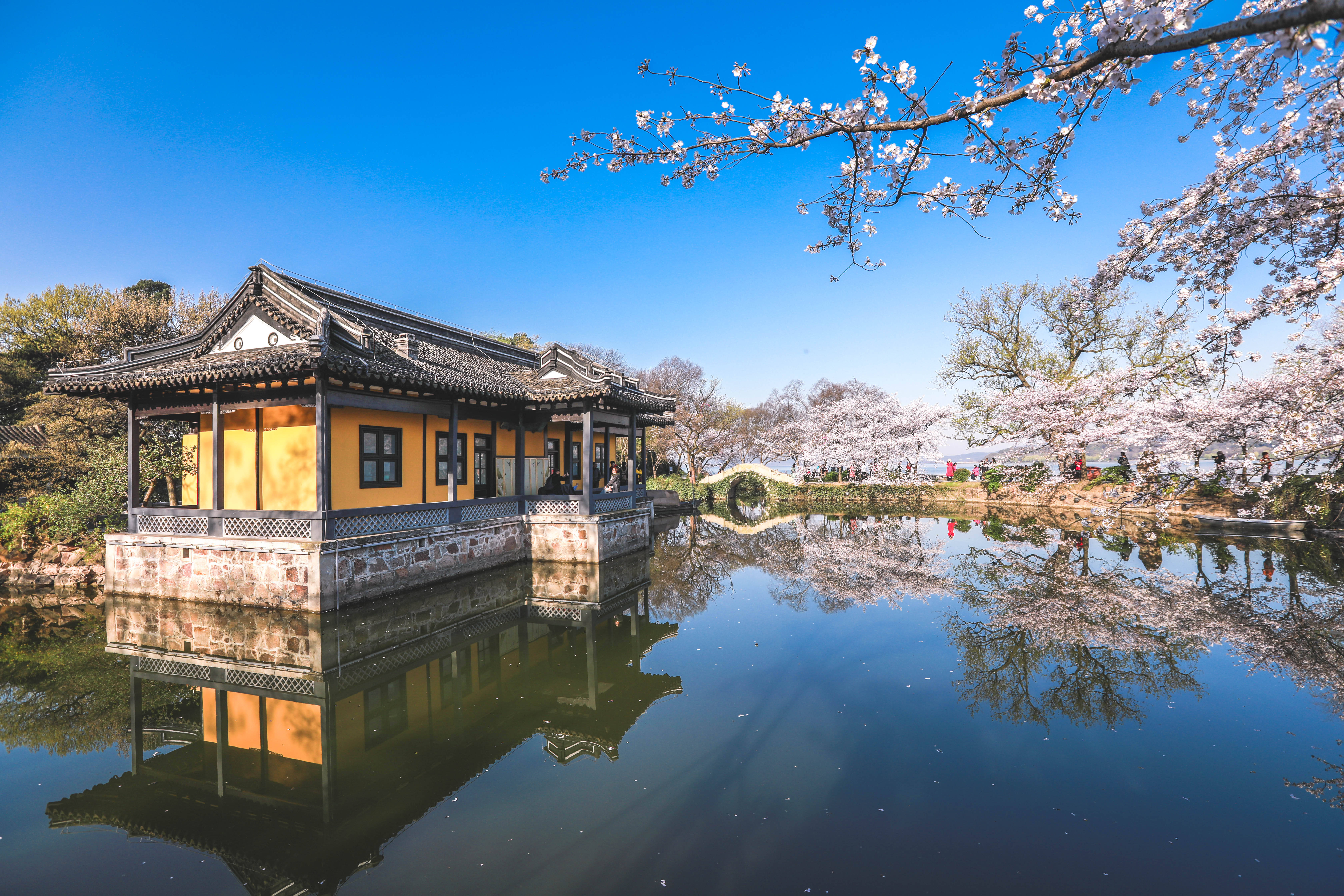 到达5A景区“太湖第一名胜”——【鼋头渚】,鼋头渚位于无锡市区西南,这里三面环水,既有山长水阔、帆影点点的自然美景,又有小桥流水的山乡田园风光,是太湖山水景色大美之处。乘游船游太湖(已含),登太湖仙岛体验“蓬莱仙境”飘飘欲仙之感,太湖仙岛是鼋头渚必游之处,岛上有道教仙宫和道、佛两教石窟塑像。登临半岛上的鹿顶山可环顾湖滨翠色,天气晴好时能看到湖面上的翩翩舟影,感受到太湖的浩淼之美。每年春季樱花齐放是这里的一大奇观,更有热闹的樱花节。鼋头渚还有诸多古迹和旧时的名流显贵所建的私家园林,比如包含了“太湖佳绝处”门楼和长春桥的横云山庄、无锡古老的寺院广福寺等。而细细品味随处可见的历代名人雅士游踪、石刻、书画等遗存,也是游鼋头渚的一大乐趣。另外,若有时间还可去万浪桥看看,这里是观赏太湖落日的好地方。鼋头风光,山清水秀,天然浑成,为太湖风景的精华所在,游客所至,无不如痴似醉。