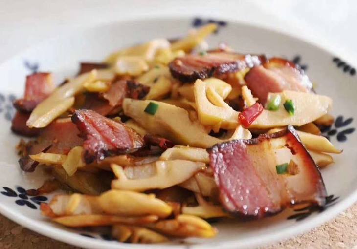 除了竹笋炒肉、烧汤、还可以将笋片和新鲜的五花肉或鸡烧一下,放油锅里,放点葱花翻炒,再加肉加菜,最后只需要放点盐就可以出锅啦!