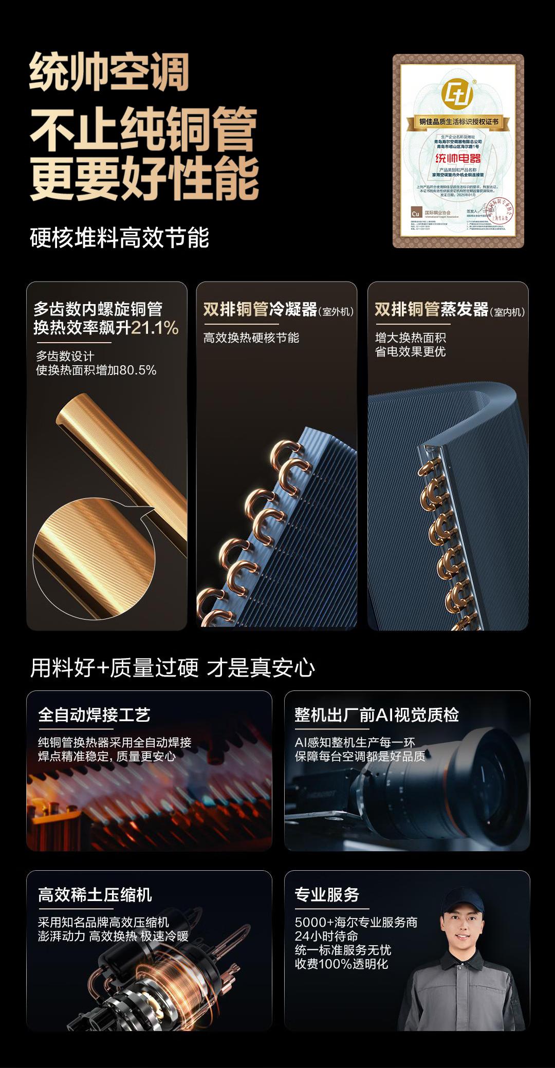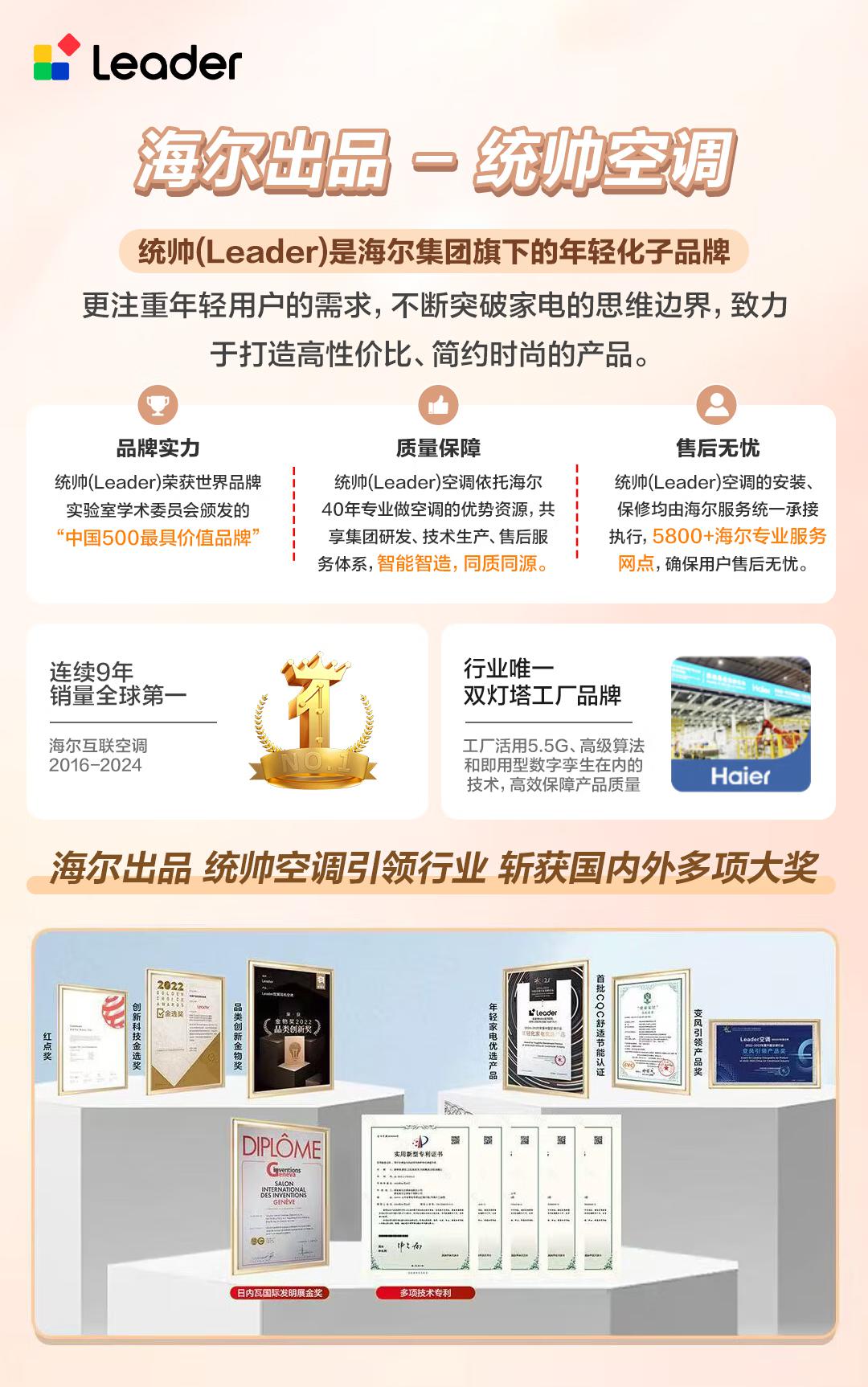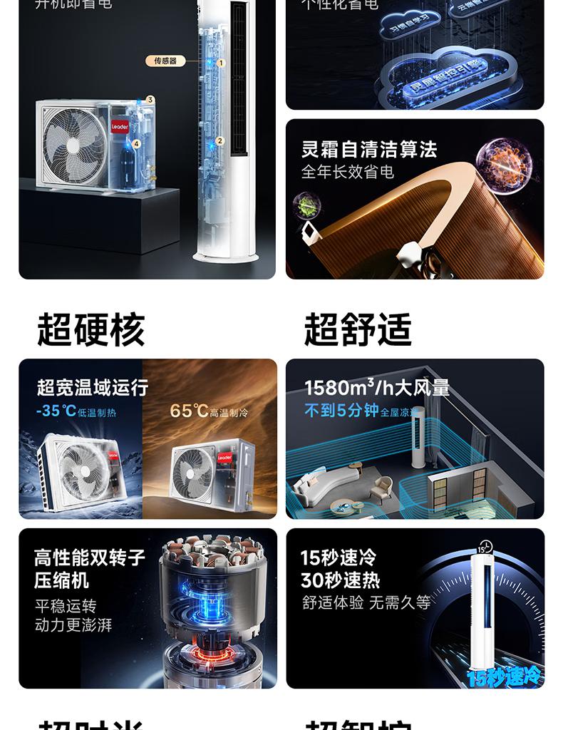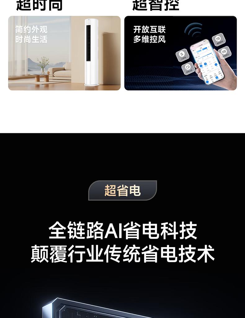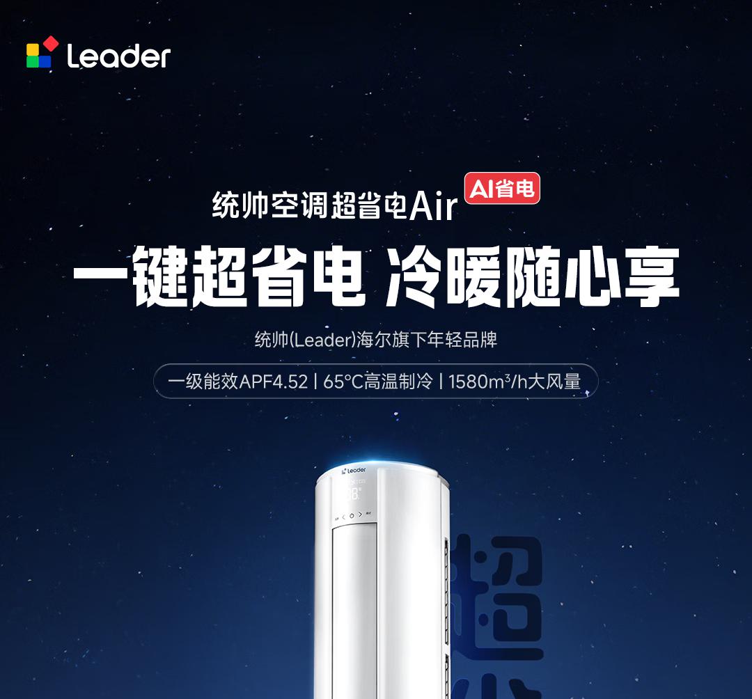 海尔(Haier)智家出品 统帅空调超省电3匹柜机双排铜管新一级能效 急速冷暖 京东家用客厅立式空调 以旧换新 超省电 Air【新品上市】 3匹 双排大风量72LTA1