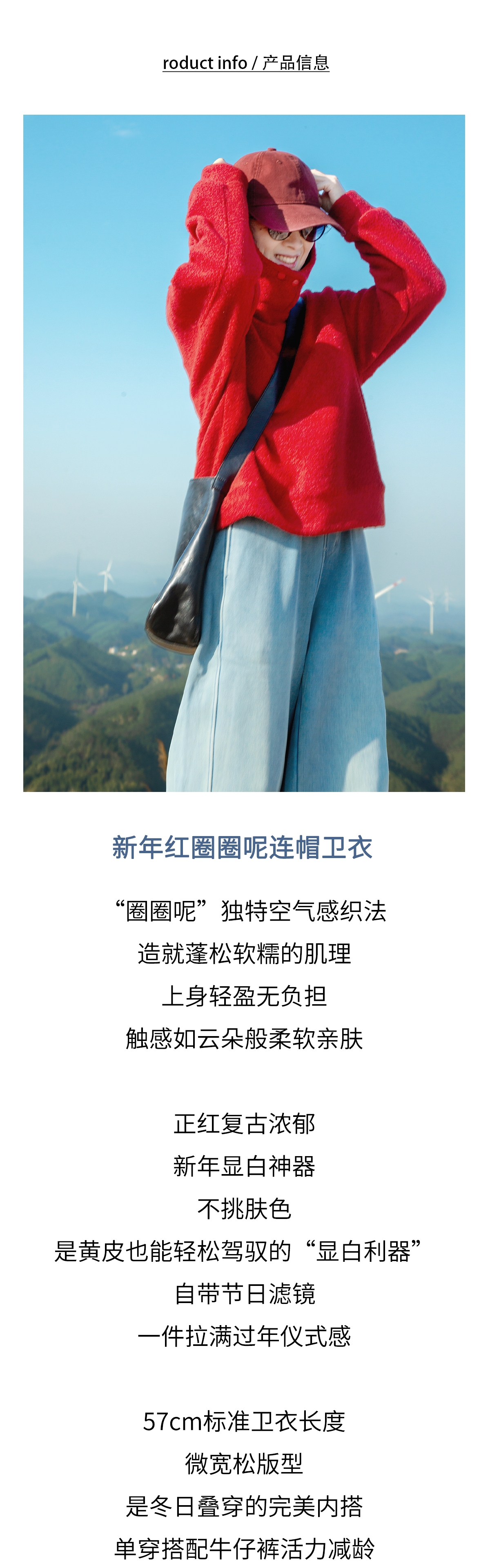 新年红圈圈呢连帽卫衣