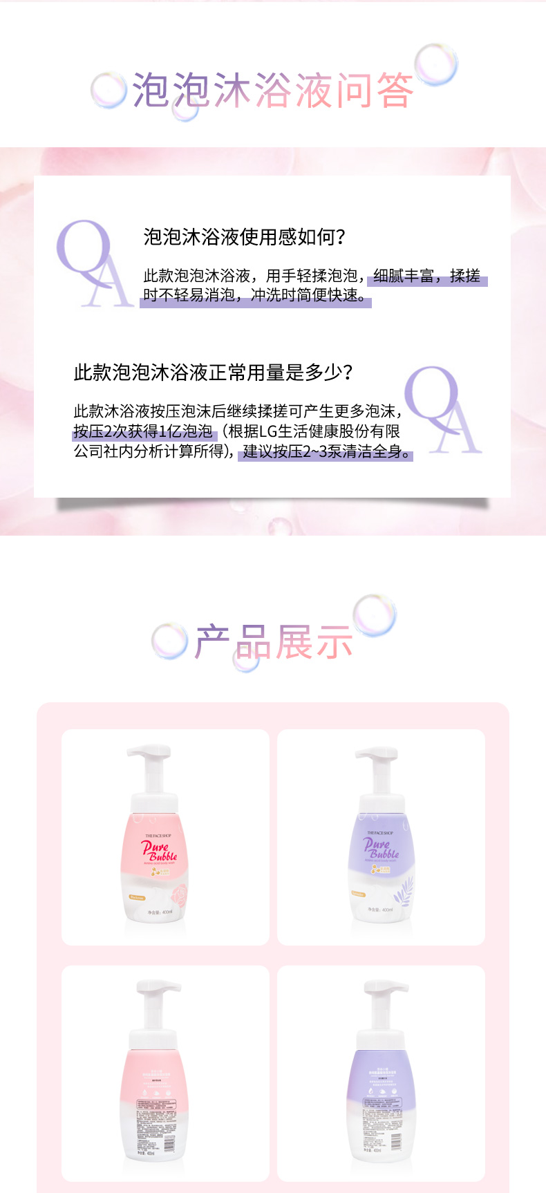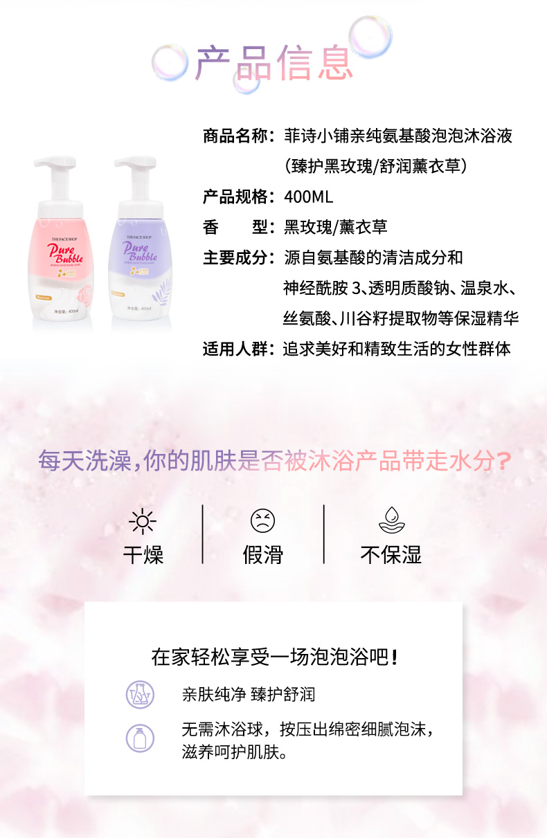 XDR 菲诗小铺氨基酸泡泡沐浴露 黑玫瑰 薰衣草400ml