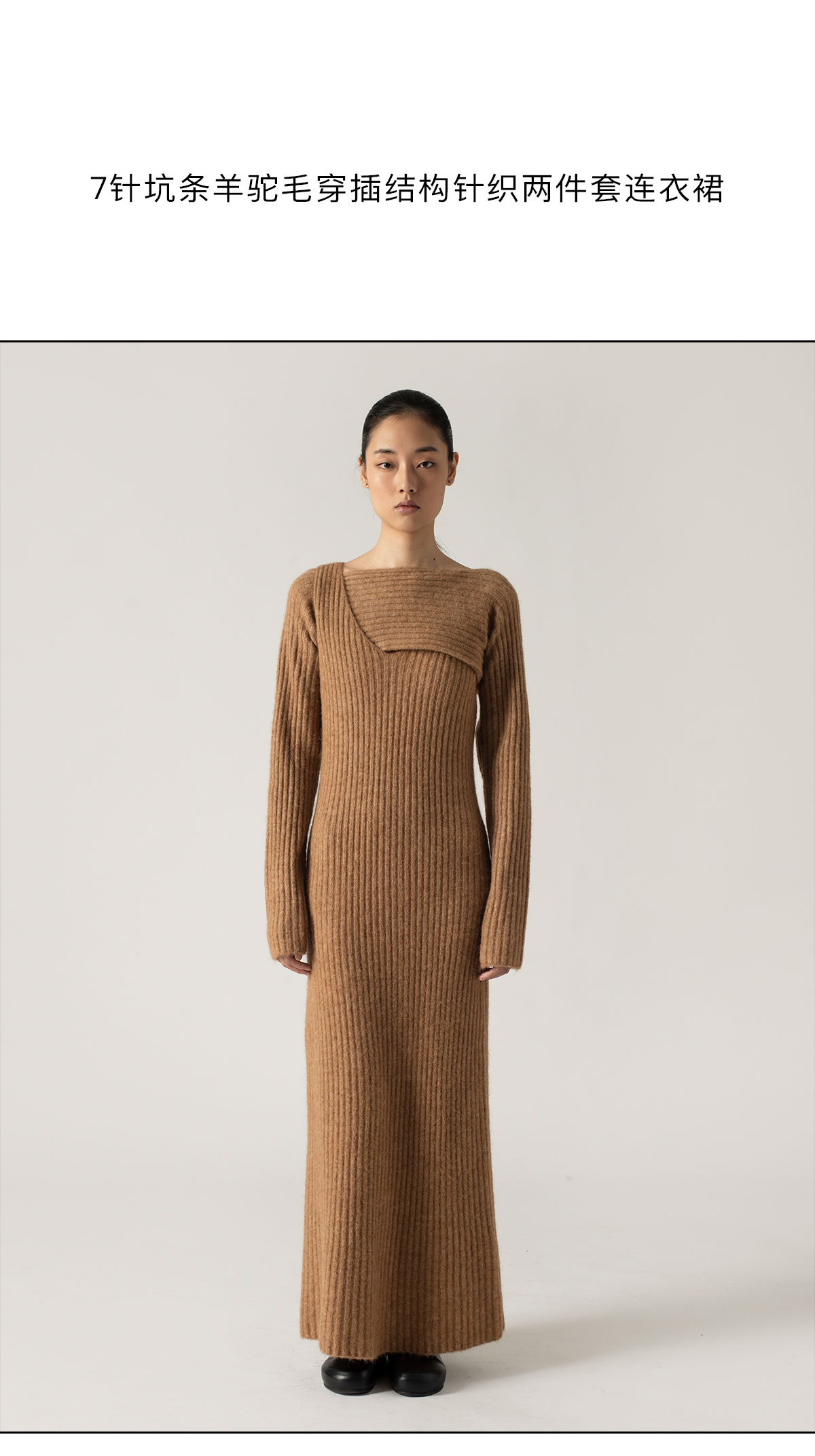 322工房设计感羊驼毛穿插针织两件套连衣裙2022秋冬新款显瘦套装