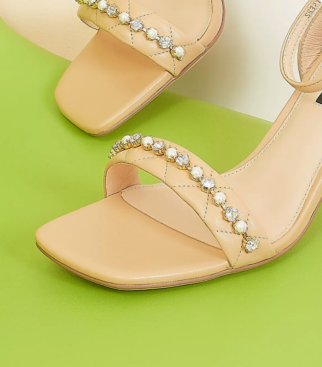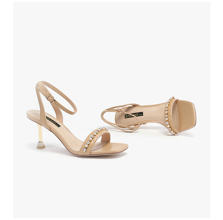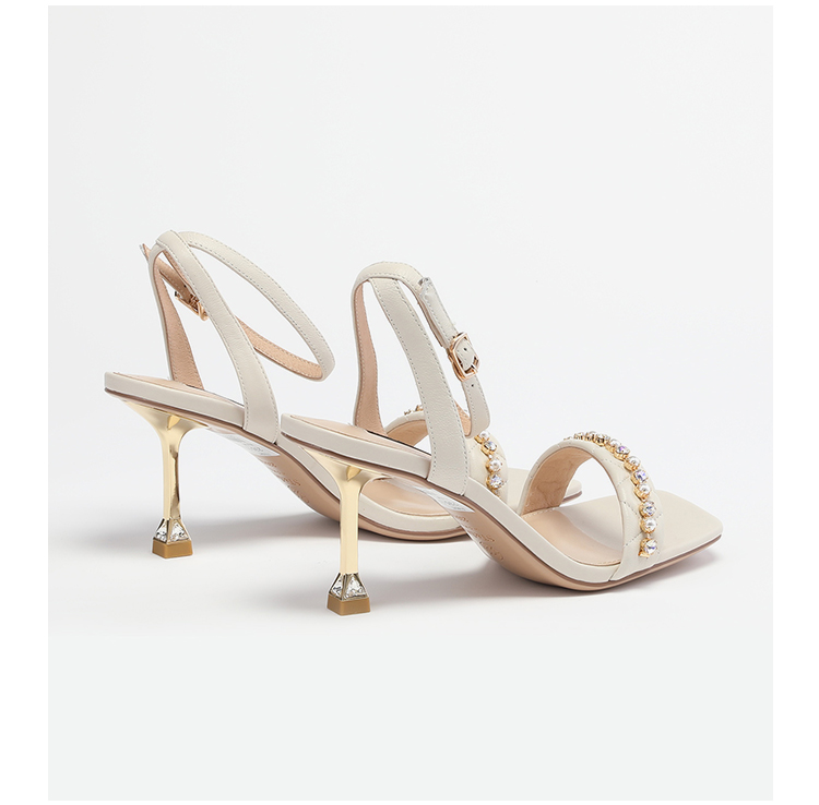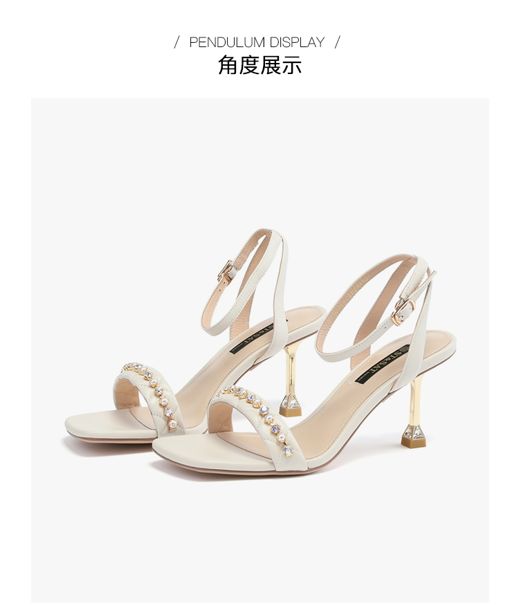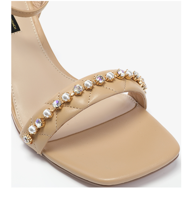 星期六方头珍珠钻饰一字带高跟凉鞋SS32115596