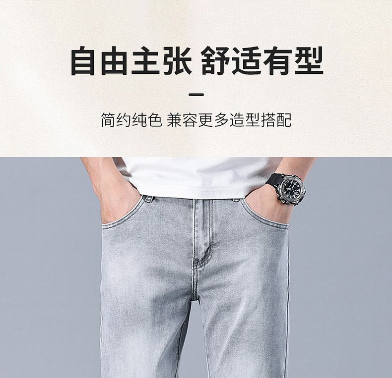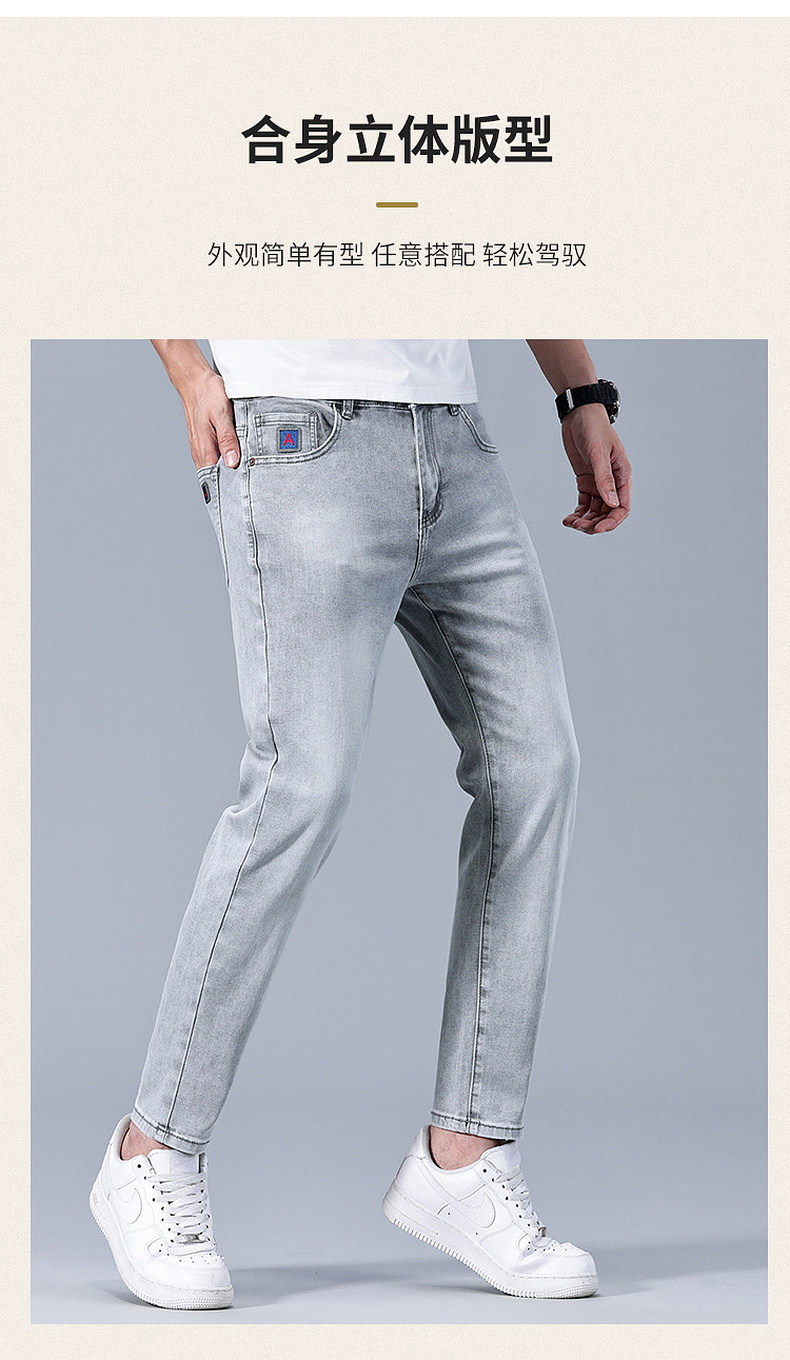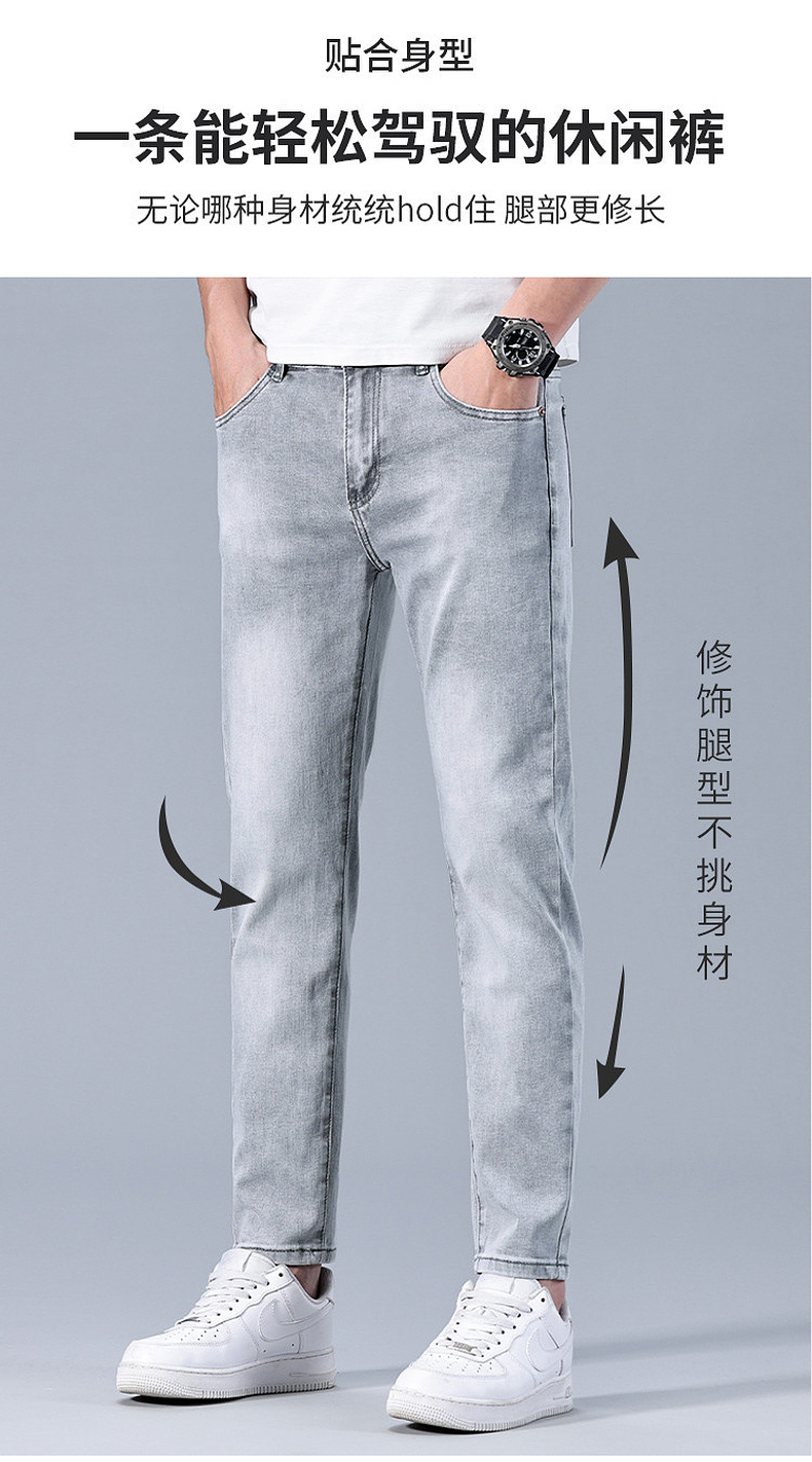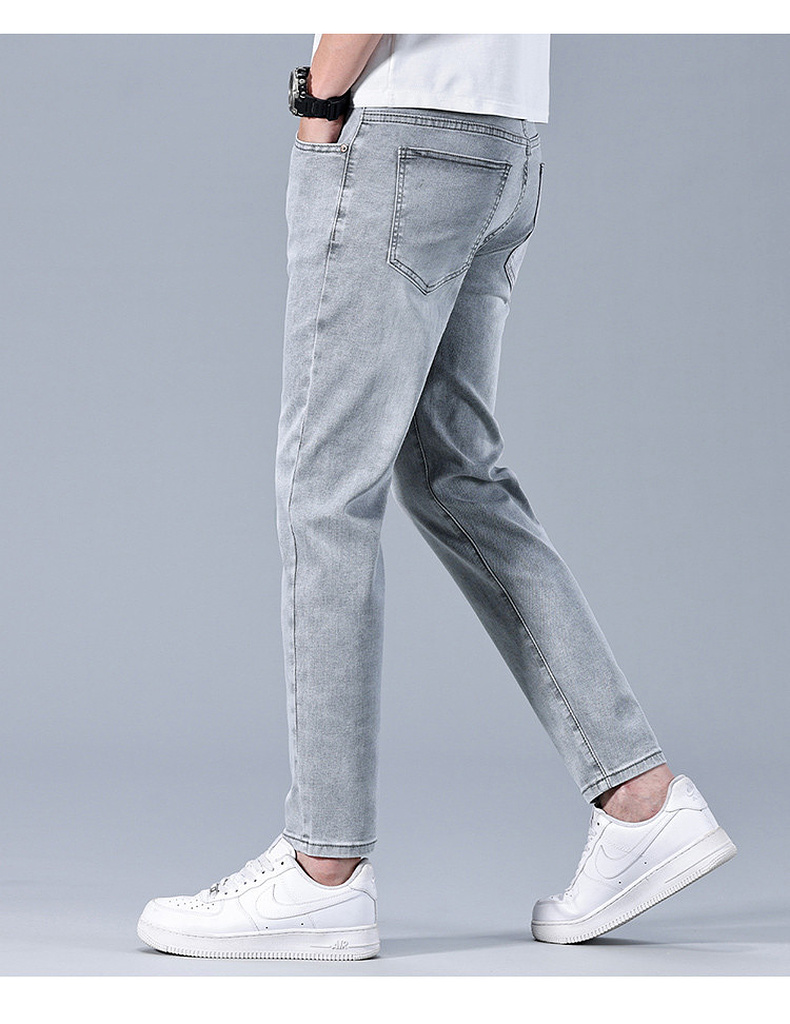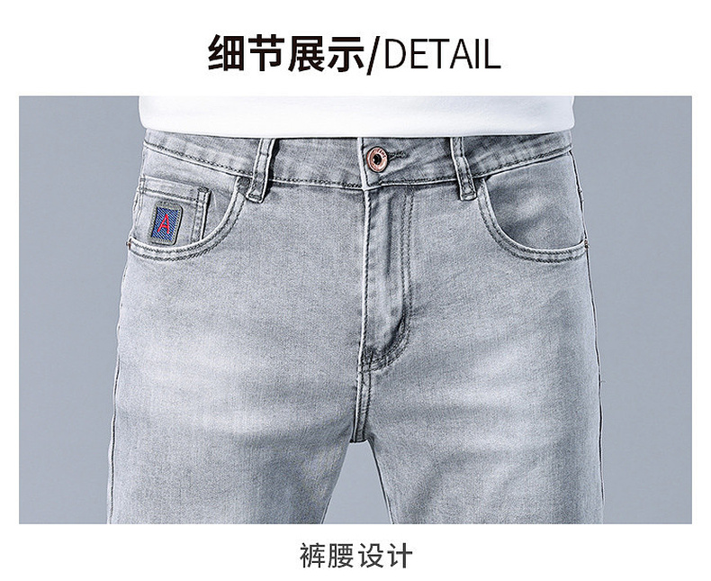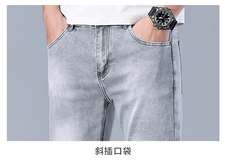圣得西男士牛仔裤2025年夏季新款弹力棉感亲肤灰色百搭休闲长裤子