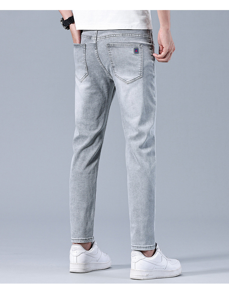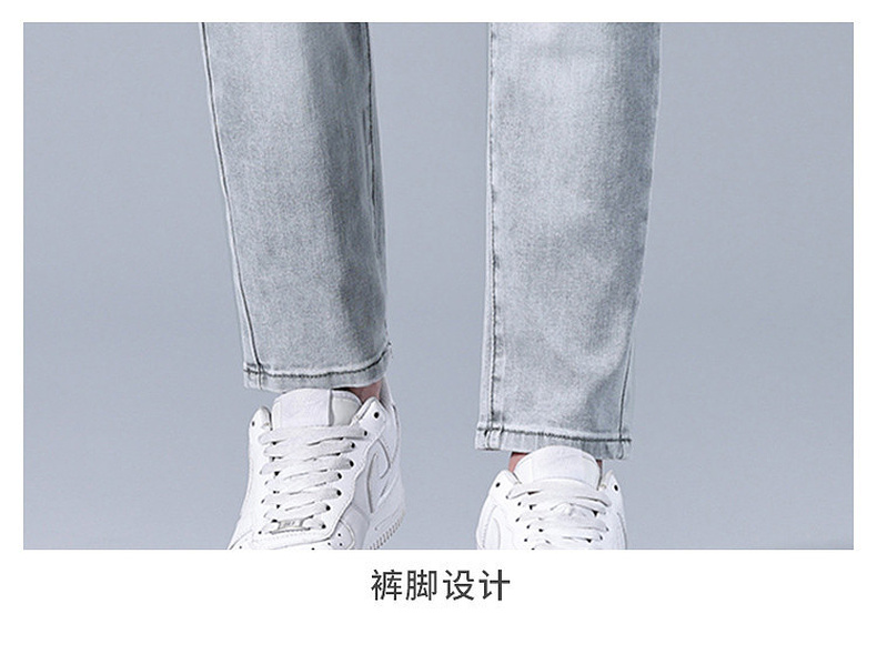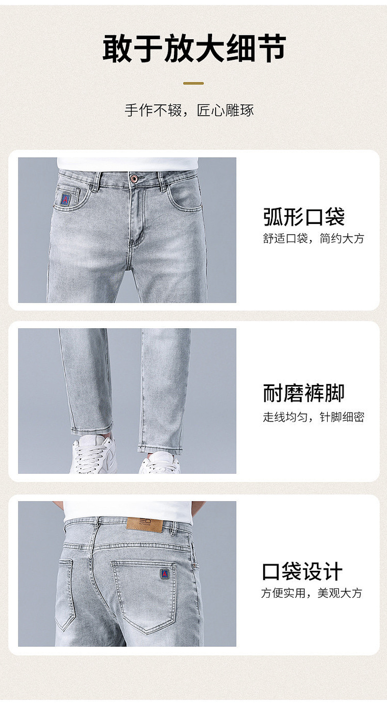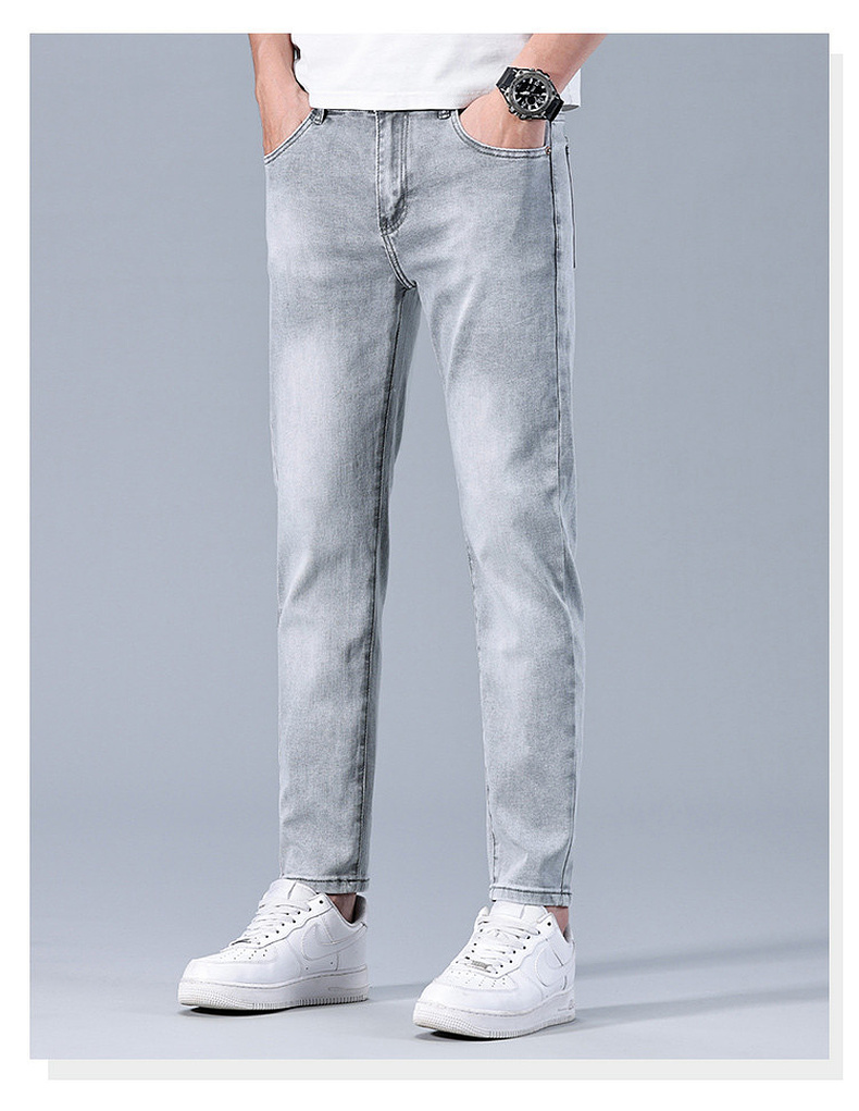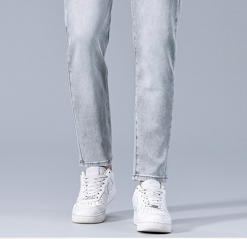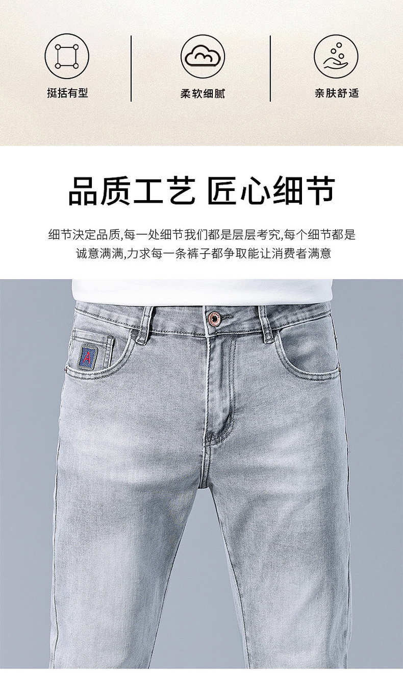 圣得西男士牛仔裤2025年夏季新款弹力棉感亲肤灰色百搭休闲长裤子