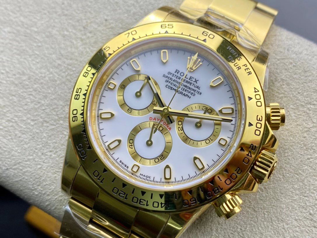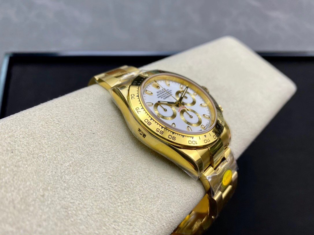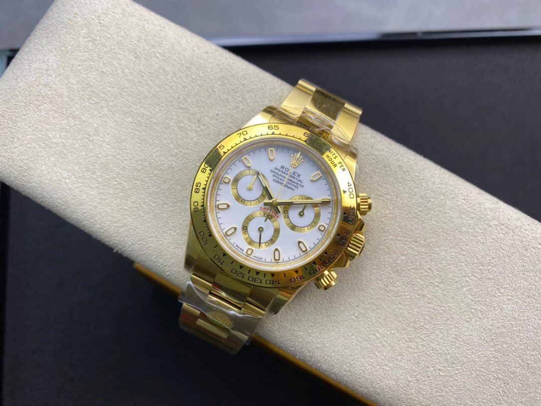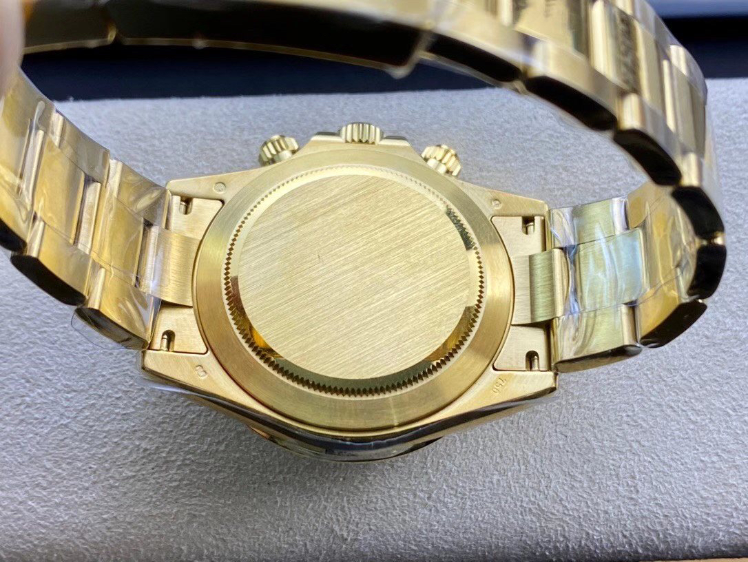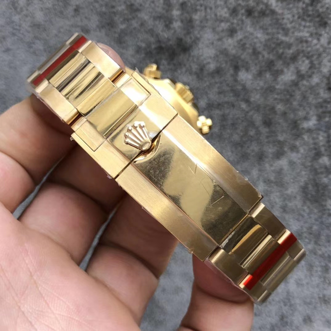 【N Factory】重磅巨献——秒天神器之劳.力士Rolex宇宙计型迪通拿全金系列"壕"无人性 C位登场!【机芯】拆解原装CAL.4130机芯研发。1.实现原版4130机芯的强大计时功能。2.两者结构达到95%的吻合度,摆轮的位置同步。3.达到厚度与原装一致,稳定如斯,几乎没有返修。【细节】904L精钢采用2N18厚金电镀,1.颜色更加醇厚,深沉。色彩艳丽,接近原版。2.镀层更加坚硬,耐磨抗糙,厚度接近包金。3.面镜采用高透蓝宝水晶玻璃。4.拥有六点位置的防伪隐形唛头。5.蚝式保险扣摺配5毫米易调链节伸系展统。一直被模仿,从未被超越,N厂出品,必属精品!