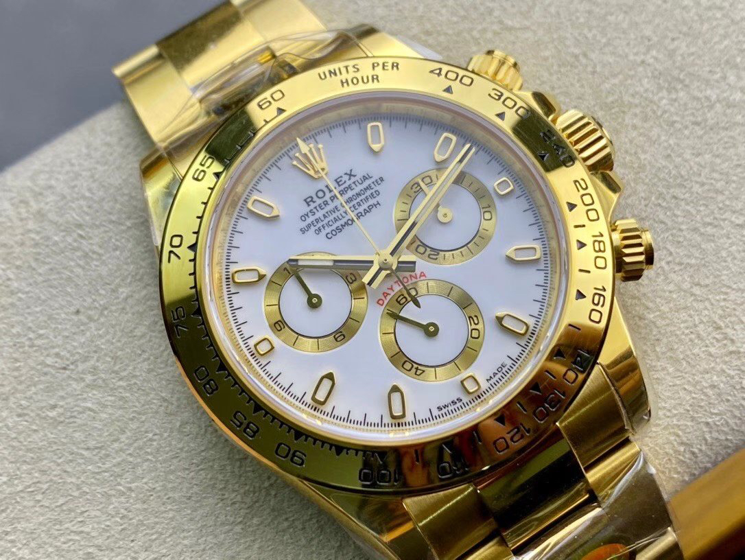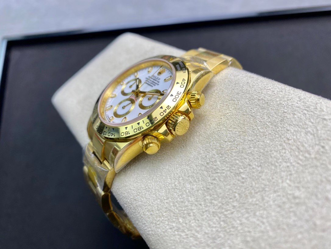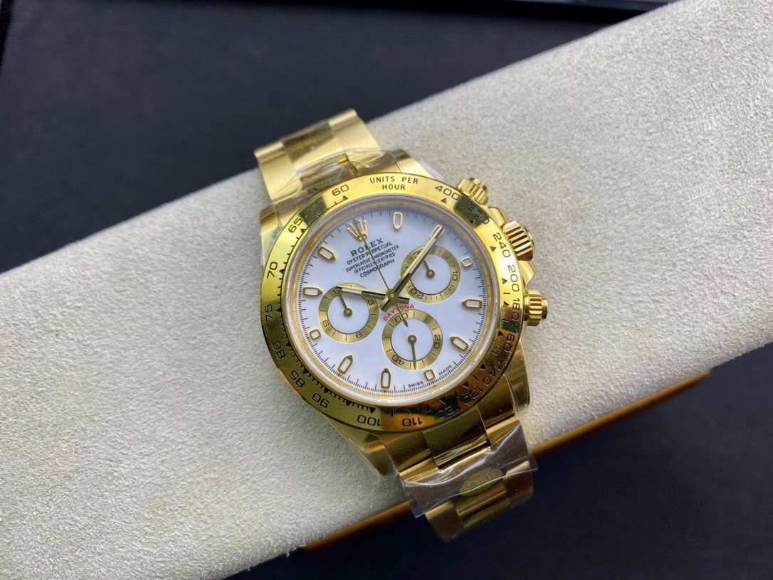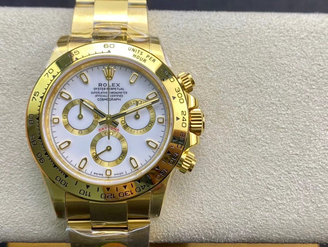 【N Factory】重磅巨献——秒天神器之劳.力士Rolex宇宙计型迪通拿全金系列"壕"无人性 C位登场!【机芯】拆解原装CAL.4130机芯研发。1.实现原版4130机芯的强大计时功能。2.两者结构达到95%的吻合度,摆轮的位置同步。3.达到厚度与原装一致,稳定如斯,几乎没有返修。【细节】904L精钢采用2N18厚金电镀,1.颜色更加醇厚,深沉。色彩艳丽,接近原版。2.镀层更加坚硬,耐磨抗糙,厚度接近包金。3.面镜采用高透蓝宝水晶玻璃。4.拥有六点位置的防伪隐形唛头。5.蚝式保险扣摺配5毫米易调链节伸系展统。一直被模仿,从未被超越,N厂出品,必属精品!