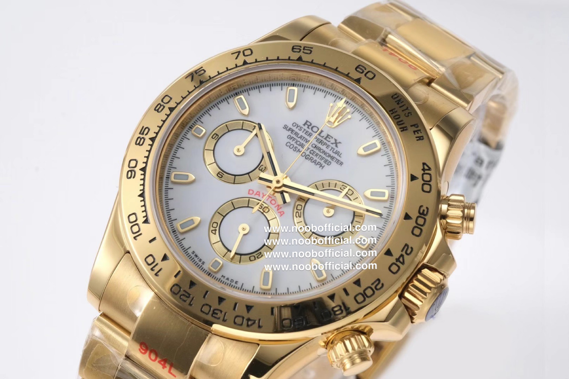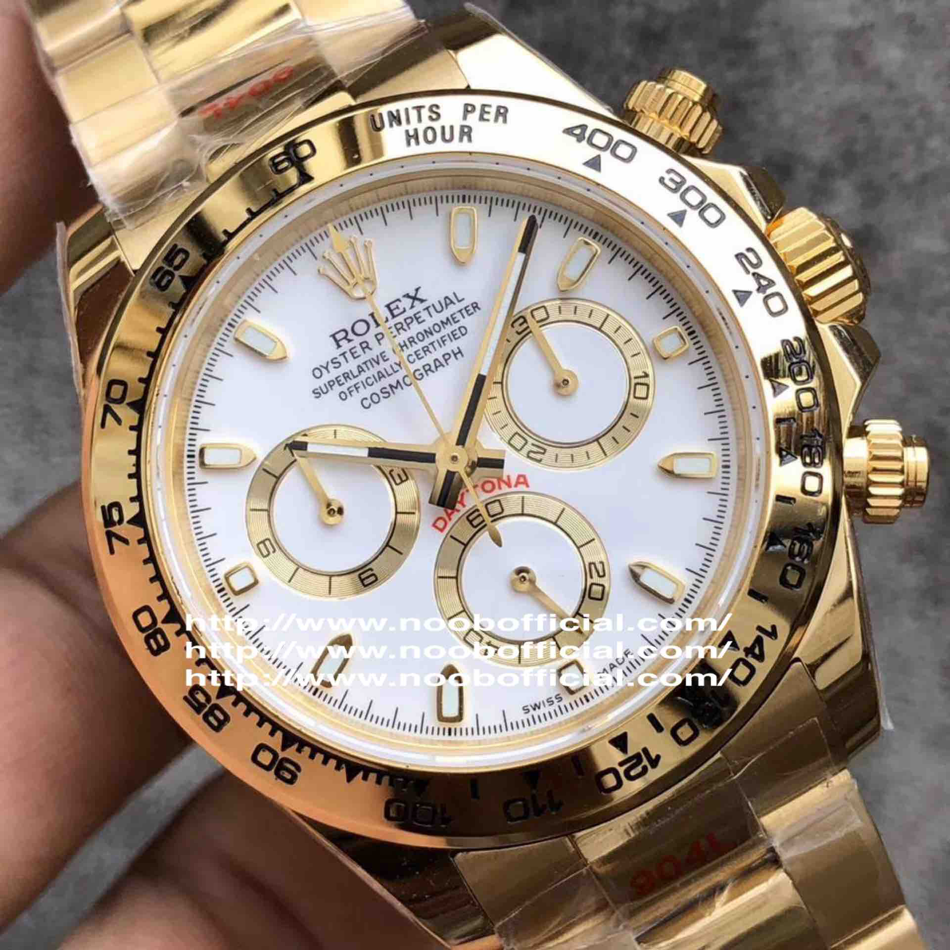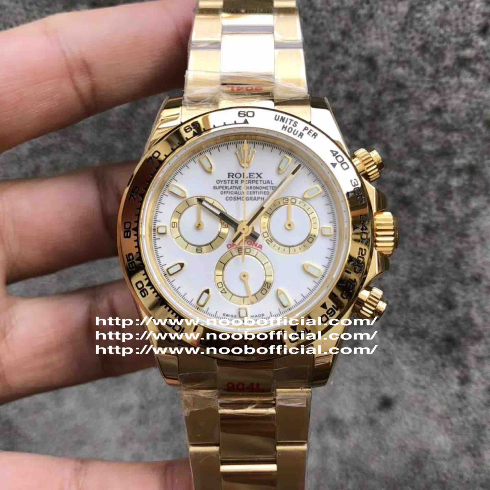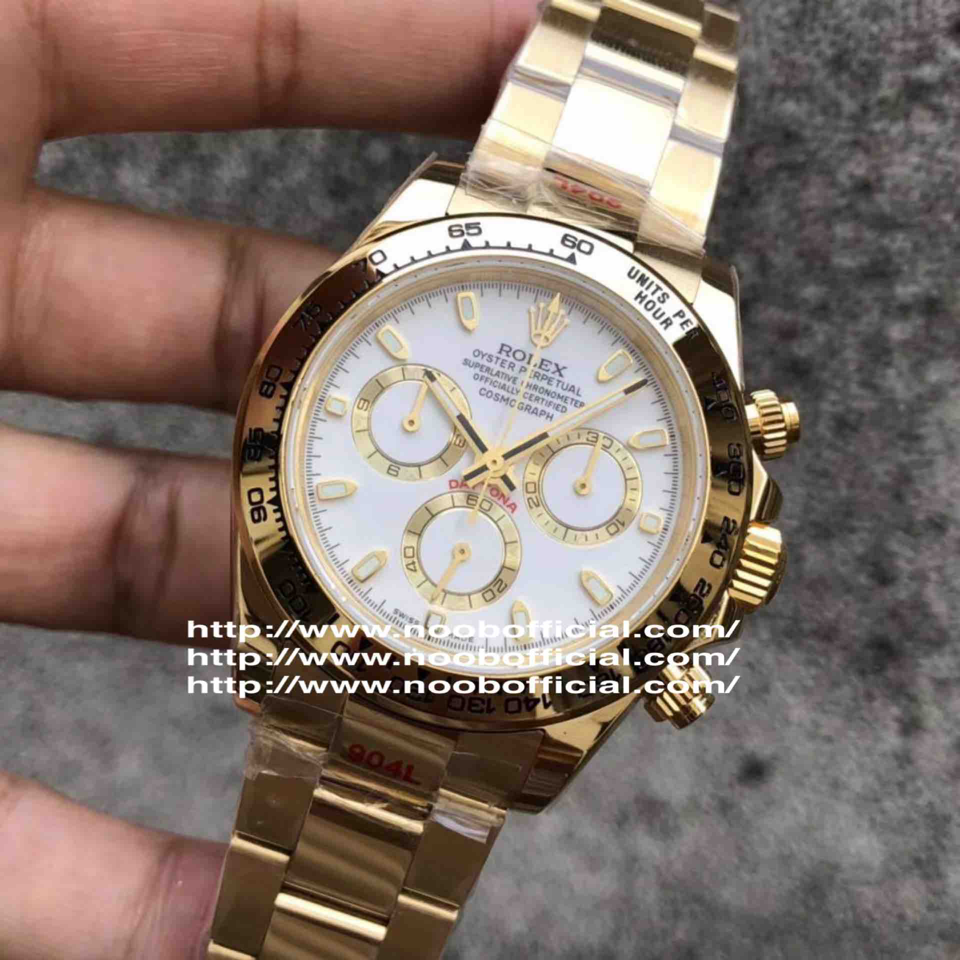 【N Factory】重磅巨献——秒天神器之劳.力士Rolex宇宙计型迪通拿全金系列"壕"无人性 C位登场!【机芯】拆解原装CAL.4130机芯研发。1.实现原版4130机芯的强大计时功能。2.两者结构达到95%的吻合度,摆轮的位置同步。3.达到厚度与原装一致,稳定如斯,几乎没有返修。【细节】904L精钢采用2N18厚金电镀,1.颜色更加醇厚,深沉。色彩艳丽,接近原版。2.镀层更加坚硬,耐磨抗糙,厚度接近包金。3.面镜采用高透蓝宝水晶玻璃。4.拥有六点位置的防伪隐形唛头。5.蚝式保险扣摺配5毫米易调链节伸系展统。一直被模仿,从未被超越,N厂出品,必属精品!