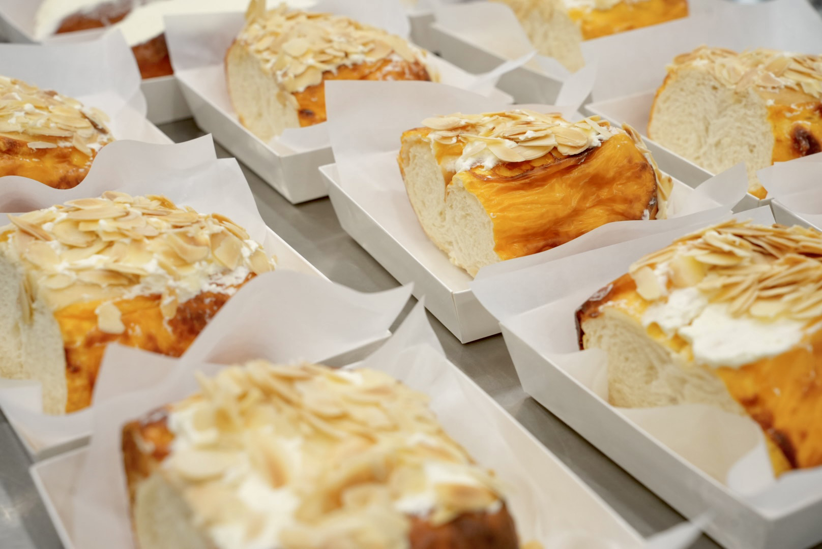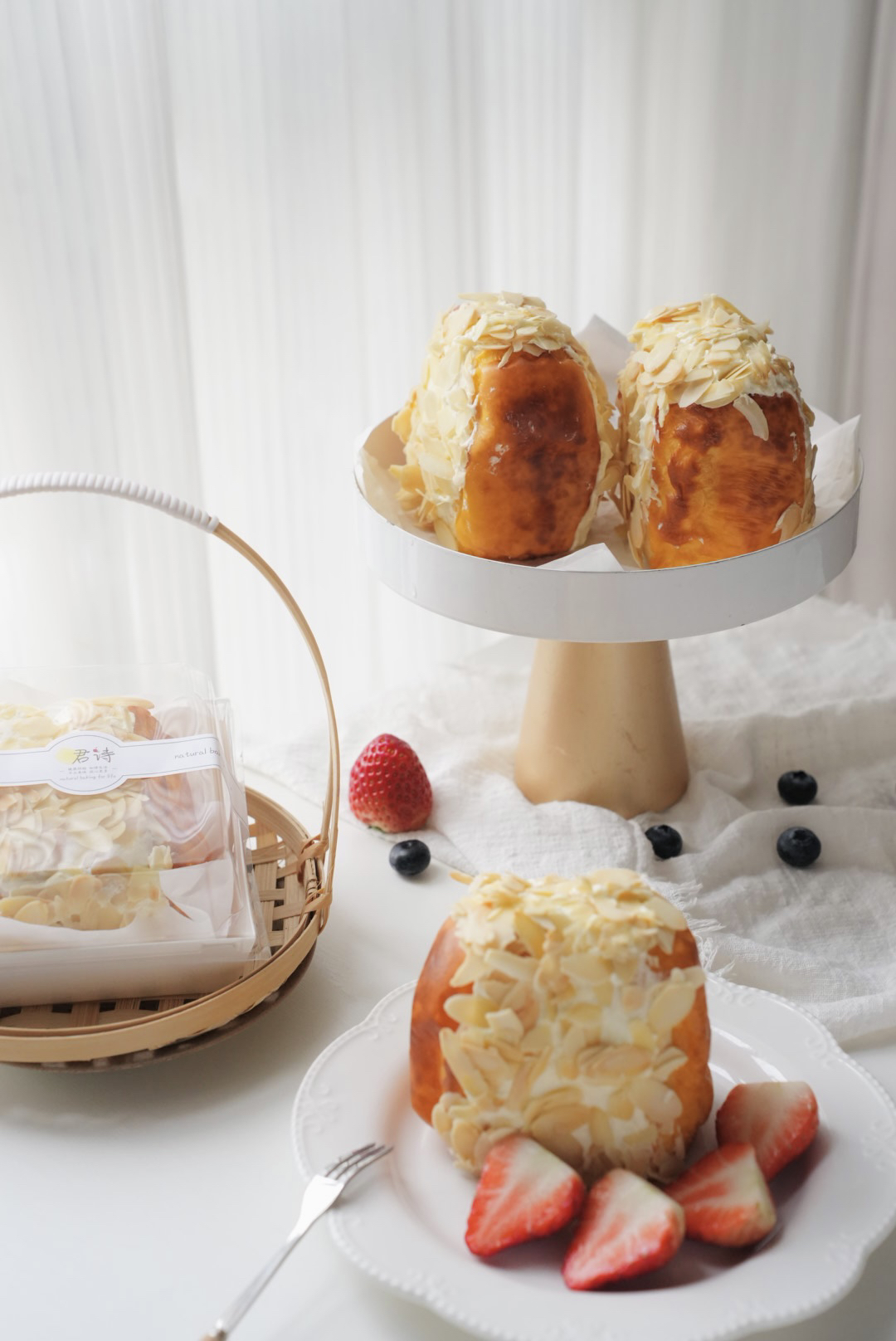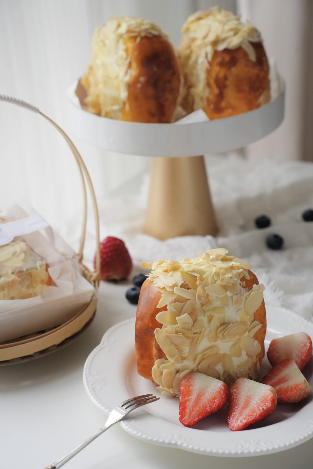 小麦粉,鸡蛋,牛奶,淡奶油,黄油,芝士片,杏仁片,糖,盐,酵母