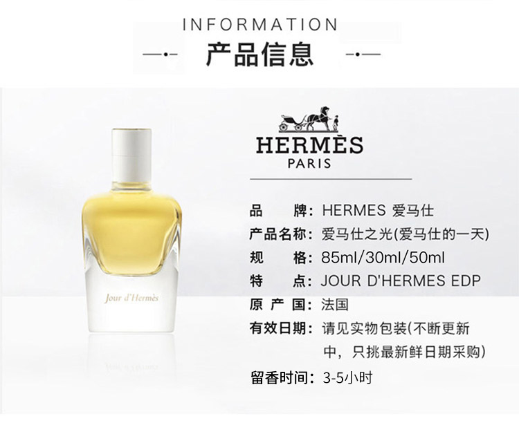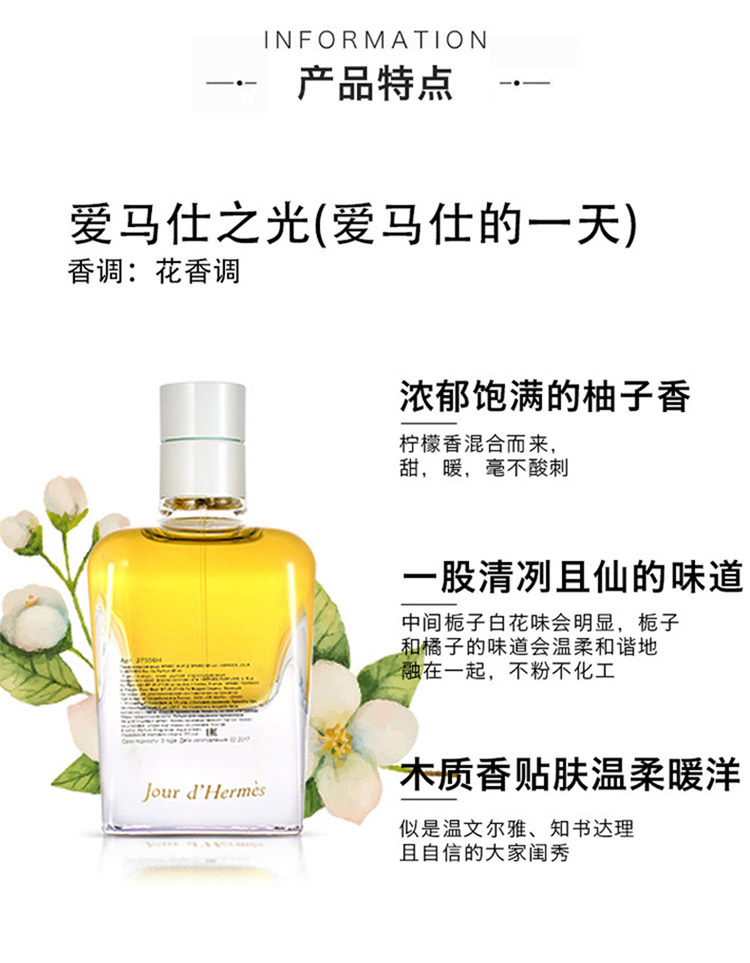 1LPY Hermes爱马仕的一天爱马仕之光女士浓香水30ML花香调