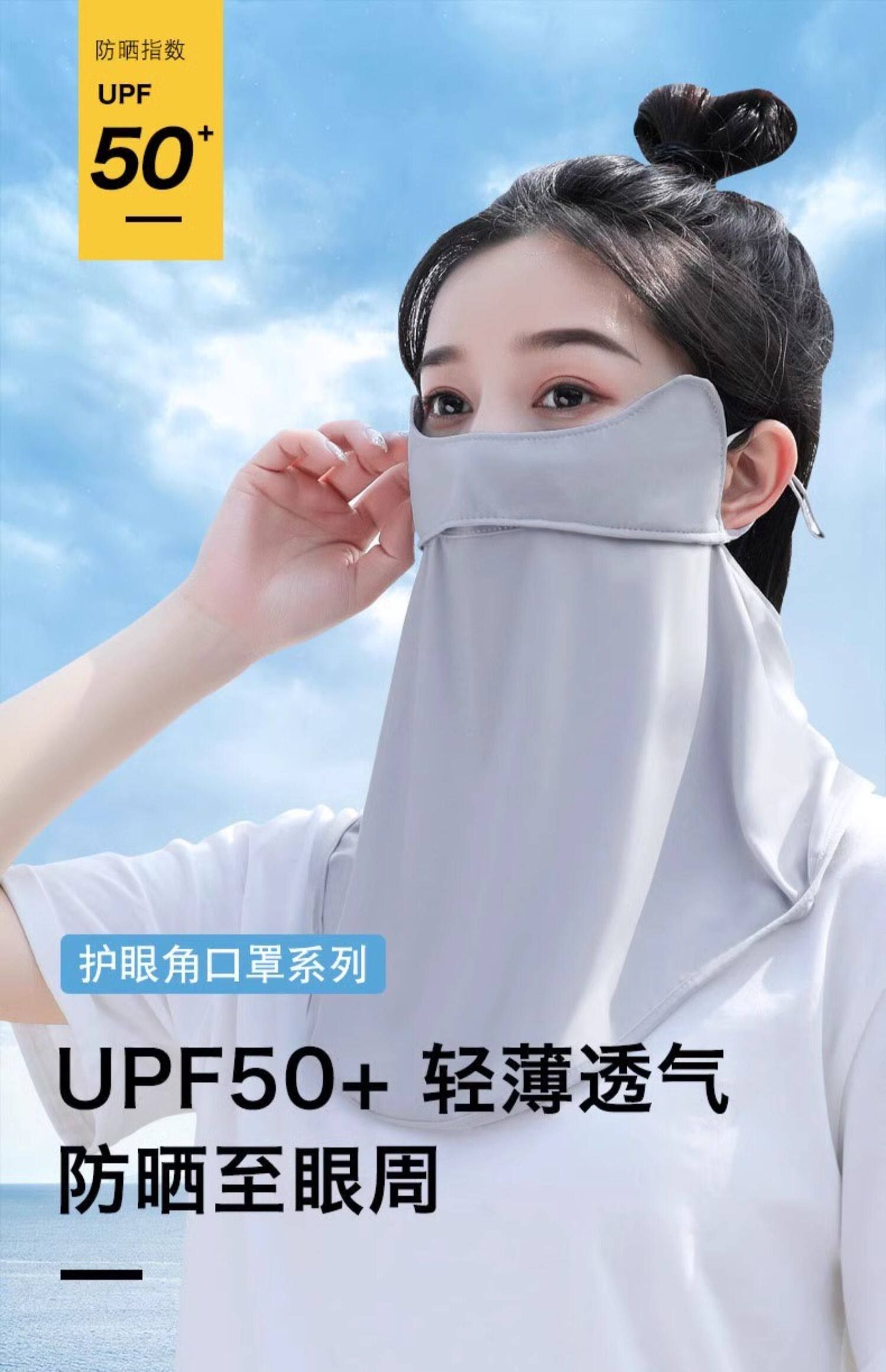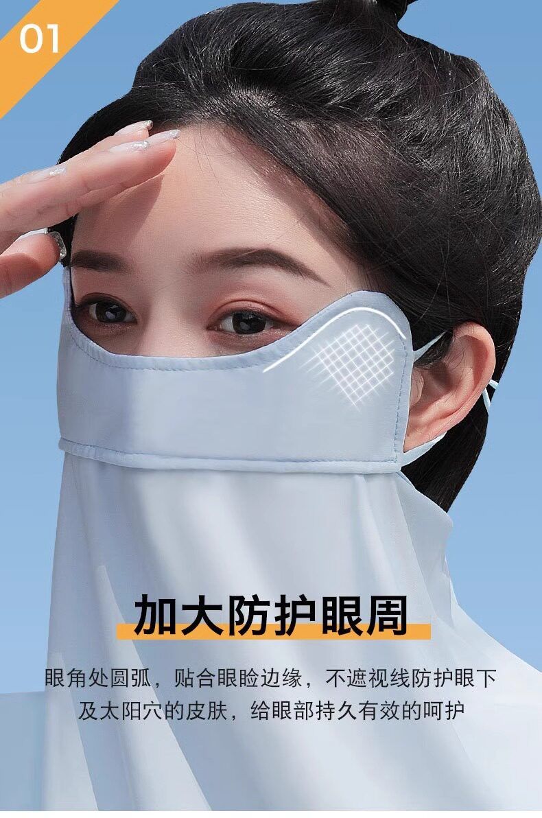 护眼一体冰丝防晒面罩透气加大骑行夏季角女防紫外线口罩帽檐全脸