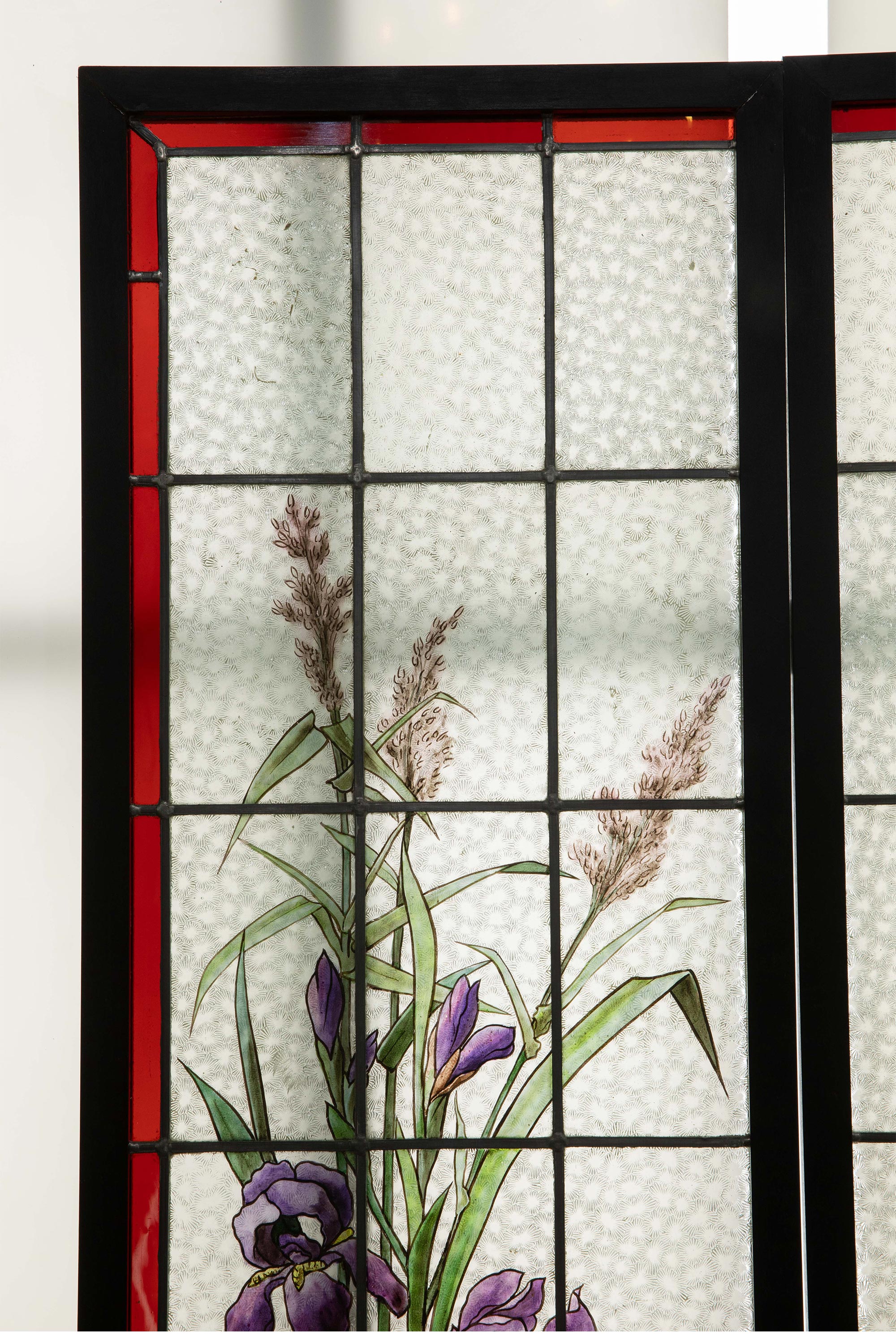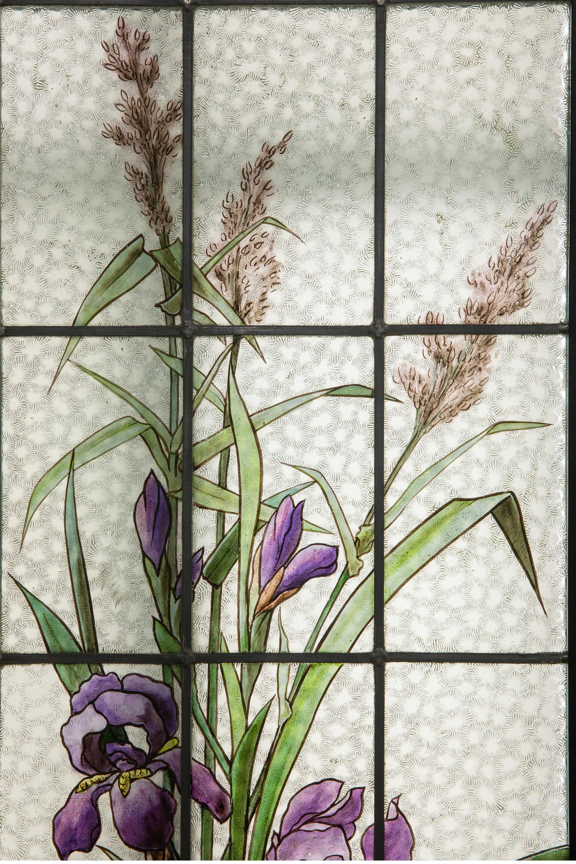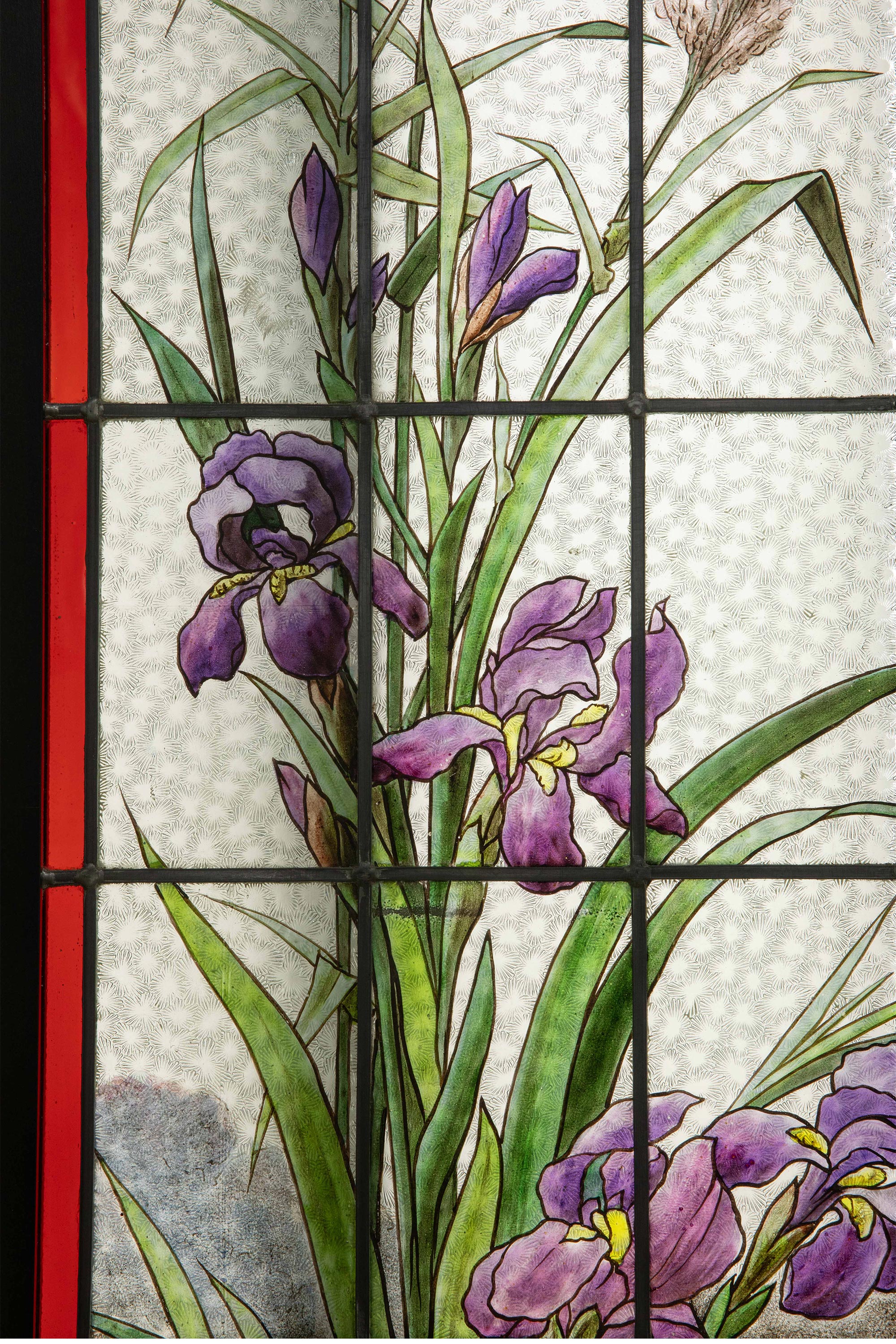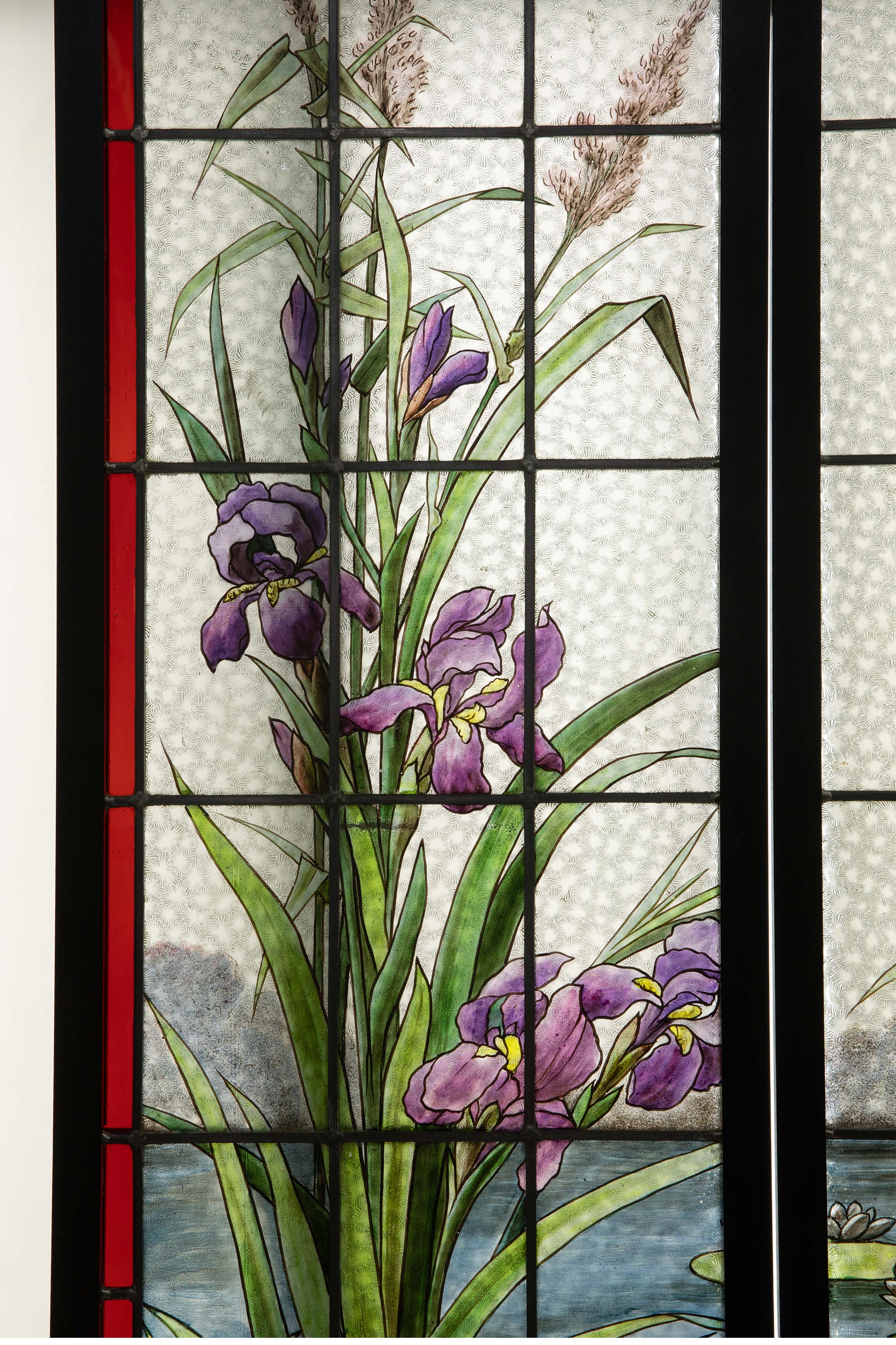 1910年代法国新艺术风格时期著名工坊Ch. Champigneulle签名出品水岸风光主题彩绘玻璃花窗一对