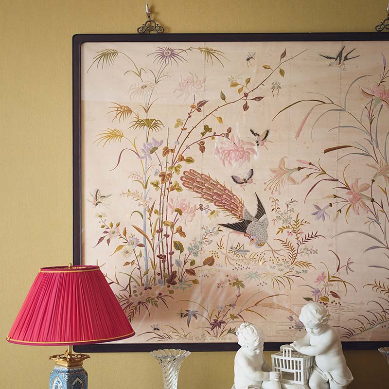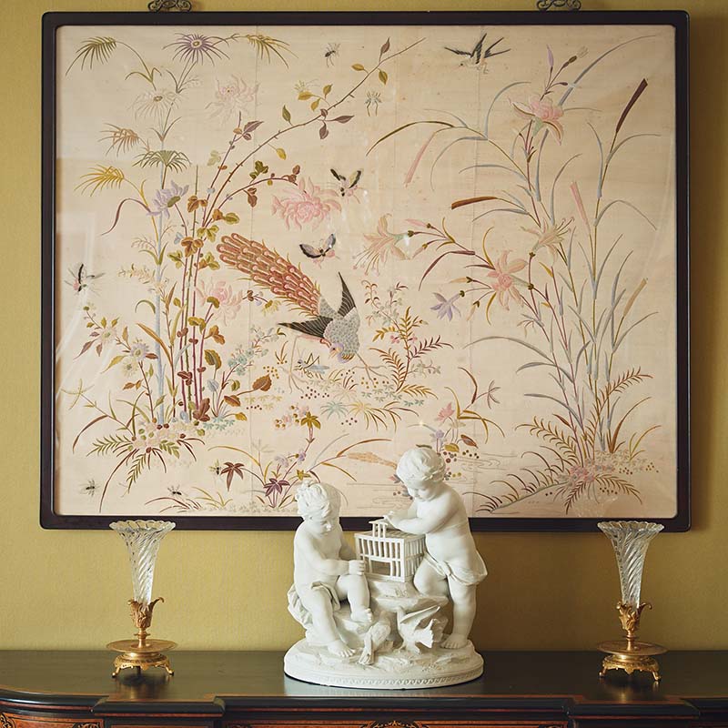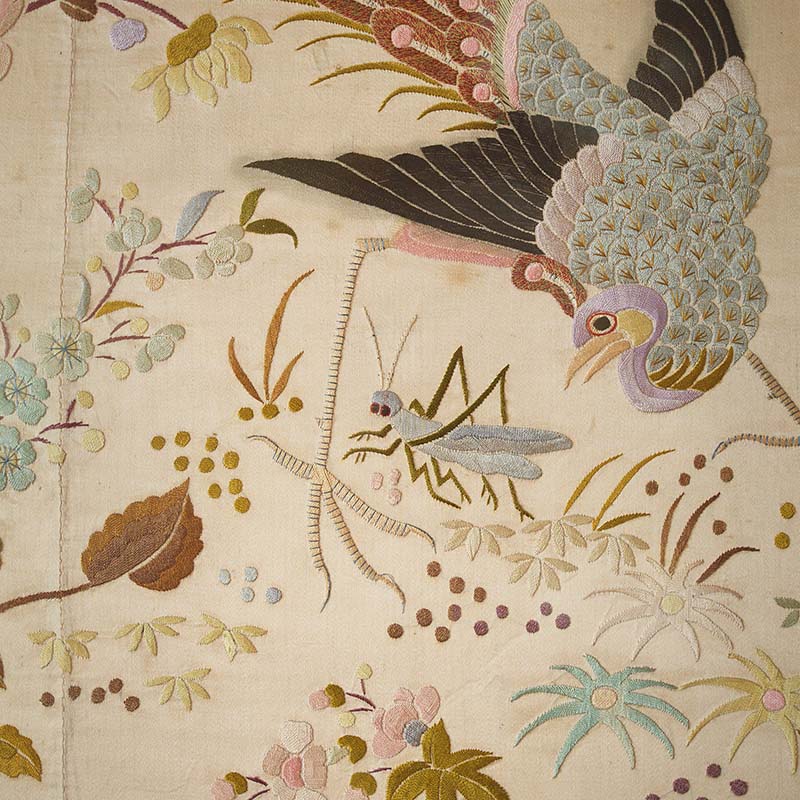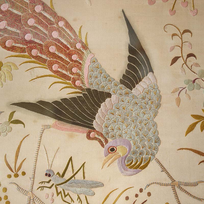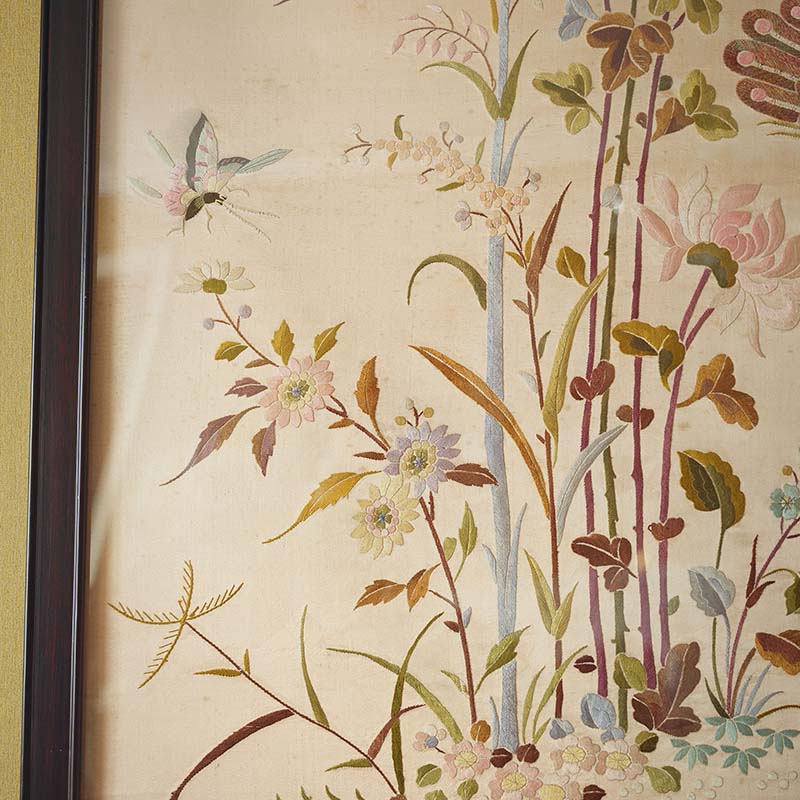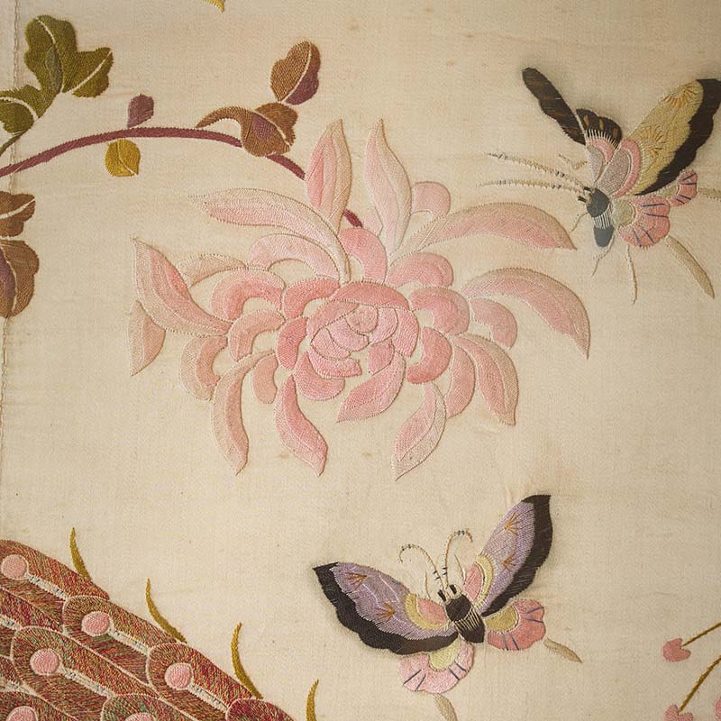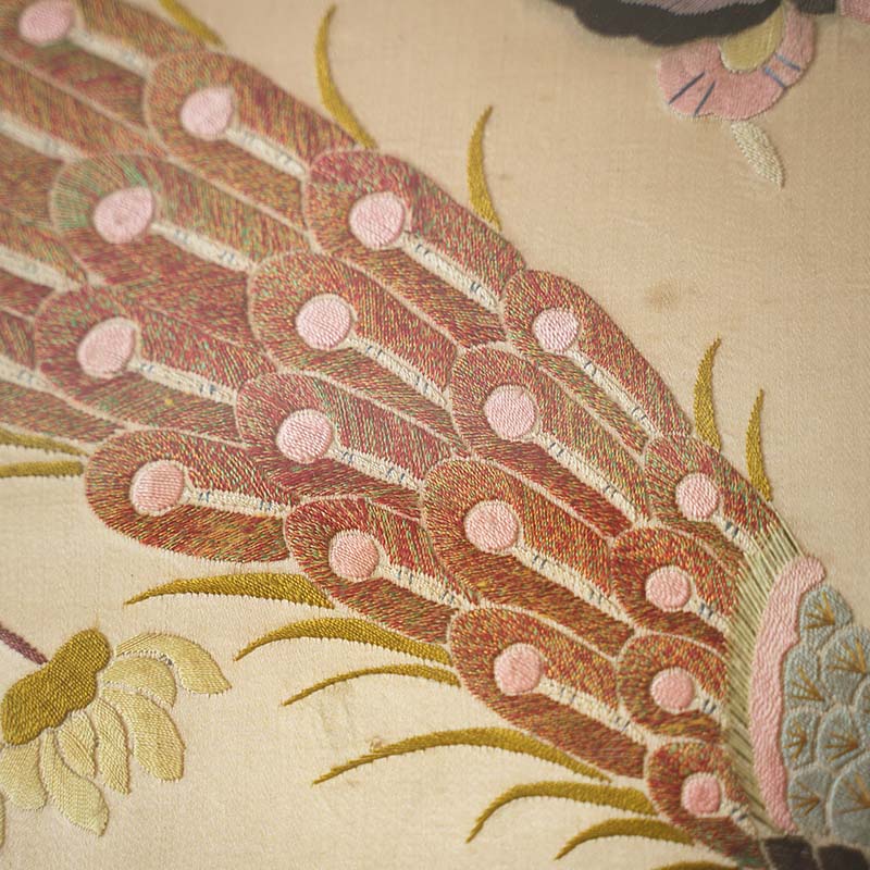 20世纪初中国出品「富贵孔翠」传统东方花鸟主题粤绣挂屏