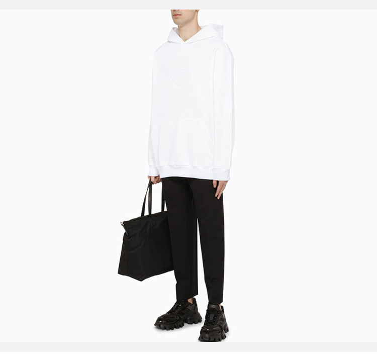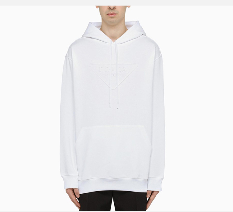 PRADA 普拉达 男士棉质标志性织物三角徽标连帽卫衣 白色 UJL185 1ZX4 F0009